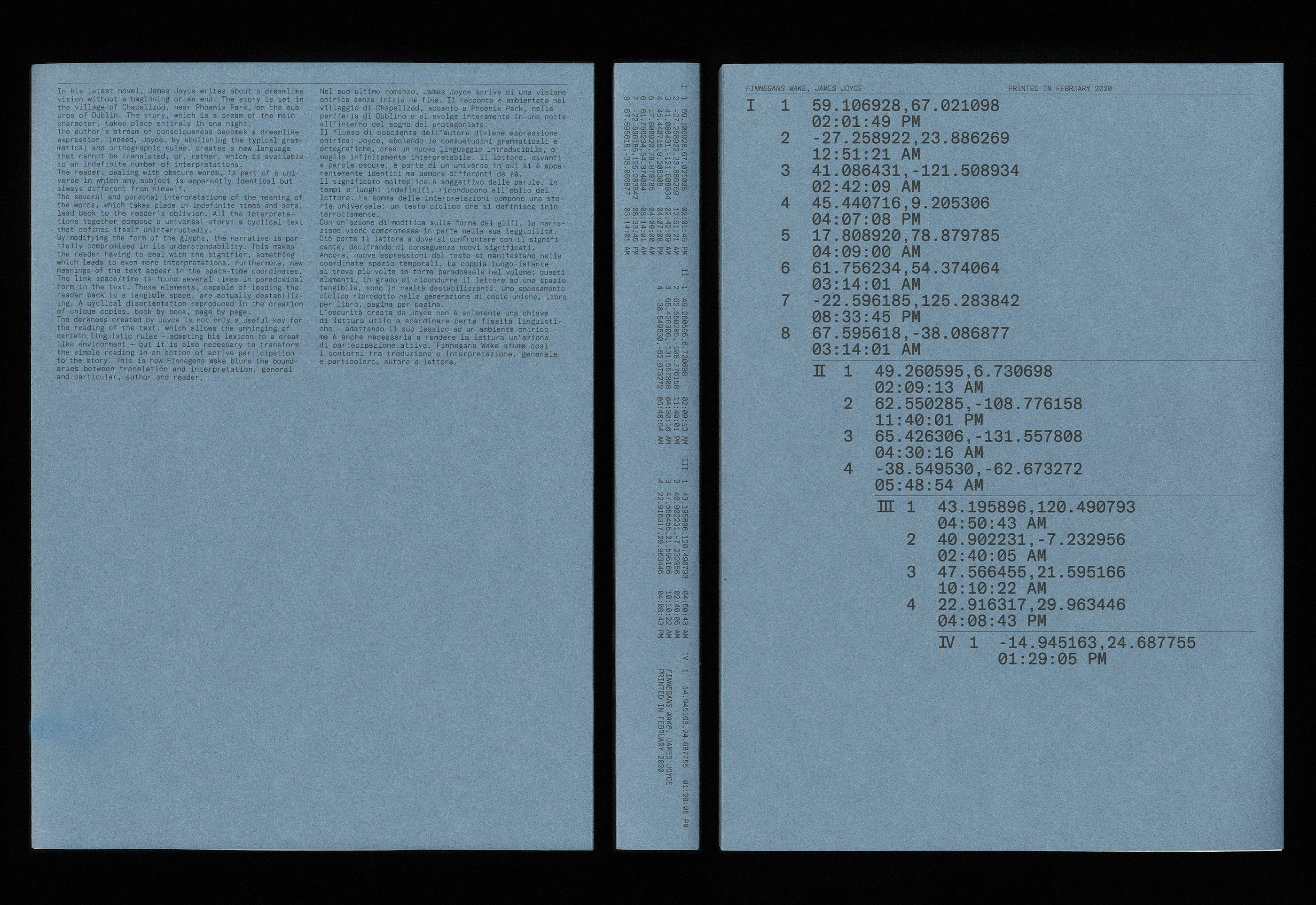 Furthermore, new meanings of the text appear in the space-time coordinates. The link space/time is found several times in paradoxical form in the text. These elements, capable of leading the reader back to a tangible space, are actually destabilizing. A cyclical disorientation reproduced in the creation of unique copies, book by book, page by page.