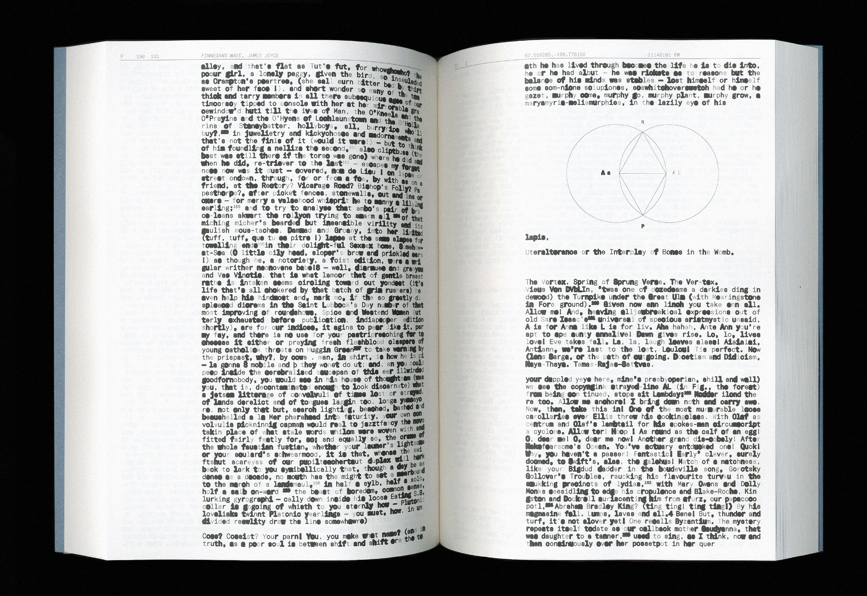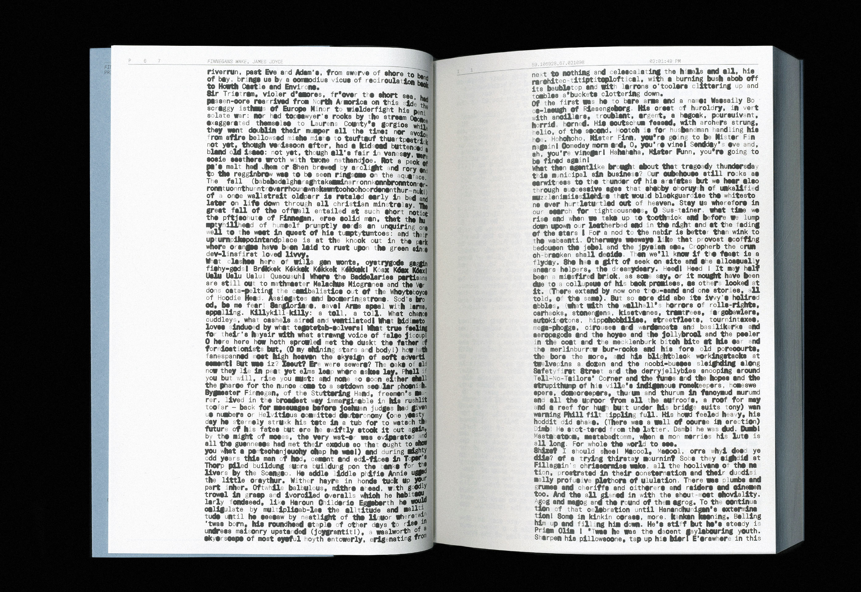 By manipulating the letter shapes, set in GT America Mono, the narrative is partially compromised in its understandability. This makes the reader having to deal with the signifier, something which leads to even more interpretations.