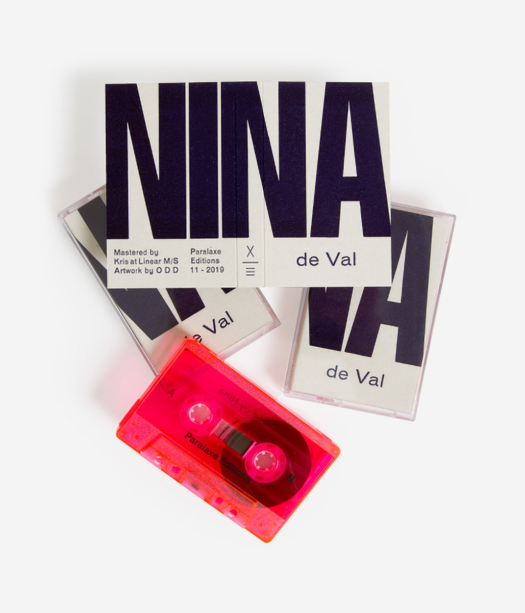 de Val is a mix of ambient music by Nina, released by Paralaxe Editions on cassette tape. The covers are letterpress-printed from hand-set type. They were designed (without any computers) by Oficina de disseny and printed at L’Automàtica.