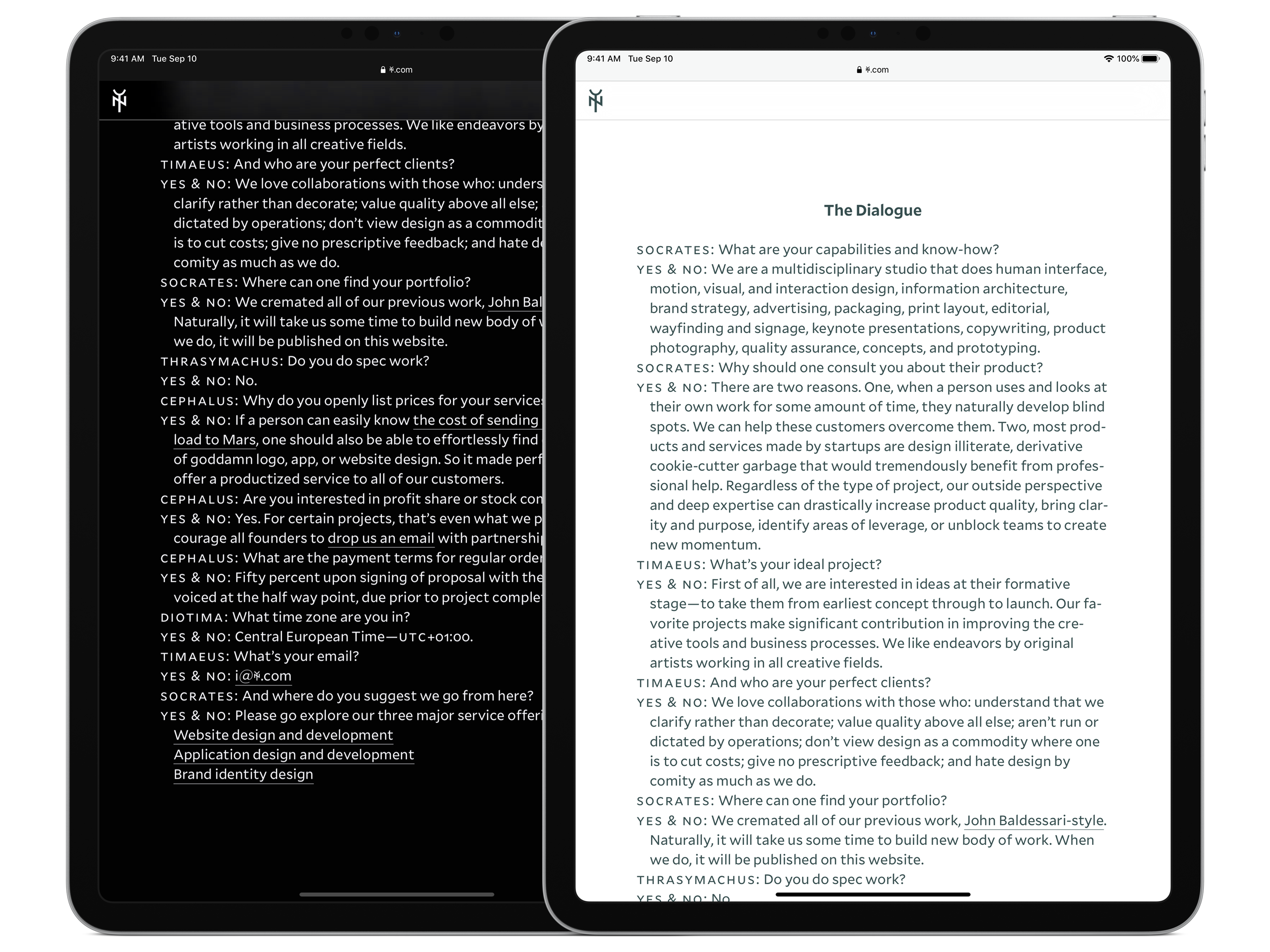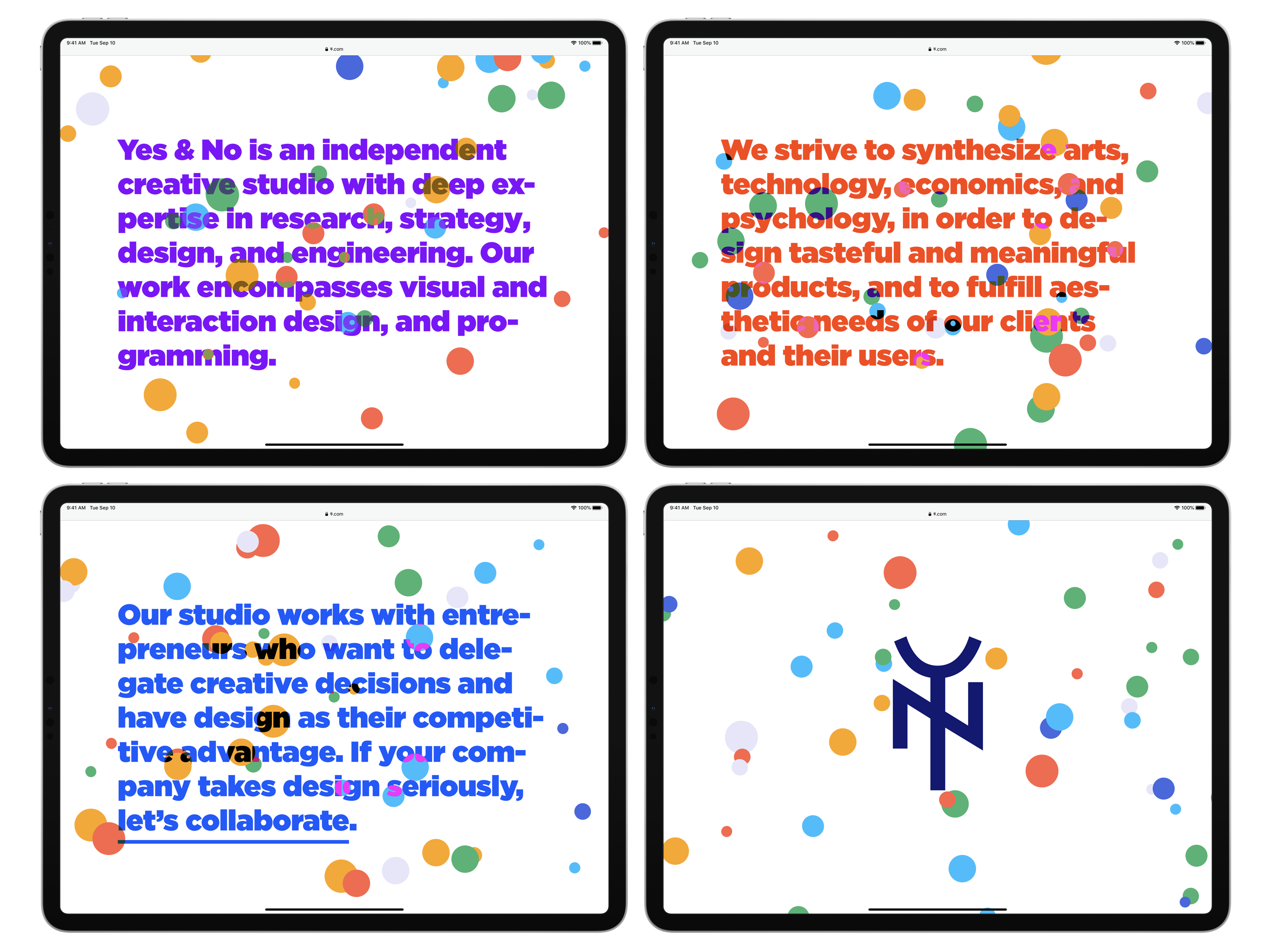 Yes & No is an independent creative studio with deep expertise in research, strategy, design, and engineering. The team works exclusively with startups that want to use design as a competitive advantage.