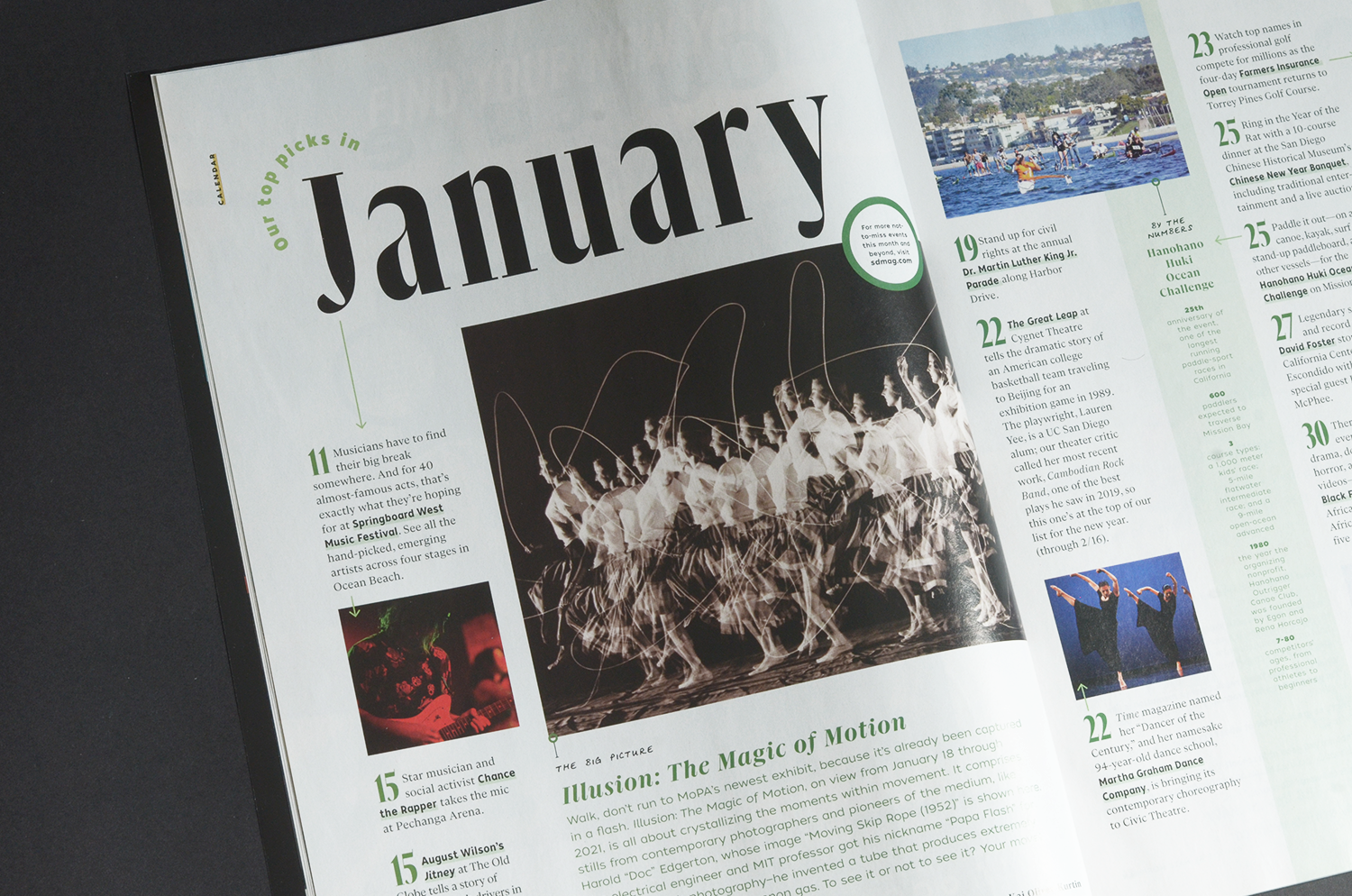 San Diego Magazine implemented of a new their design in January 2020, with new content organization, and new typography. In an interview for Folio, editor Meanly Glenny shares some insights about the redesign: