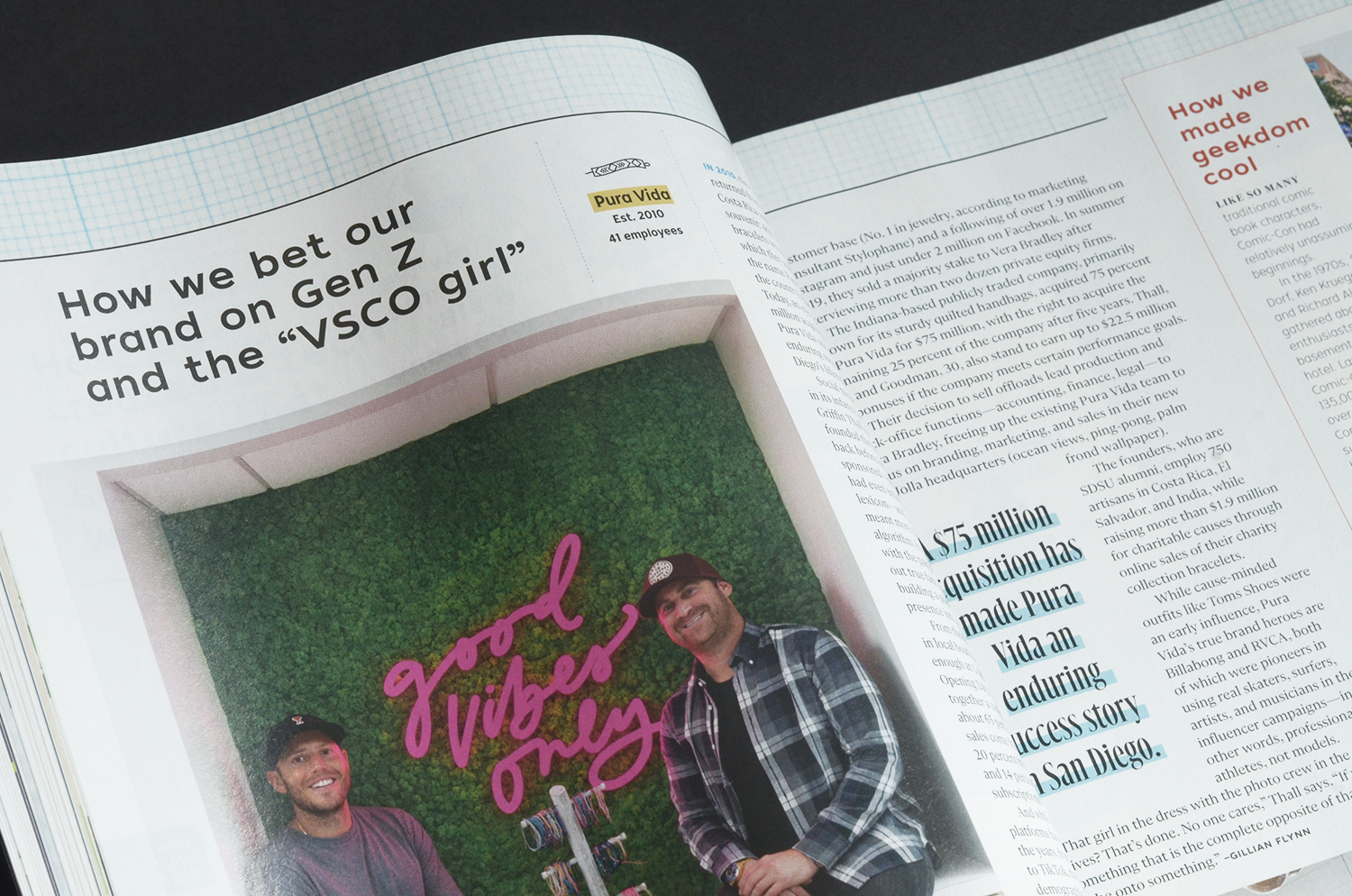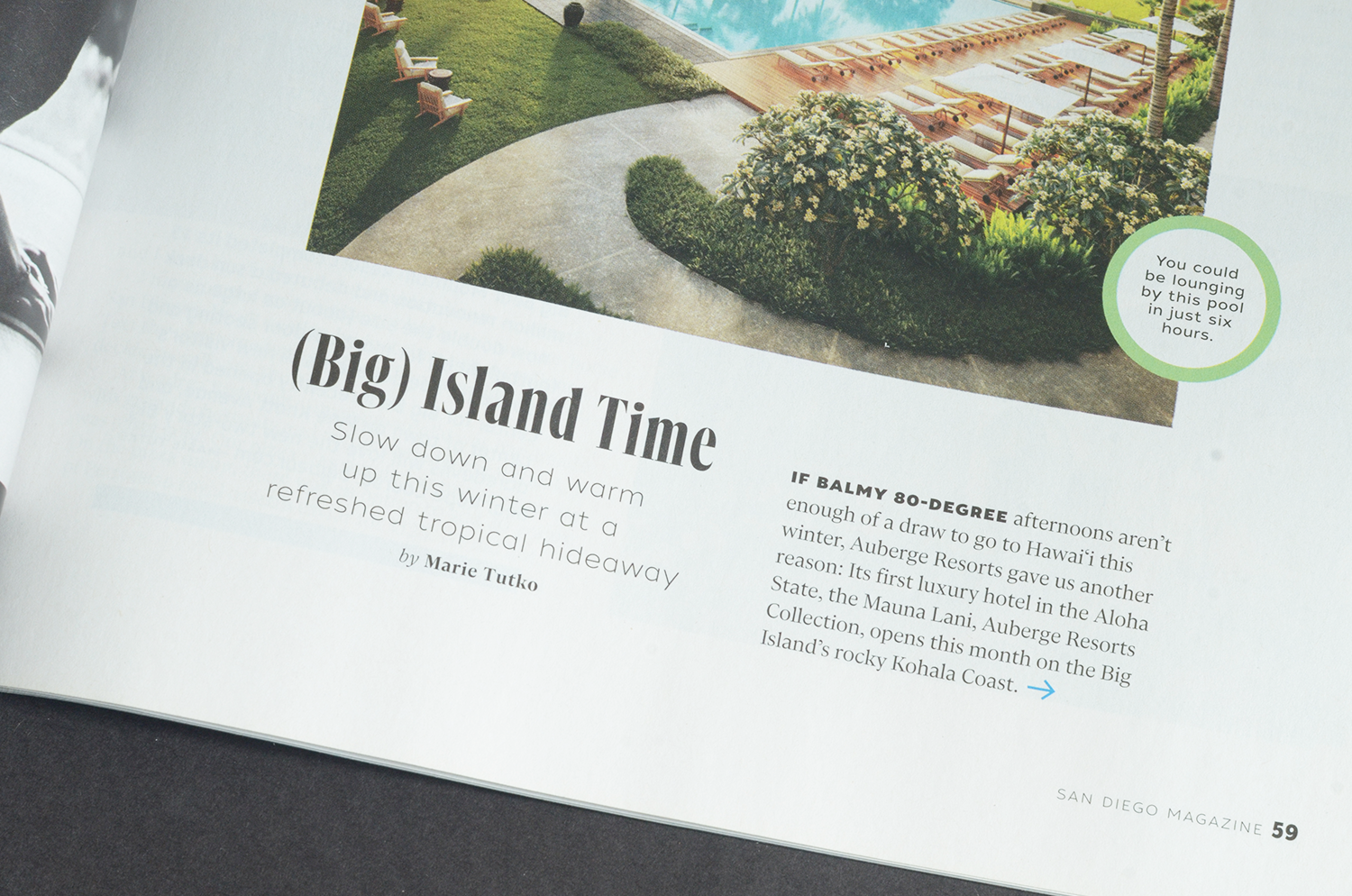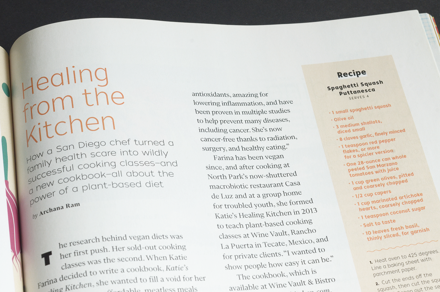 From a design standpoint, Meanley Glenny says she focused on injecting the magazine with a more modern look, with cleaner fonts and a wider color palette. Clarity was important in terms of presentation, she said, but also in terms of legibility—San Diego Magazine’s readership has a median age of 47.