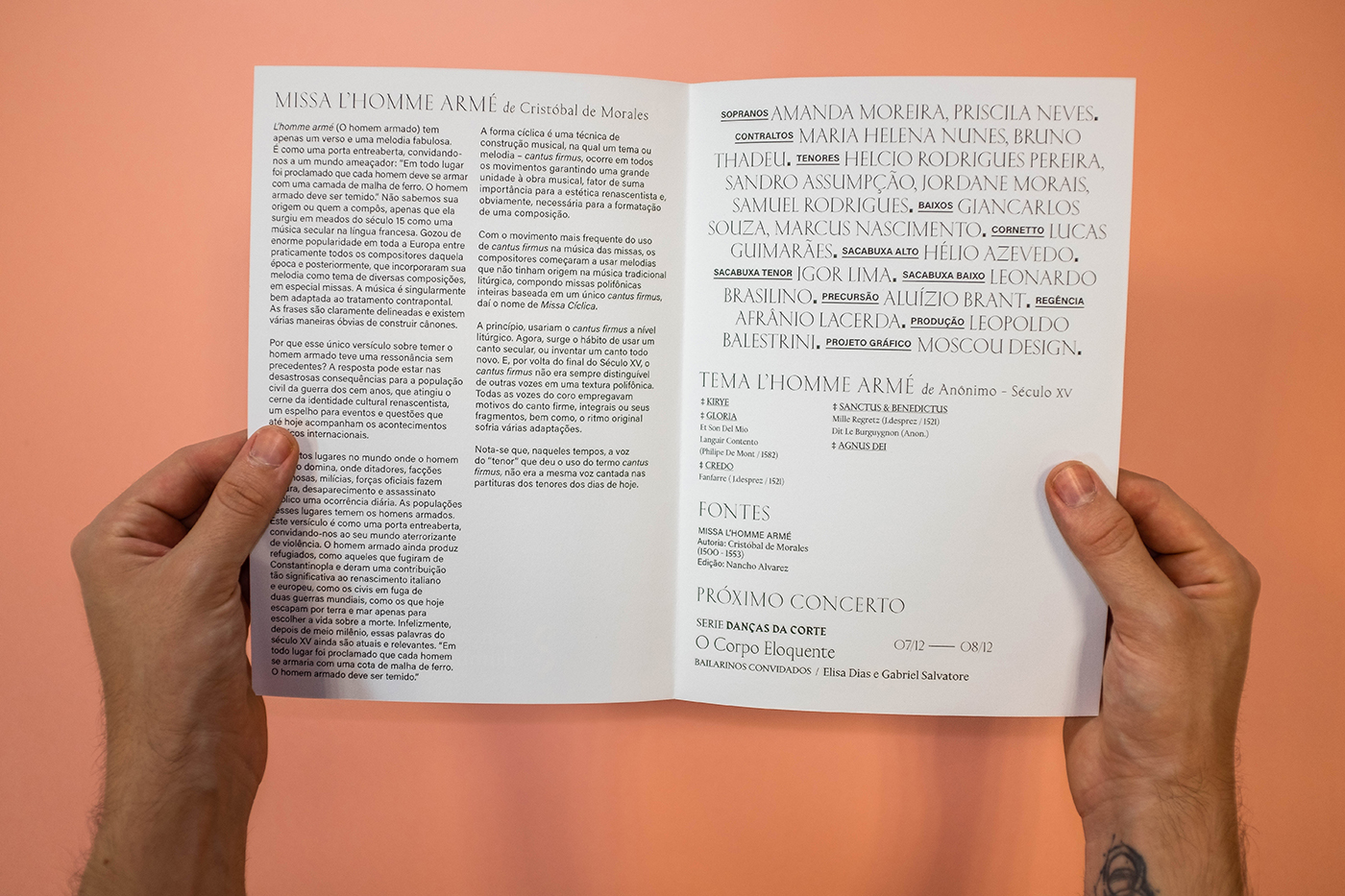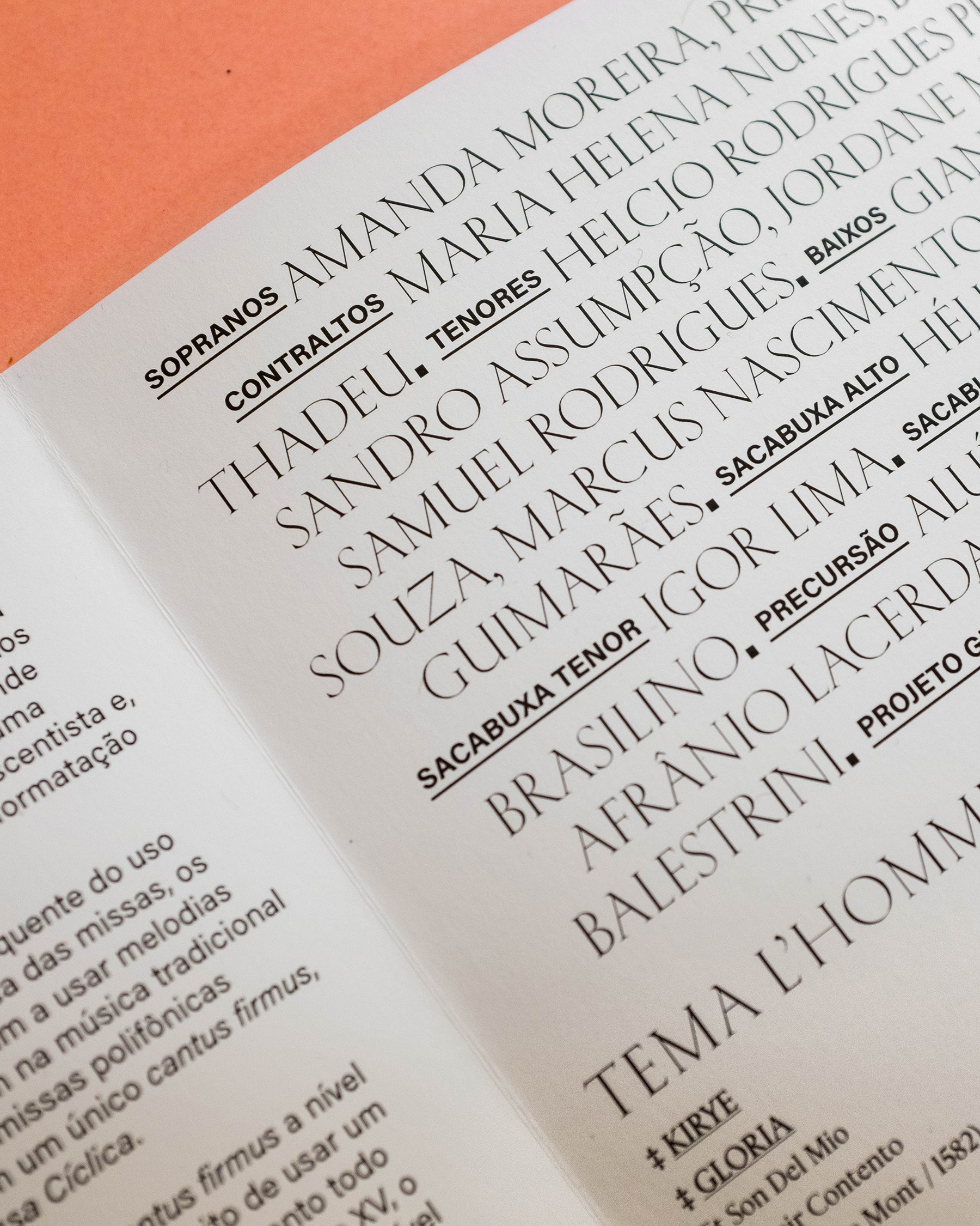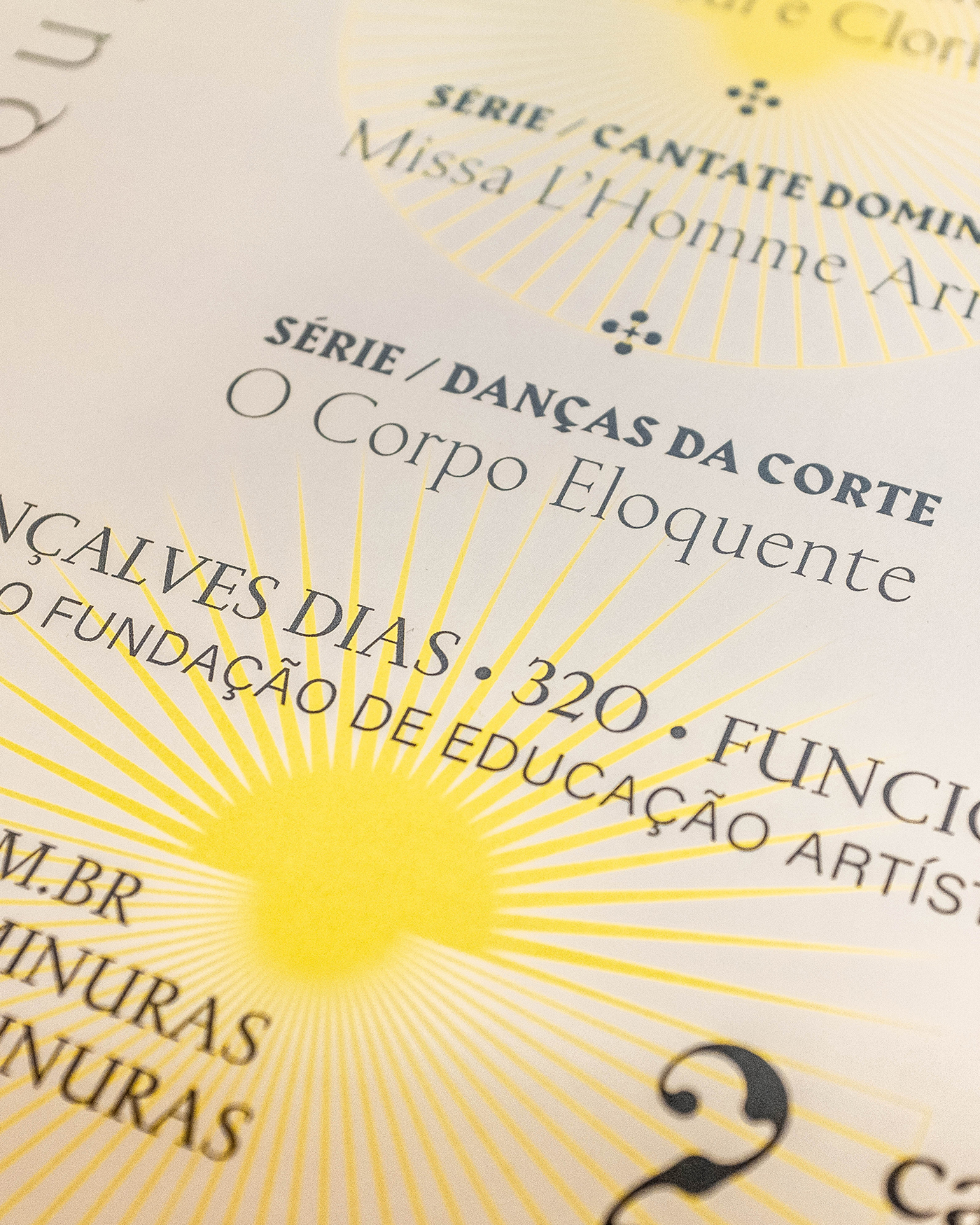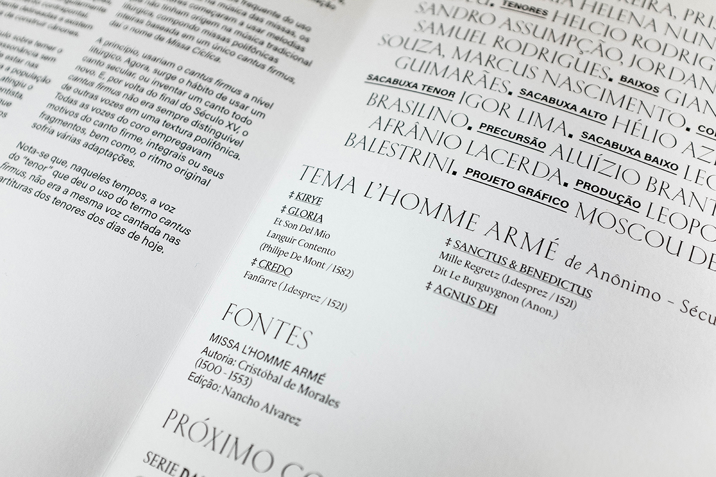 Kessler was chosen for the titles due to its inscriptional inspiration, which retrospect to the renaissance graphic repertory. Harbour was chosen as the first support font for the secondary information, and Acumin as the second support font, used on long texts and some captions.