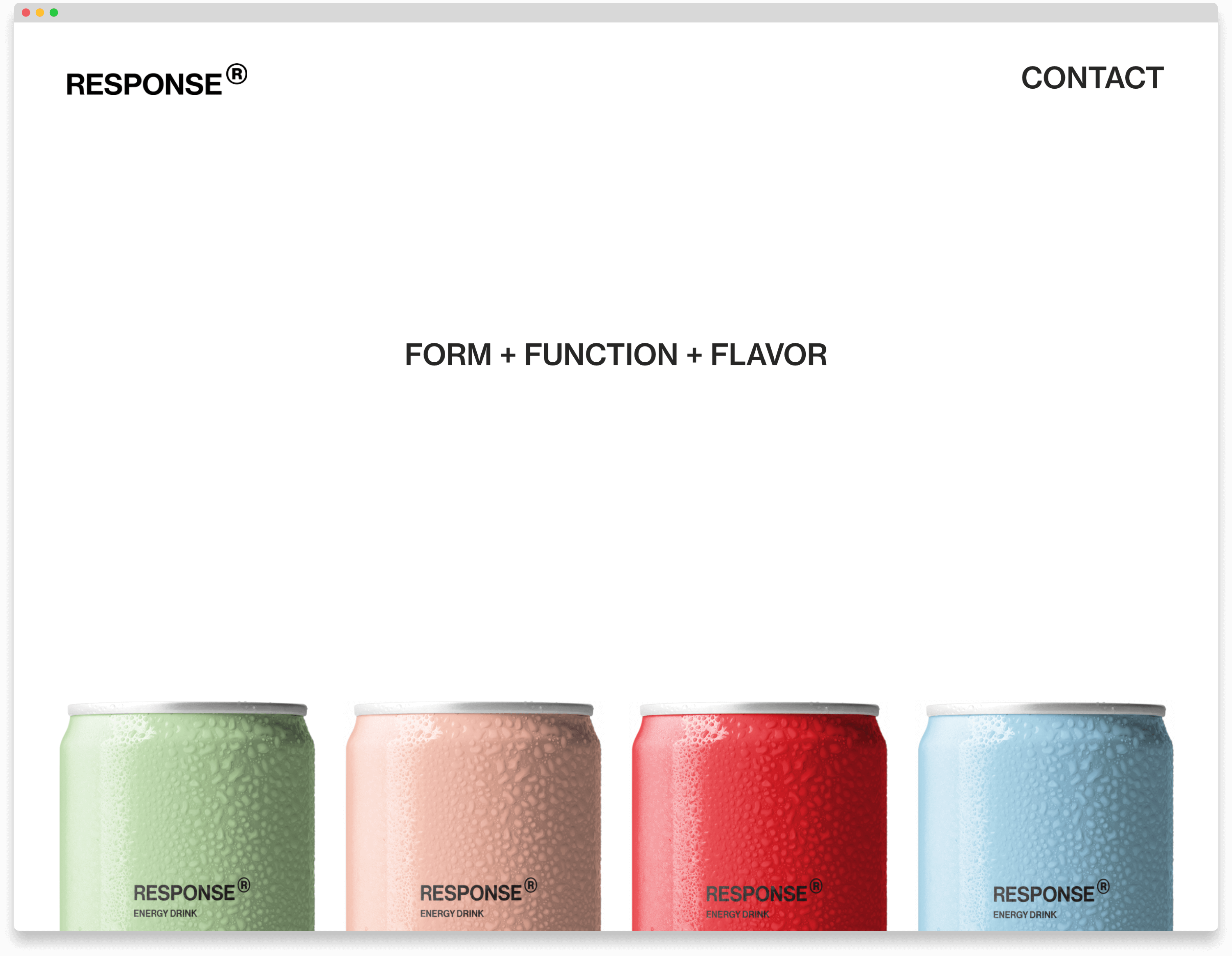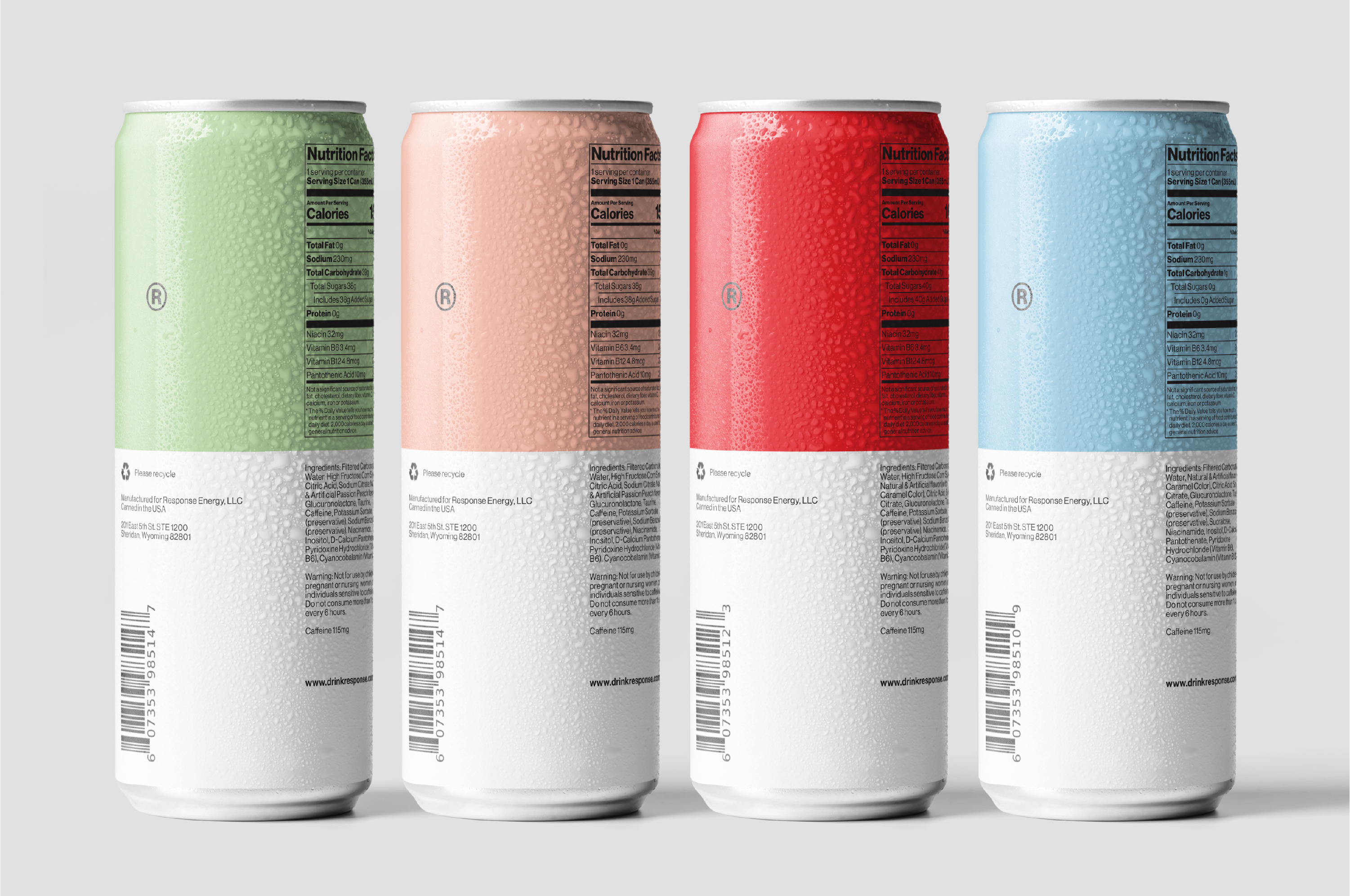 The energy drink brand identity and packaging system are centered around the restrained use of Neue Haas Grotesk and a limited color palette to exemplify the brand’s commitment to form and function. With regards to flavor, Response® speaks for itself.