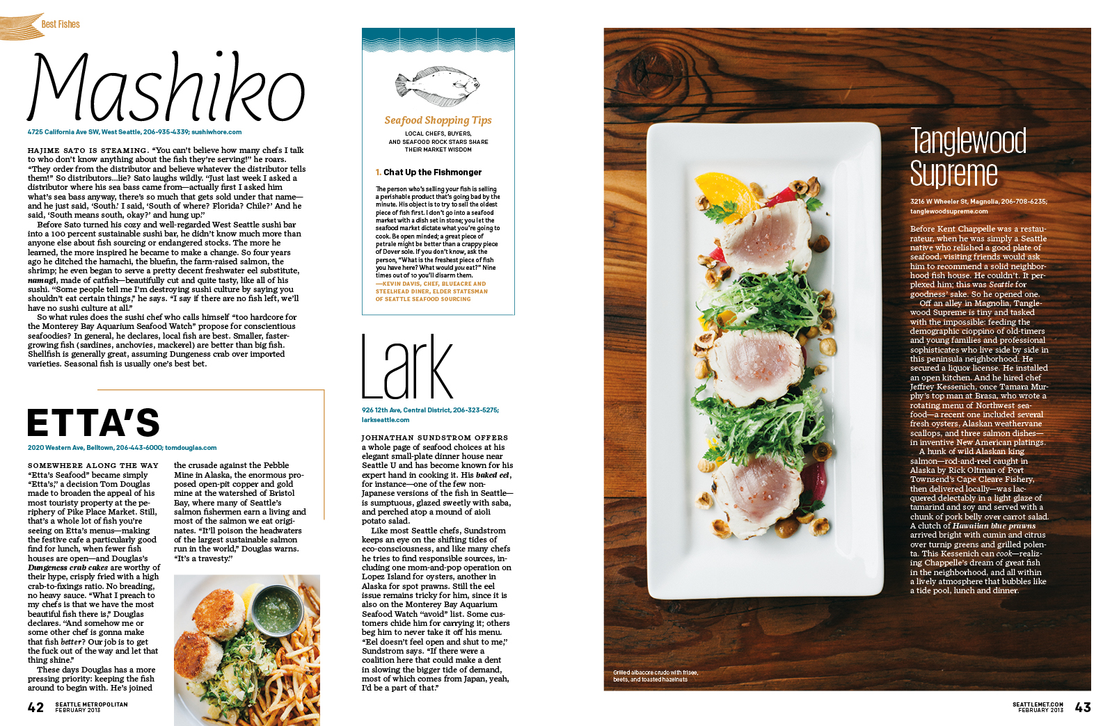 Seattle Met, February 2013: “Best Fishes!” Contributed by Stephen Coles on Jan 25th, 2013. Artwork published in 2013. Source: www.flickr.com License: All Rights Reserved. I am so pleased that someone found a place — and an appropriate one at that — for one of my favorite pattern fonts: Atlantik. The rest of this feature is classic André Mora, typographic eclecticism at its finest. Source: www.flickr.com License: All Rights Reserved. Source: www.flickr.com License: All Rights Reserved. Source: www.flickr.com License: All Rights Reserved. Typefaces More about Giorgio SansGet Giorgio SansMore about CapucineGet CapucineMore about AtlantikMore about ColfaxGet ColfaxMore about ZócaloGet Zócalo Formats Magazines/Periodicals (1862) Topics Food/Beverage (3114) Local (1629) Designers/Agencies André Mora (12) Tagged withSeattle Met (10) Artwork location United States (10074) Seattle (122) In SetsHammer (Florian Mörk) (73)My Fonts (Arnaud Hanon) (54)magazines (I G) (57)Print (Ellen Keith) (5)Friendly (Sarah Brown) (13)Fontstand (Lucas Bevilaqua) (133)Pairings (Lucas Bevilaqua) (578)Serif (Lucas Bevilaqua) (241)Distinctive Sans (Lucas Bevilaqua) (167) Post a comment Name Email – will not be published Website Your response Submit Comment More Giorgio Sans in use Rencontres Cinématographiques de Dijon 20172017La DirectionContributed by 205TF Staff Pick Printing in Relation to Graphic Art by George French, Pavel Kedich web edition2017Pavel KedzichContributed by Love Lagerkvist Théâtre des Bouffes du Nord, 2016–172016Violaine & JérémyContributed by VJ-Type Staff Pick Sponsor More in Food/Beverage Maëva’s market2021Simon ThiefesJoshua HaymannHaymann Thiefes StudioContributed by Simon Thiefes The Sandz identity2020Vogau StudioDavi FrieseCarlos MarinContributed by Carlos Marin Pasteles Tere2017Ramdwin GonzálezMampostea'oMoises CruzContributed by Ramdwin Gonzalez Otero Delito2023Mauricio GarzaContributed by Mauricio Garza Staff Pick More in Magazines/Periodicals Prostitution et Société magazine, no. 1642009Paule Palacios-DalensContributed by PampaType Team Spisanie 8c. 2016Magazine 8Contributed by Vassil Kateliev Flair vegan special2020Line BroeckxContributed by Lole Román Harper’s Bazaar 2021 redesign2021Laura GenningerSTUDIO 191Contributed by Swiss Typefaces Staff Pick More Fonts In Use Molitorc. 2022Atelier DyakovaContributed by Altiplano Typefaces Staff Pick Royal West of England Academyc. 2016SpyContributed by Swiss Typefaces Staff Pick The 61st Chicago Int’l Film Festival2025Ogilvy 485Chris SortoHali KleinfeldContributed by Chris Sorto Staff Pick Barrio (Bairro) Berlin2024Carolina GiovagnoliContributed by Huerta Tipográfica Staff Pick