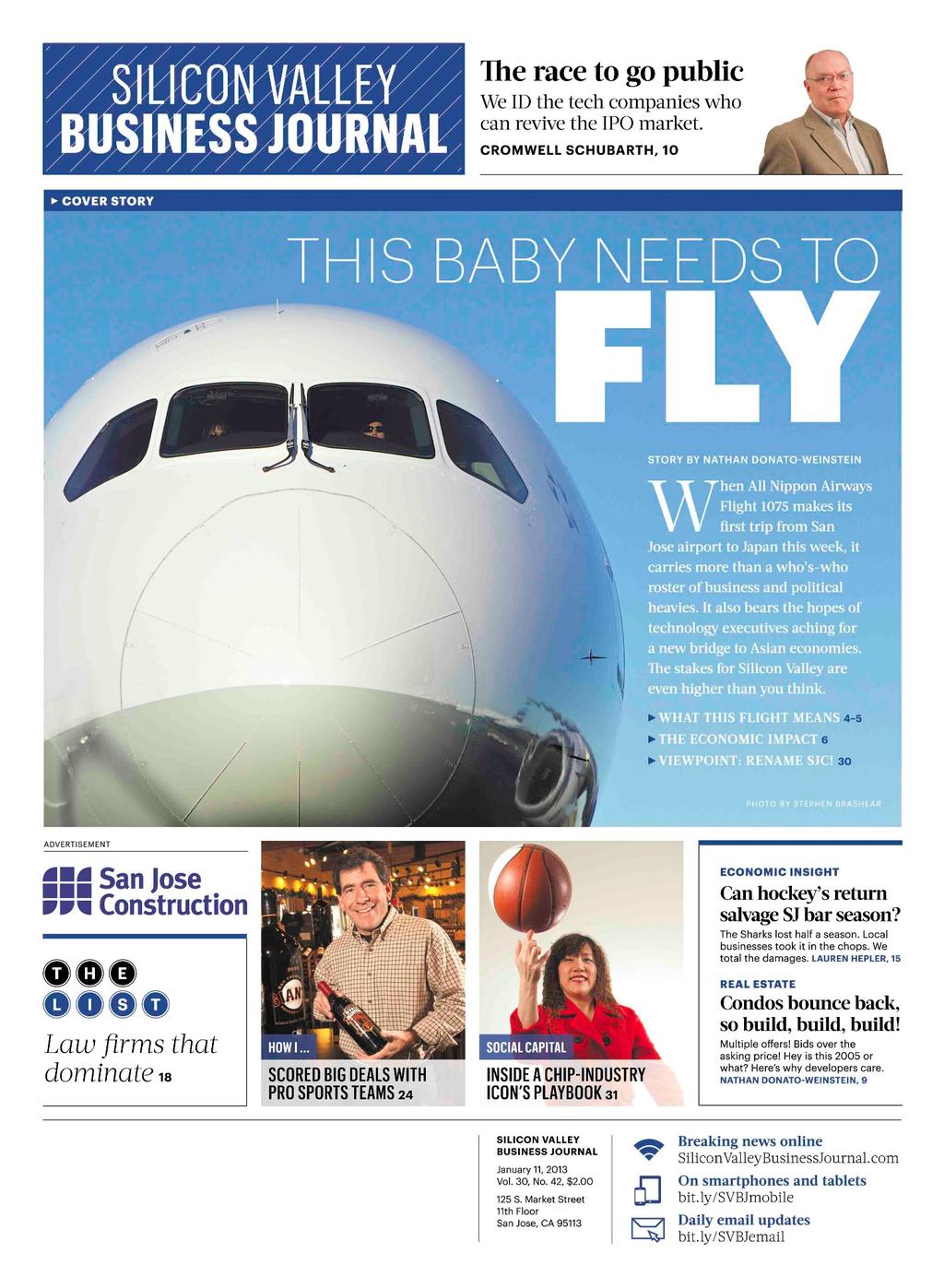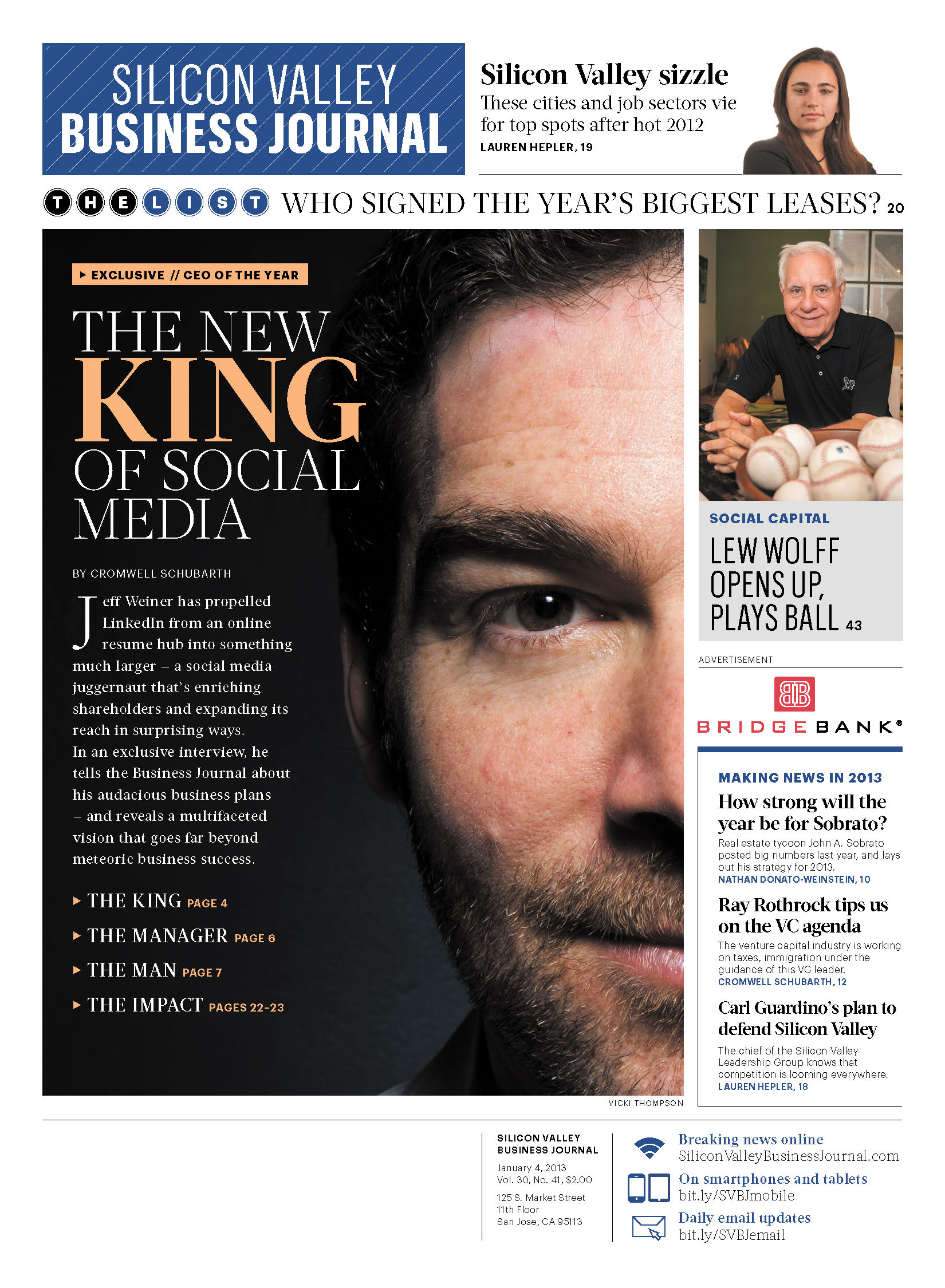 Pages from the relaunched and renamed Silicon Valley Business Journal, one of more than forty local business newspapers from American City Business Journals.