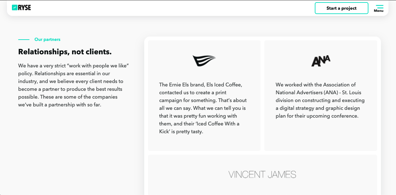 We, RYSE, a branding and digital strategy agency based in St. Louis, Missouri, redesigned our website at the beginning of the year in 2020. We wanted to showcase more of the work we did in the past few months on a website that better showed what we as an agency can do. Our original website had variants of Avenir on it, so this wasn’t a big jump for us to go to Avenir Next.