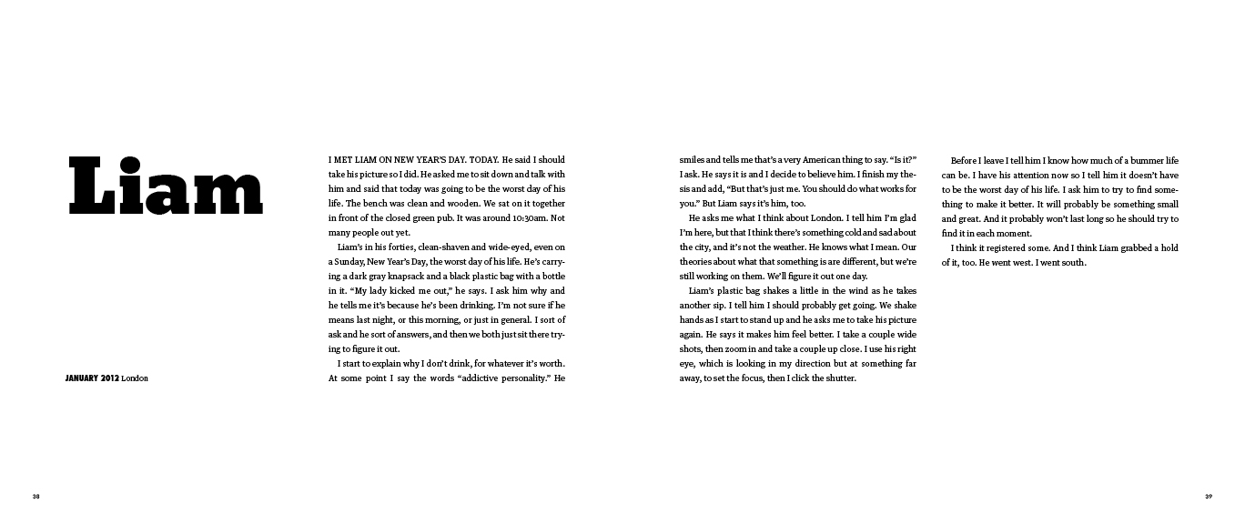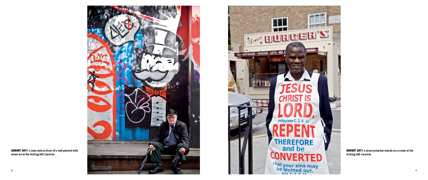 The hardcover book measures 9.5"x8" and contains 120 pages of street photos, personal essays and narrative journalism pieces. The photos and essays offer a unique view of the London Riots, the Olympics, Occupy London, the Queen’s Diamond Jubilee, Pride London, random street encounters, and much more.