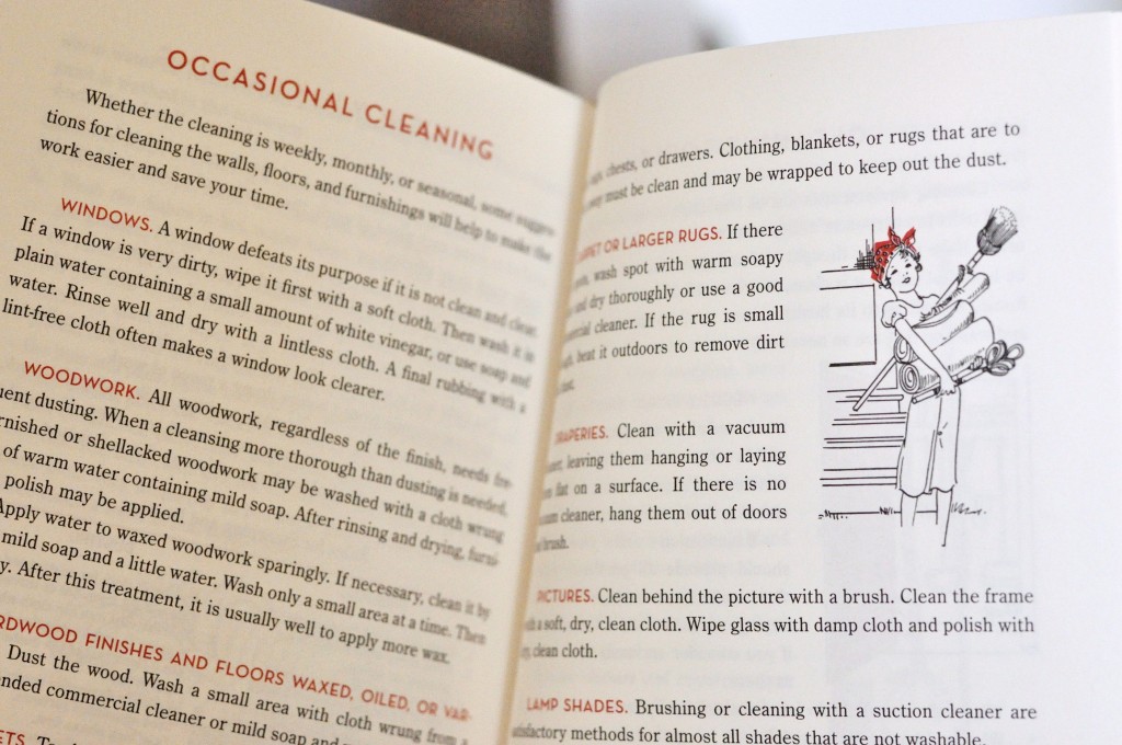 Neutraface and Century Old Style strike the perfect tone for this book of domestic tips that hearken back to the “simpler times” of early to mid 20th century America. ITC Century is used for large type, like chapter heads, presumably because it has a lighter touch, but it feels newer and thus slightly out of place.