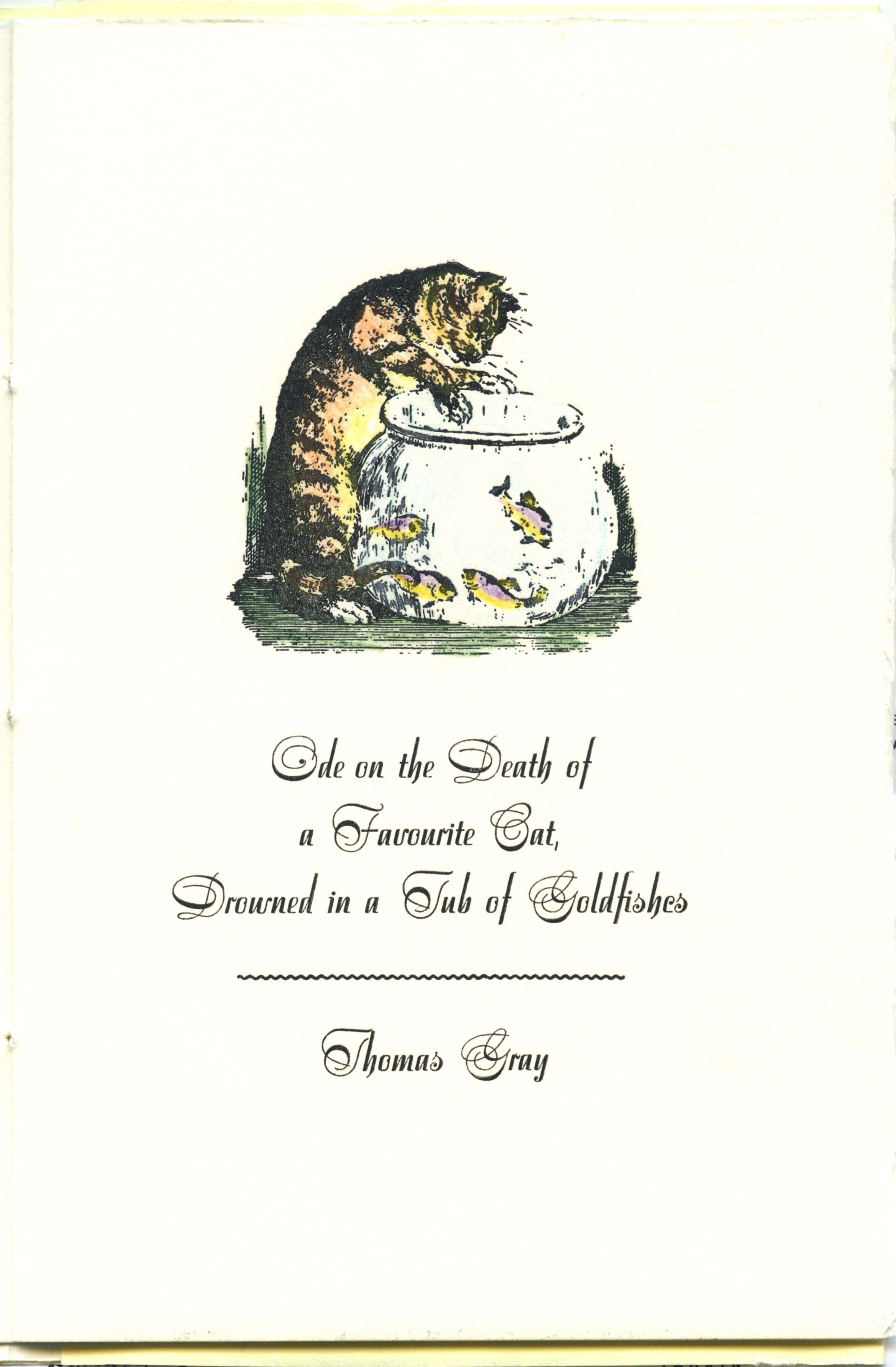 Cover of a booklet with a poem by Thomas Gray from 1748, printed at the Philoxenia Press in Berkeley, California in 2020. Norman McKnight used 24 point Stradivarius (AKA Symphonie) by Imre Reiner and hand-colored the illustration using oil-based pencils.