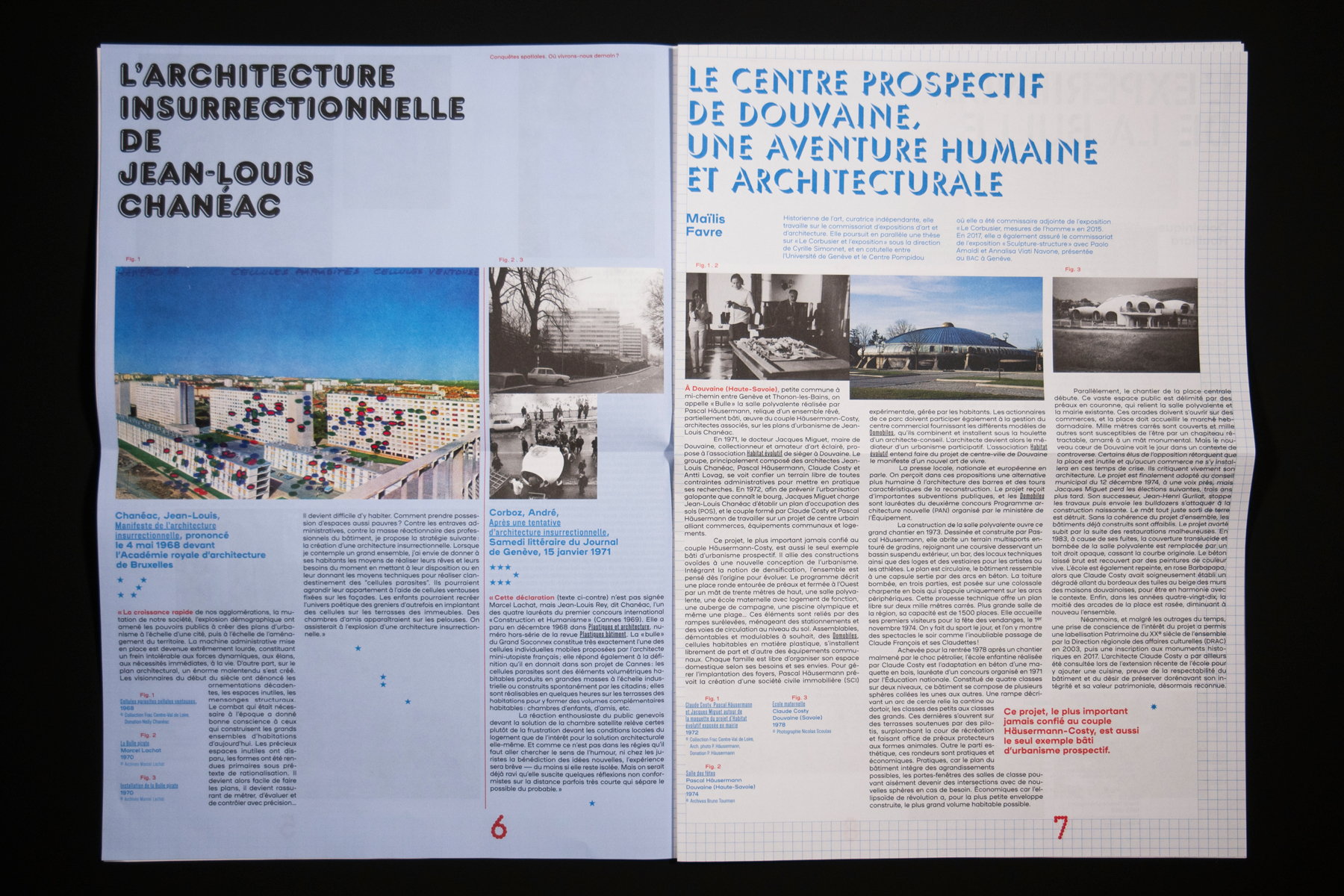The layout put into perspective archival texts, testimonies of actors of the time and contemporary authors, to document the thoughts of Michel Ragon, art and architecture critic, attentive witness of the emergence of new ways of thinking and representing architecture at the turn of the sixties. The observation of these projects qualified as “experimental” and “utopian”, led in particular by Jean-Louis Chanéac, Pascal Häusermann and Claude Costy, invites us to reread these future predecessors and hands us a mirror.