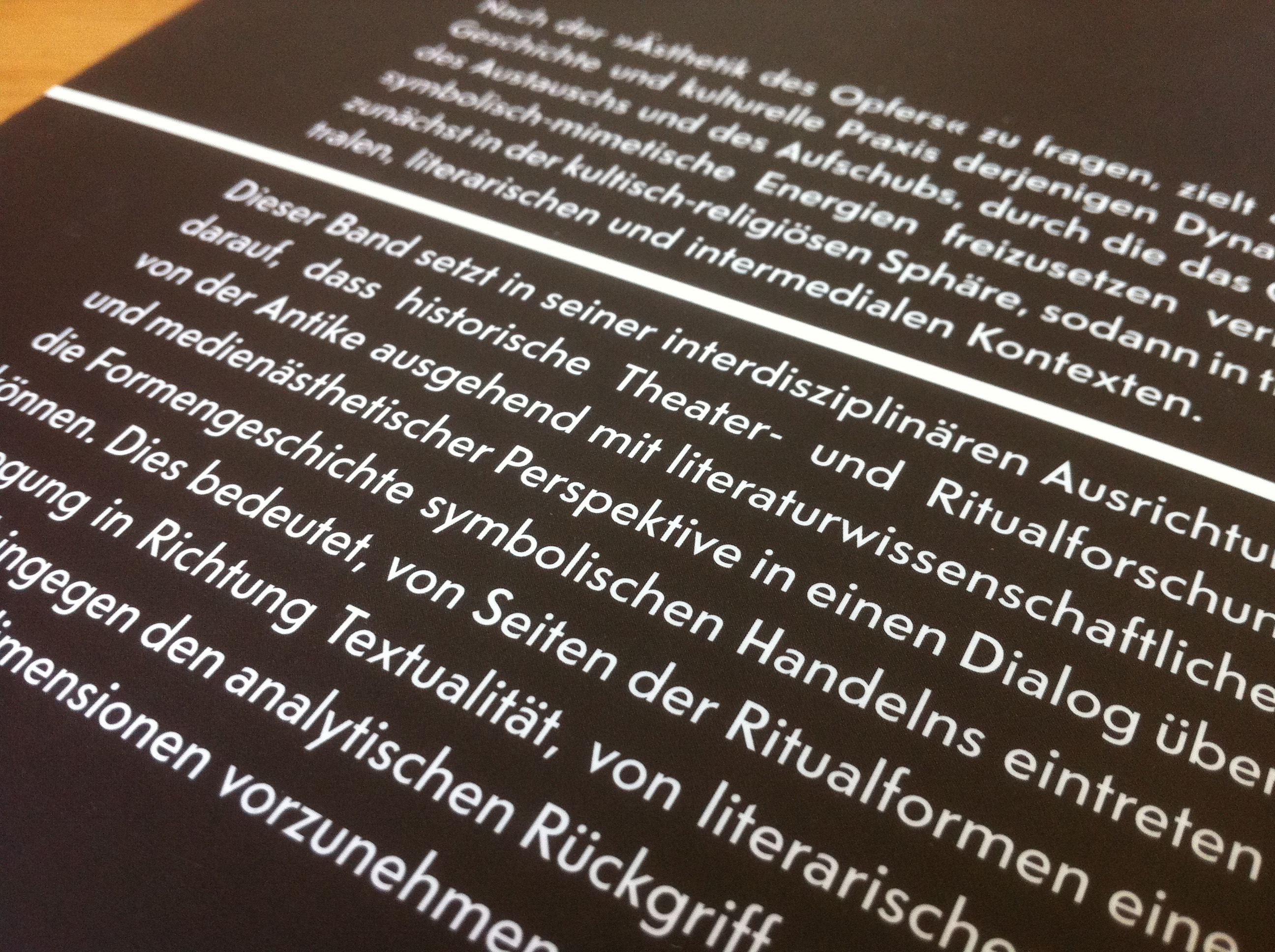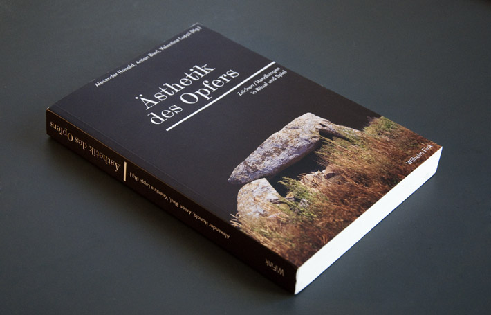 Ästhetik des Opfers is an academic volume investigating rituals and patterns around sacrifice in different cultures and times. I was commissioned to design the book cover after already having designed a poster and flyer for a conference on the same topic a few years ago. Those older materials (flyer seen here) used a pattern of blood splotches that worked well as an eye-catcher, but the editors preferred something a bit calmer, more distinguished, for the book. After looking back over my earlier research and sketches, we decided on this image of a Viking burial site.