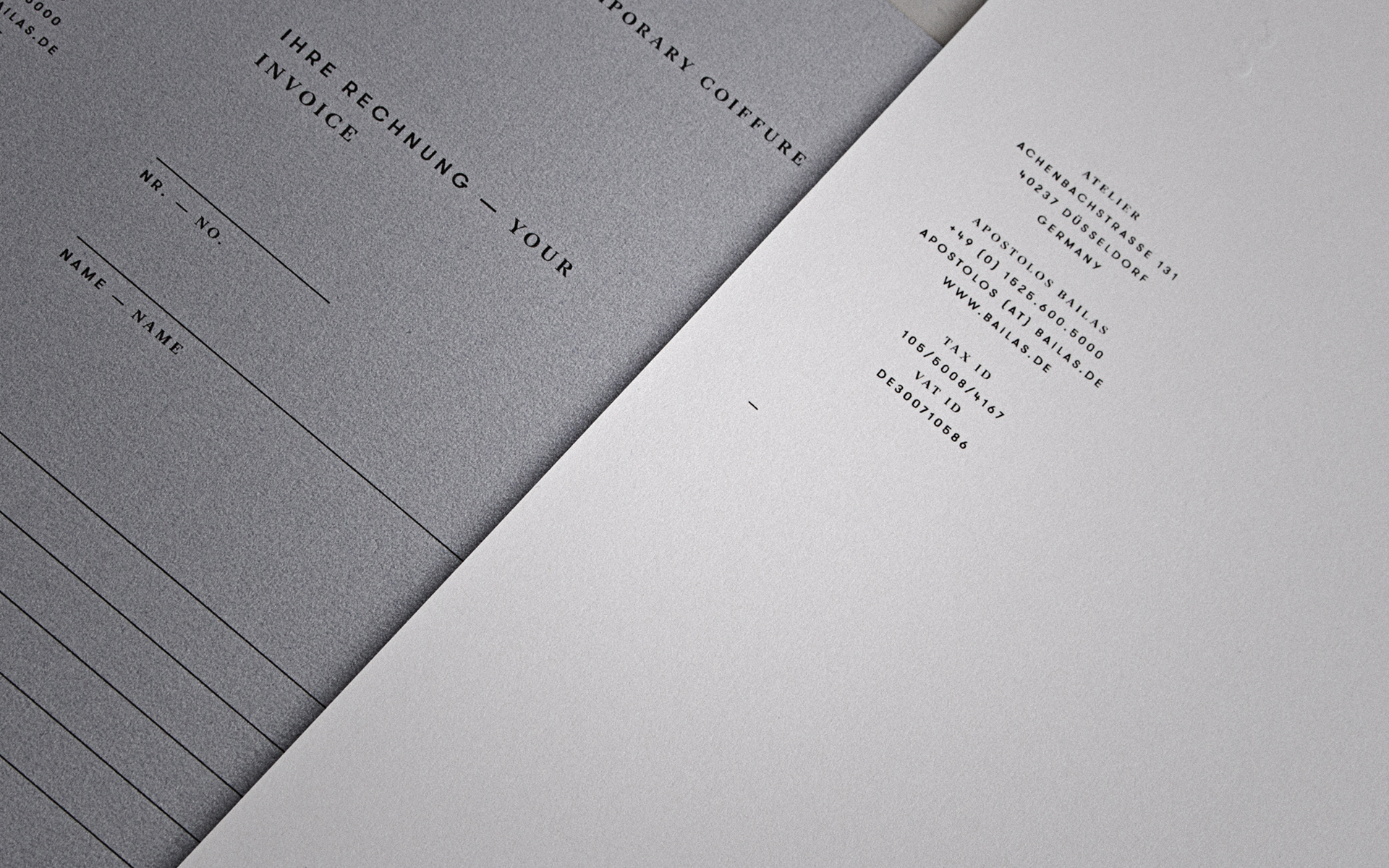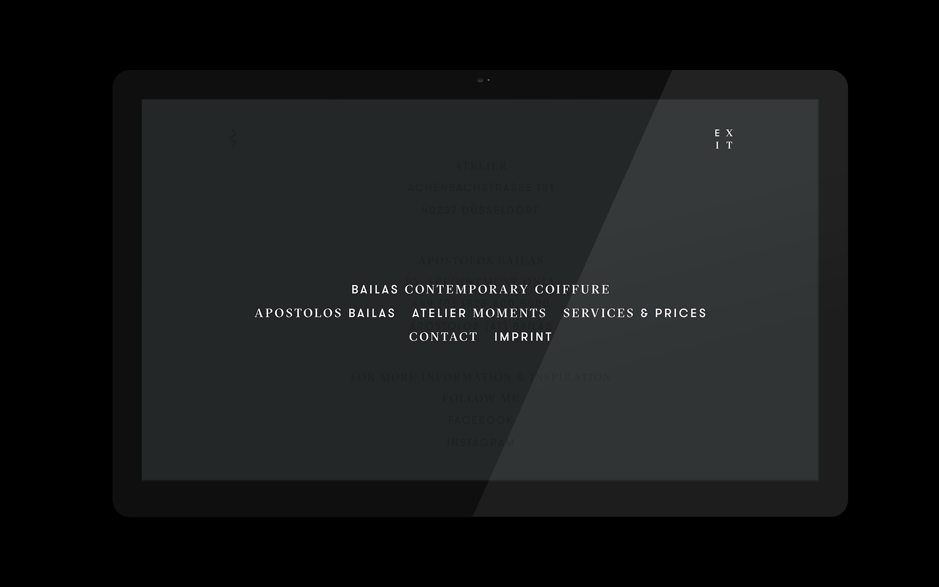 Bailas Contemporary Coiffure was founded by Düsseldorf-based hairdresser Apostolos Bailas and stands for exclusive hairdressing art. The core of the brand concept is the close connection between the master hairdresser and his guest as well as a highly individualised service – with exactly one styling chair. From the welcome to the farewell, Apostolos Bailas is the only contact for its guests.