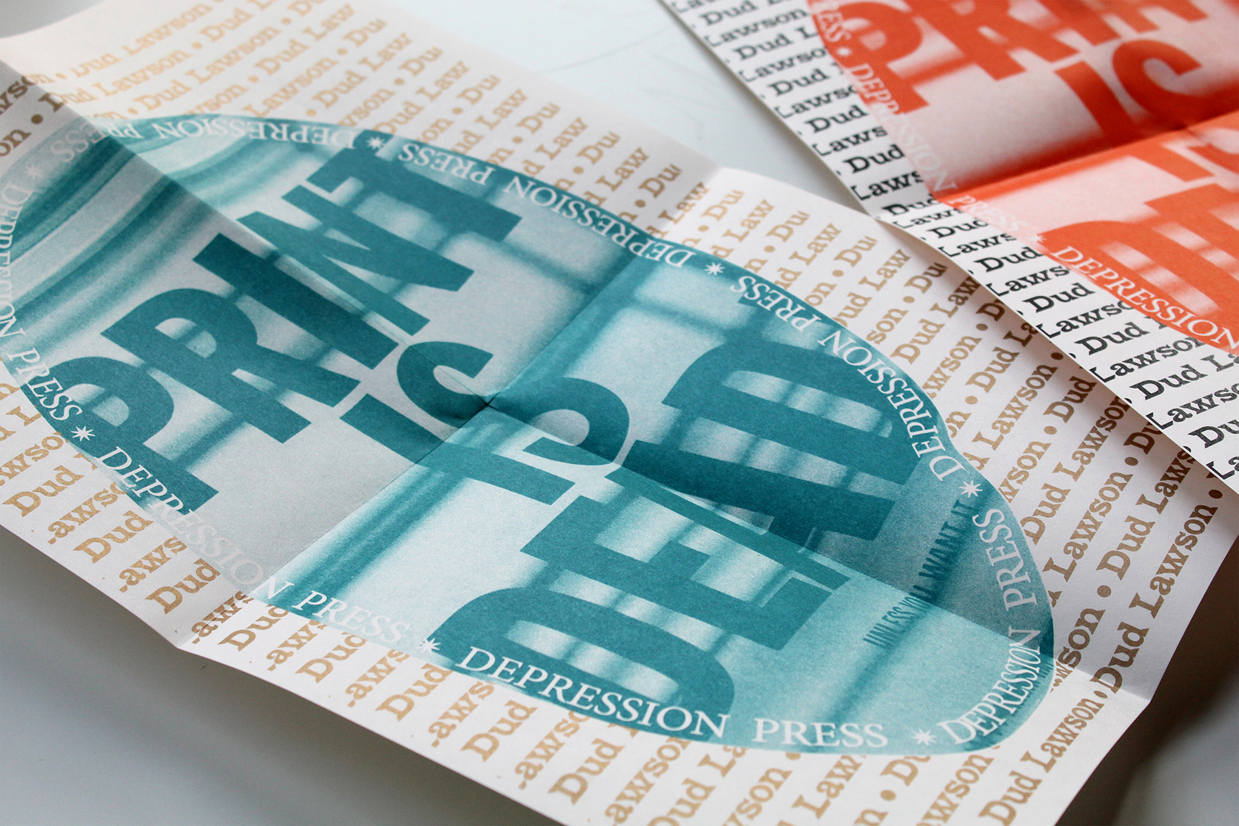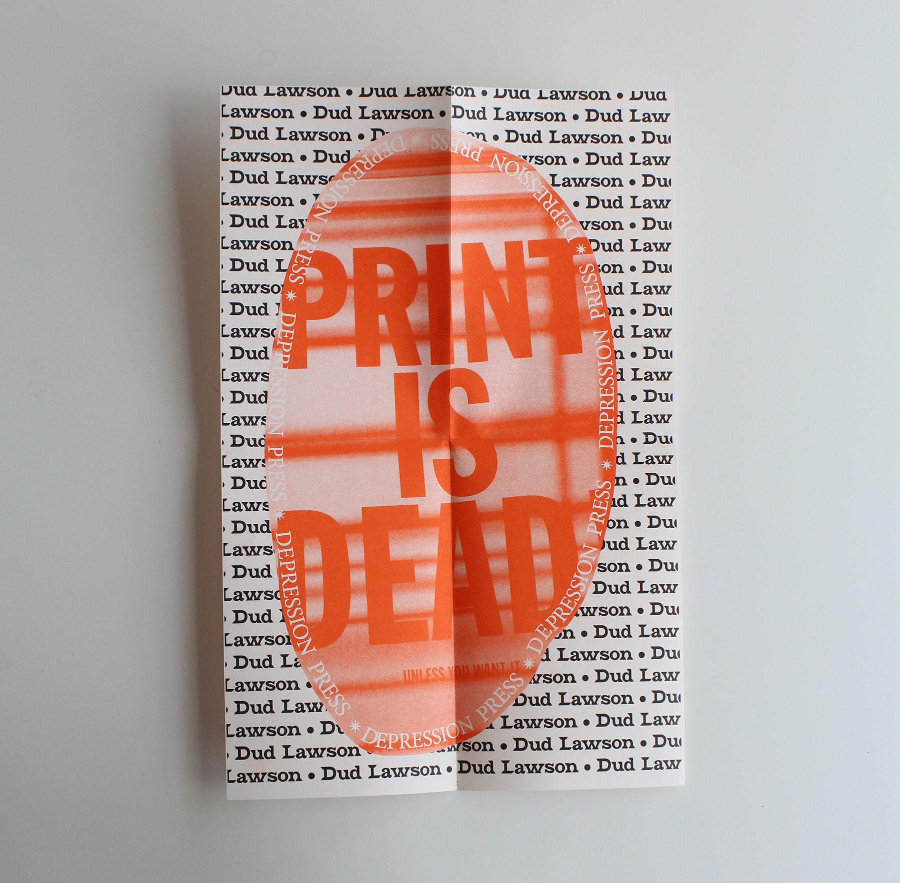 Poster design for print studio Depression Press run by Chicago based artist Dud Lawson, quoting their “Print Is Dead. Unless You Want It” poster (itself a play on Yoko Ono & Jon Lennon’s WAR IS OVER! (If You Want It) poster). Printed on Riso. Made as part of my BFA program at Northeastern Illinois University. Combat is used for the typographic patterned background, while all-caps Minion is set on a circle to spell out “Depression Press”. The quoted original poster used condensed caps from Franklin Gothic.