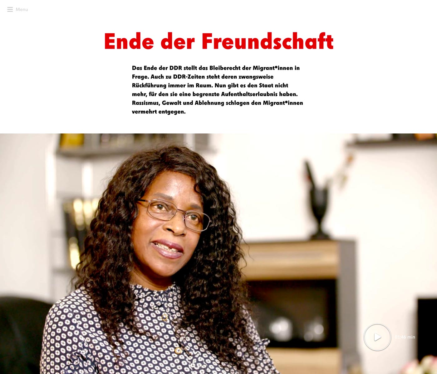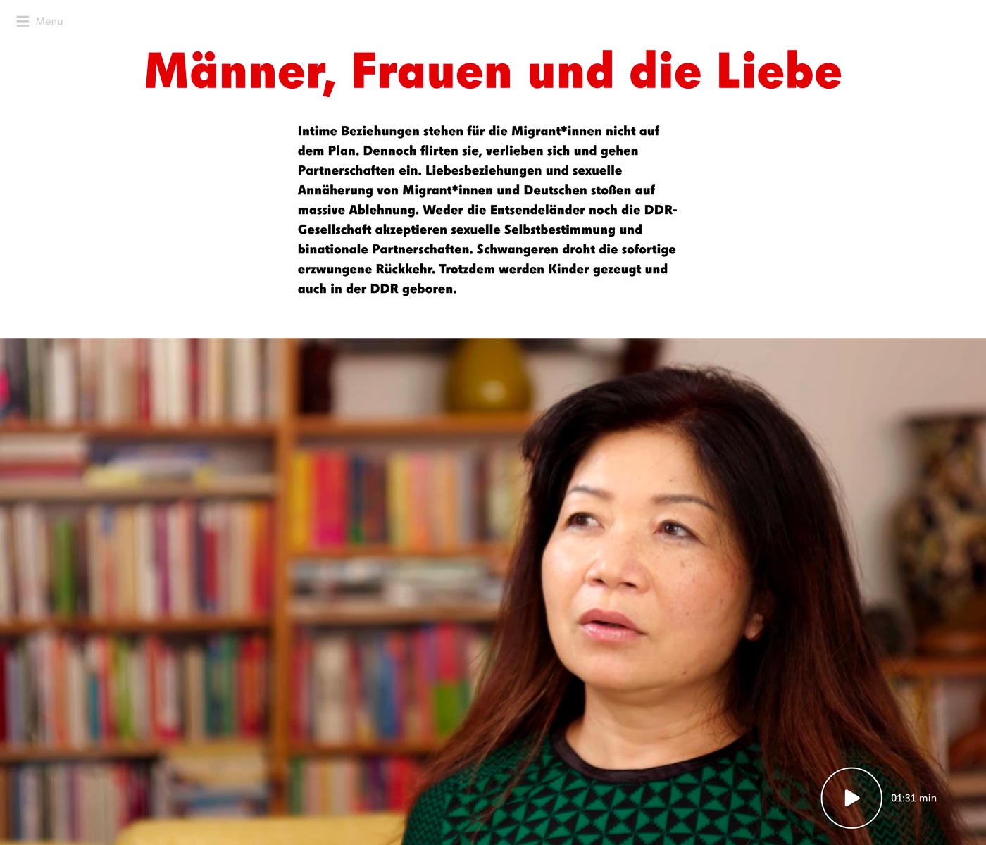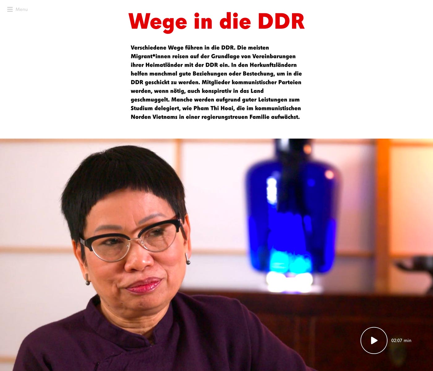 The history of East Germany has been a continuous subject of discussion but the history of its immigrants – contract workers, foreign students and political emigrants – is often ignored. These invisible immigrants came from Vietnam, Mozambique, Angola, Cuba and Chile to the German Democratic Republic with the hope of a good future. Initiated by Berlin Institute of Technology and Out of Focus (Berlin-based documentary film producer), the project Eigensinn im Bruderland (“Stubbornness in the brother country”) provides insight into the personal life of migrants in the GDR with well-written texts and videos. The website won Germany’s prestigious Grimme Online Award in 2020.