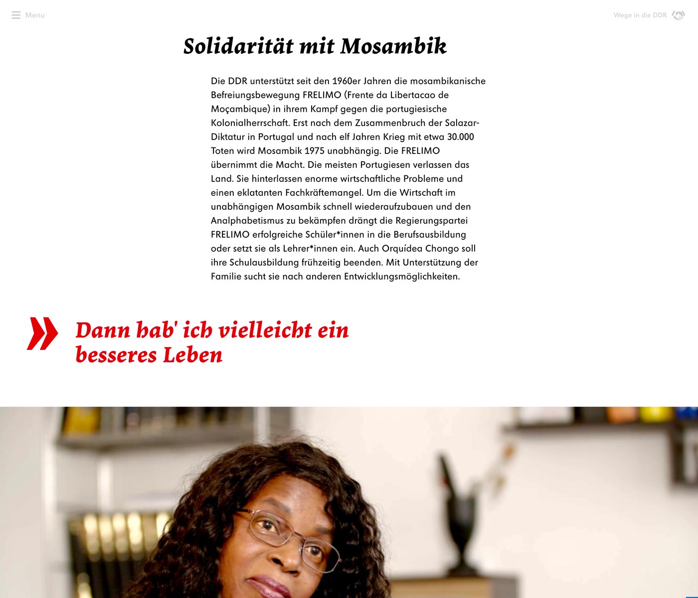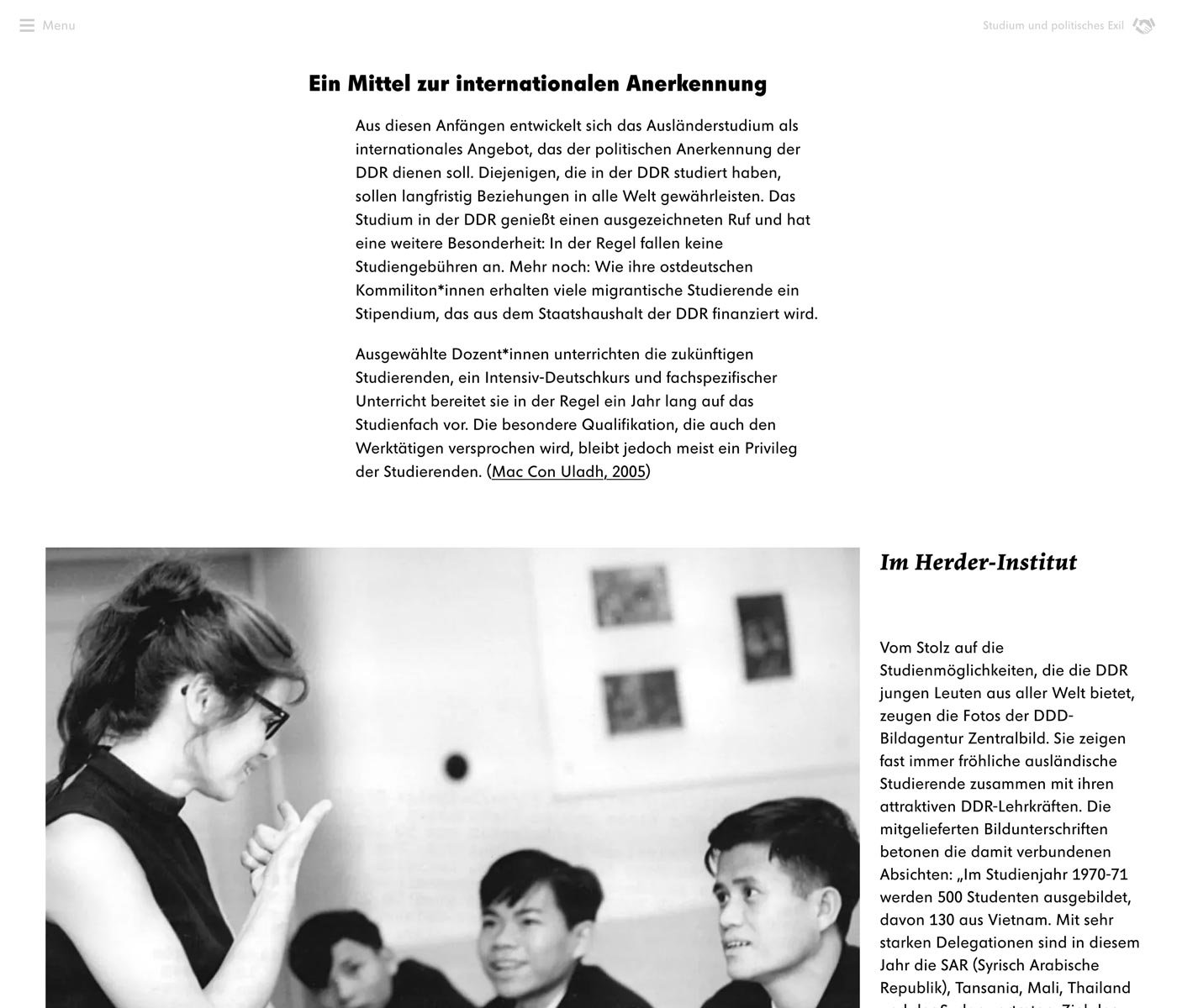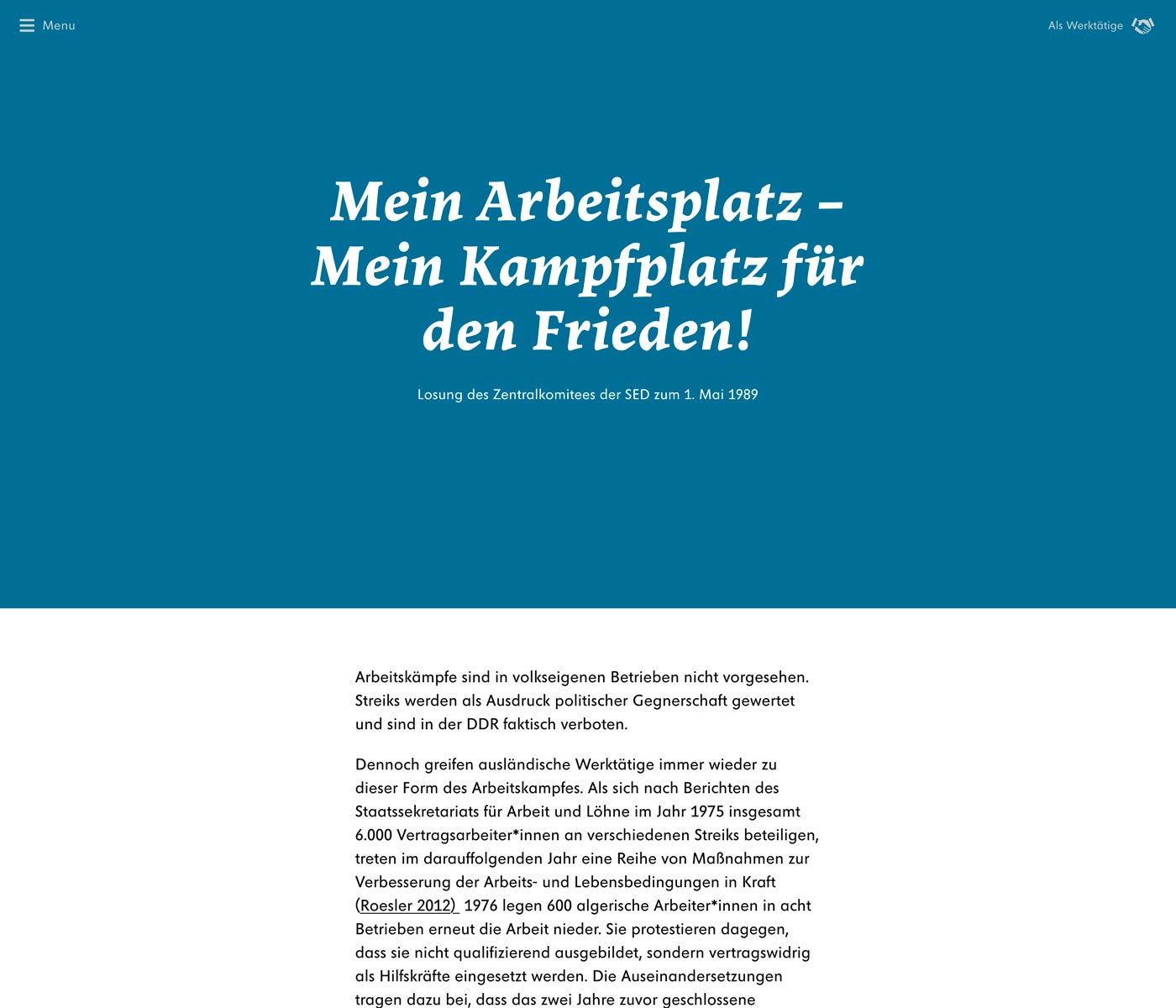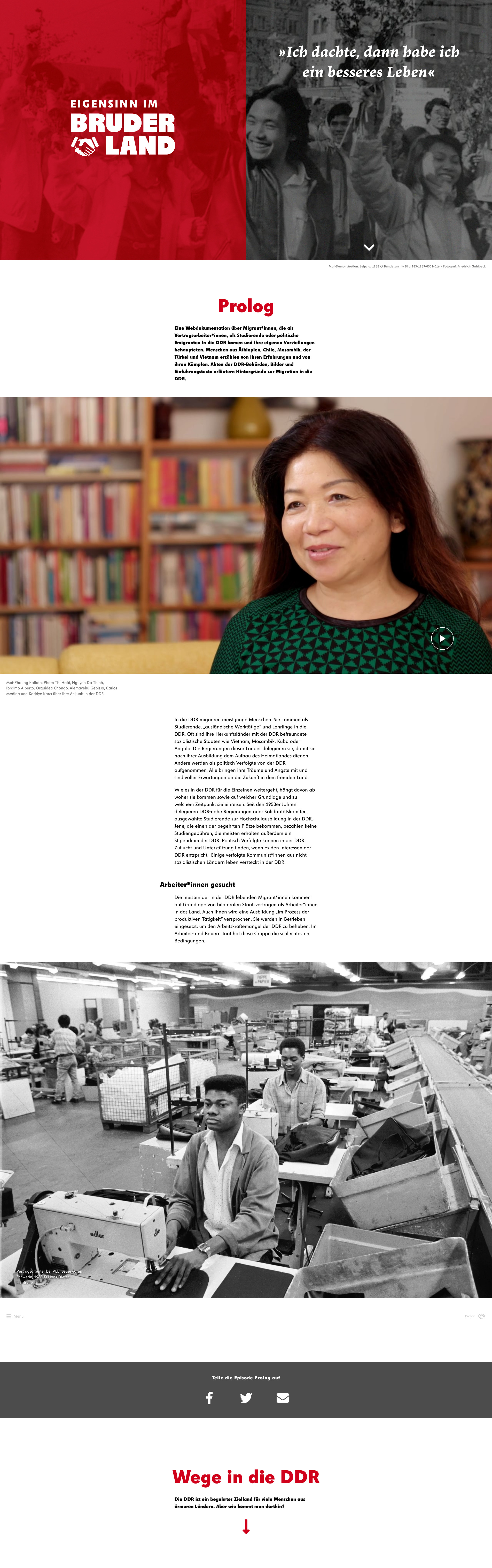 The history of East Germany has been a continuous subject of discussion but the history of its immigrants – contract workers, foreign students and political emigrants – is often ignored. These invisible immigrants came from Vietnam, Mozambique, Angola, Cuba and Chile to the German Democratic Republic with the hope of a good future. Initiated by Berlin Institute of Technology and Out of Focus (Berlin-based documentary film producer), the project Eigensinn im Bruderland (“Stubbornness in the brother country”) provides insight into the personal life of migrants in the GDR with well-written texts and videos. The website won Germany’s prestigious Grimme Online Award in 2020.