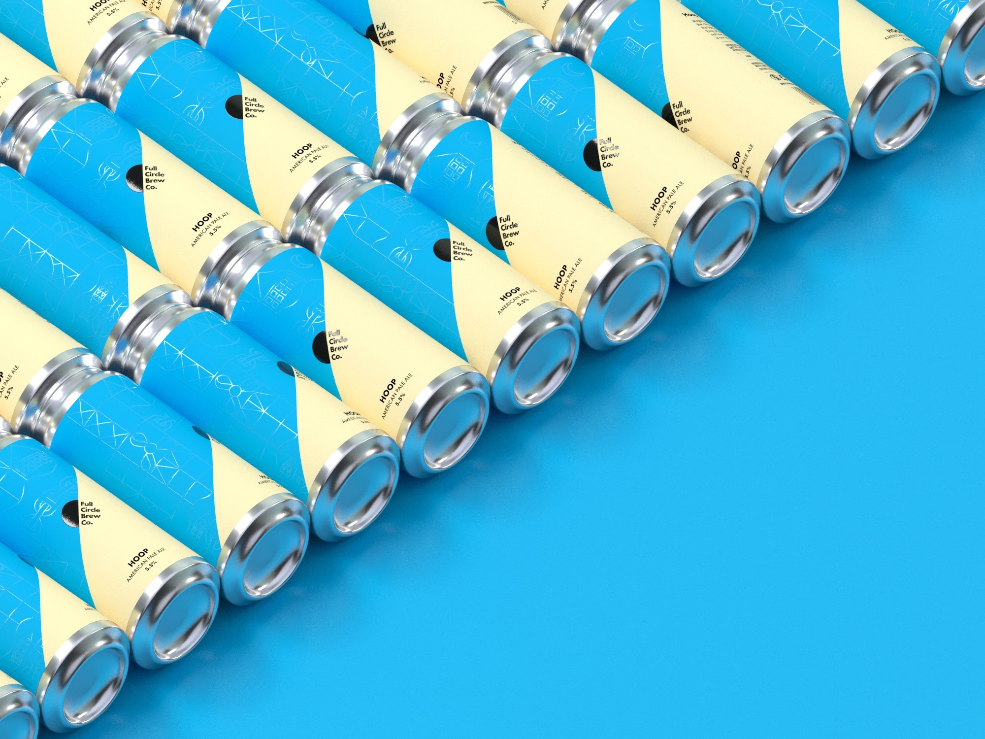 The geometric, circular Futura was a perfect candidate to mirror the sharp simplicity of the circle-centric brand. Trade Gothic Condensed was chosen for details on the packaging as a nod to the brewery’s industrial location.