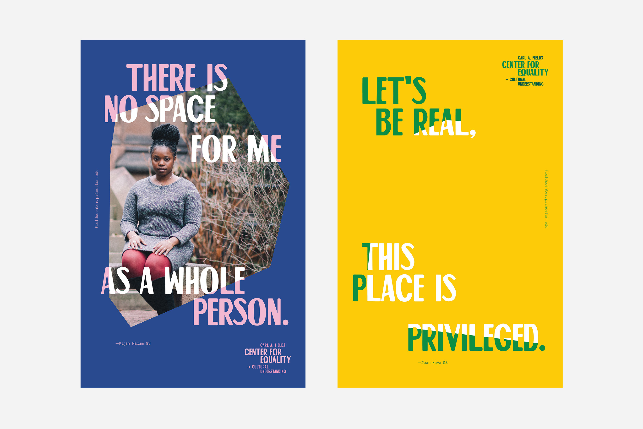 The Carl A. Fields Center challenges Princeton students to confront institutional racism and classism through collaborative discourse and action. Isometric created a visual identity and spatial graphics that frame the experiences of students of color past and present on the walls of the Center’s historic architecture. The design makes minority voices heard and a marginalized history visible, projecting new possibilities for a better, shared future.