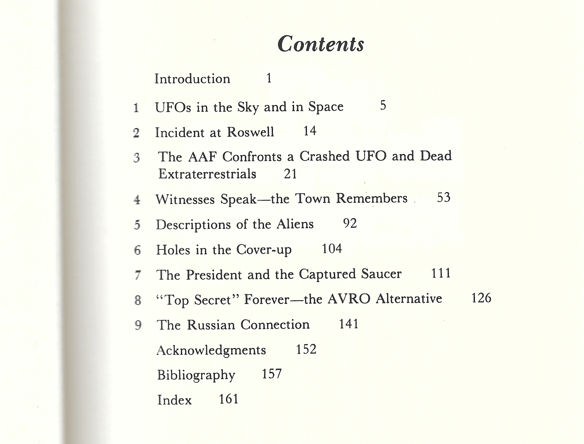 The book purports to contain recently-discovered and never-before-published information on the famed UFO crash that allegedly took place in New Mexico in 1947. While he is not credited, it largely references interviews carried out in 1978 by the late physicist and ufologist Stanton Friedman. From the inside jacket flap: