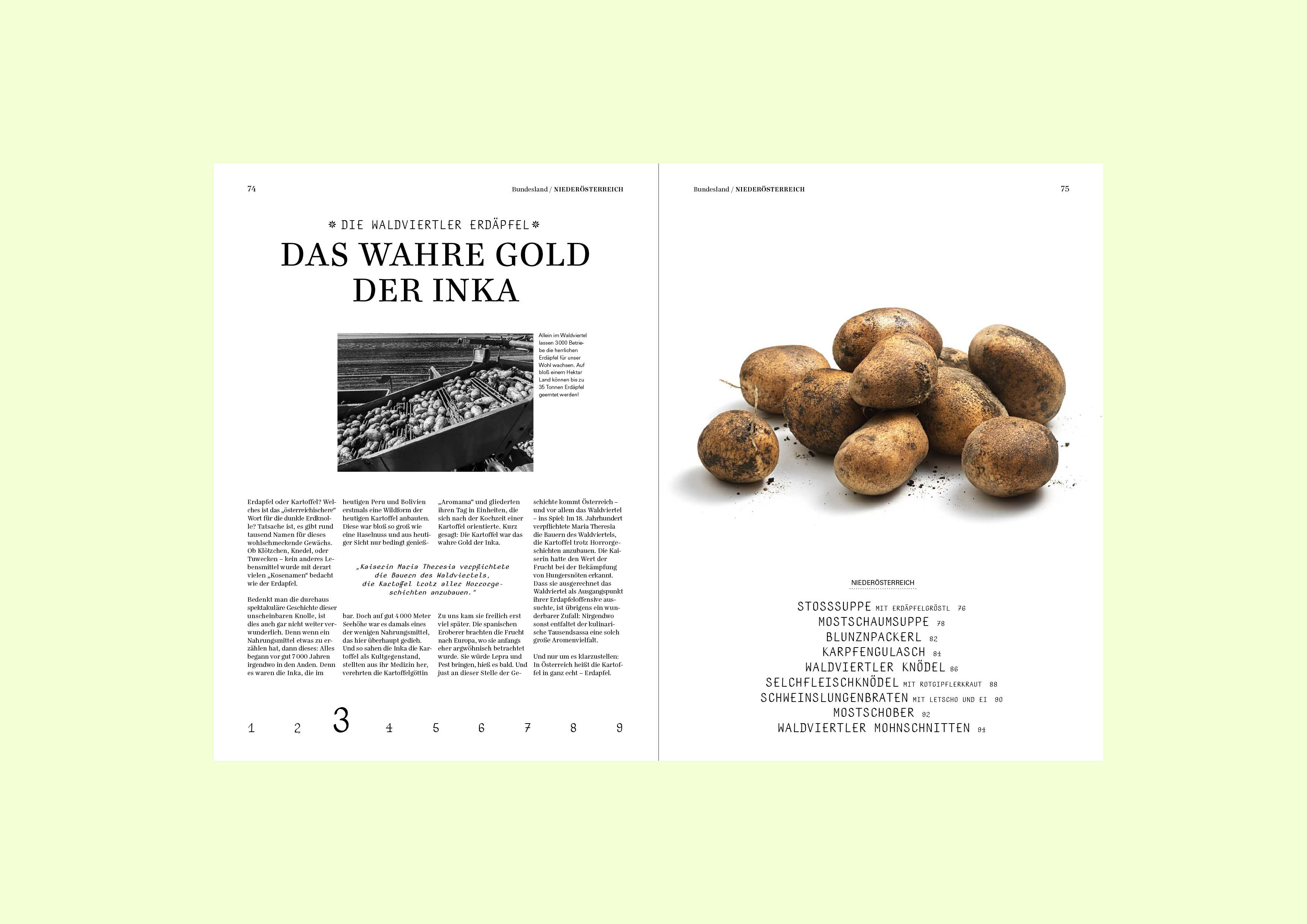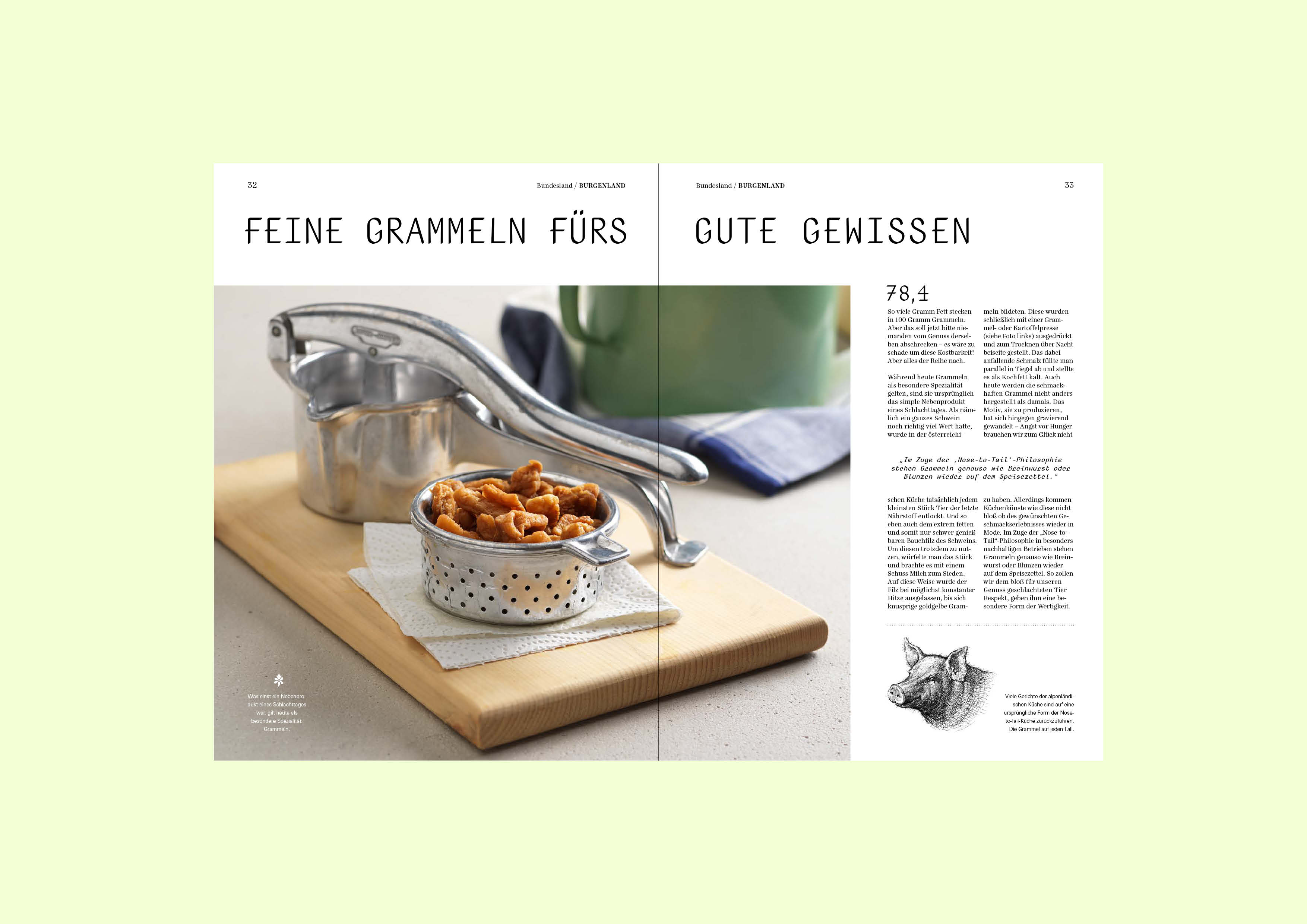 The cookbook Alles in Butter: Warum es in Österreich so richtig gut schmeckt (“Everything in butter: Why everything tastes so good in Austria”) by the multifunctional food processor brand Thermomix focuses on the Austrian cuisine. An extensive collection of recipes for each region of Austria, combined with delightfully assembled background information about austrian traditions. The design is based on a mixture of modernity and traditional elements.