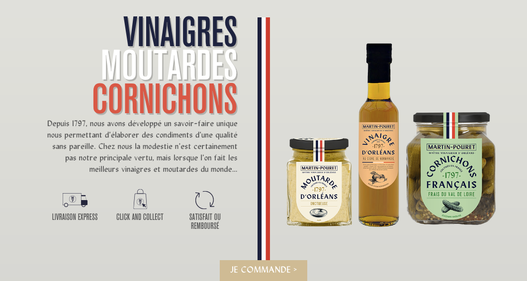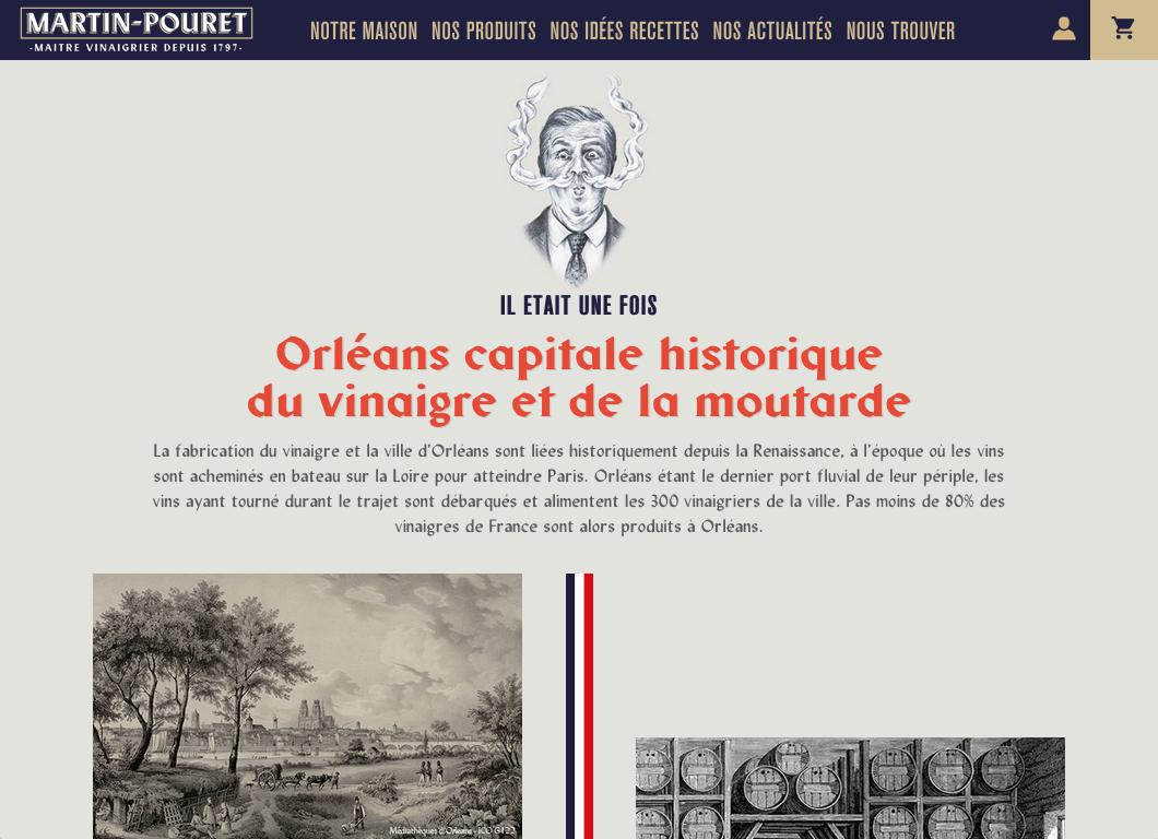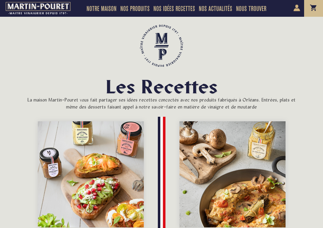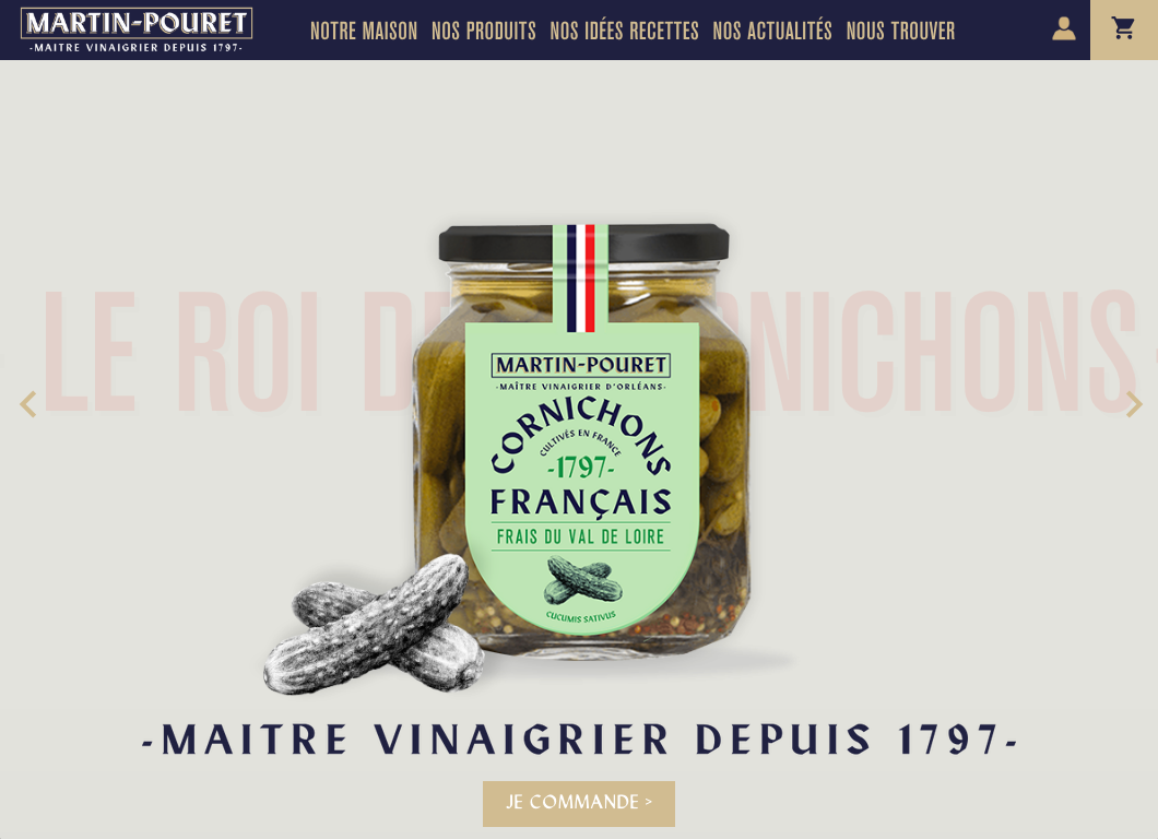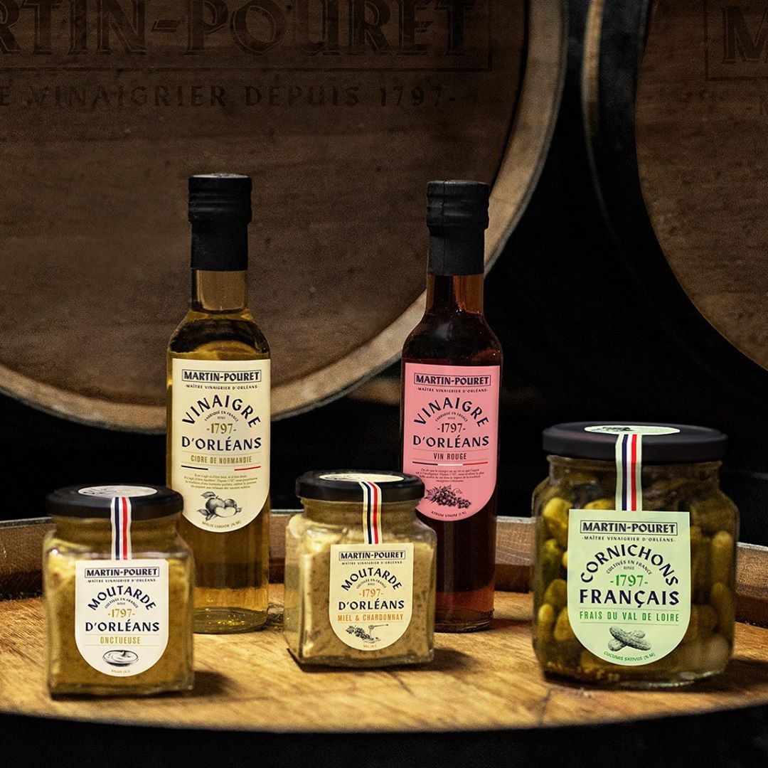 Martin-Pouret is a French business specializing in gourmet food including fine vinegars, high-end mustards, and pickles. Established in 1797, the family-owned company was sold to Compagnie des Gourmets in 2019. Sid Lee created the new branding, using Form as the primary typeface. The typeface by Bizarre Bizarre is used for the logo and the packaging. Form also appears for headings on the website, where it is paired with Akzidenz-Grotesk Condensed and Lydian.