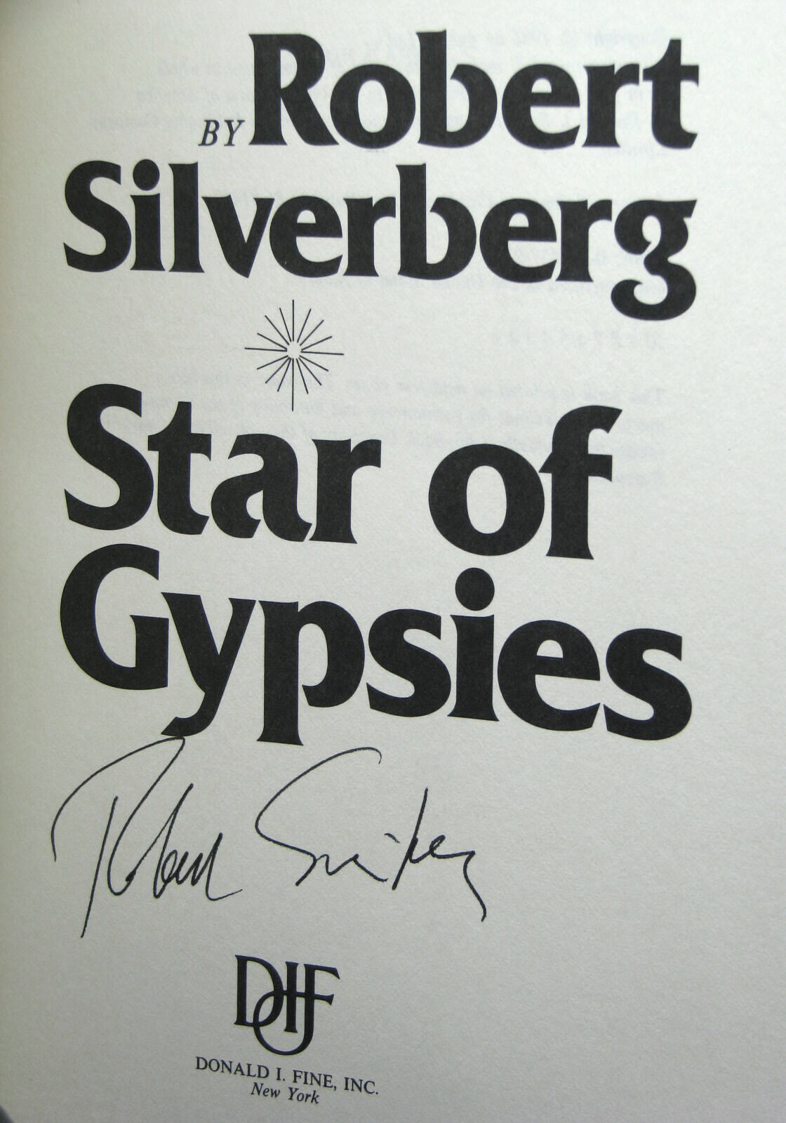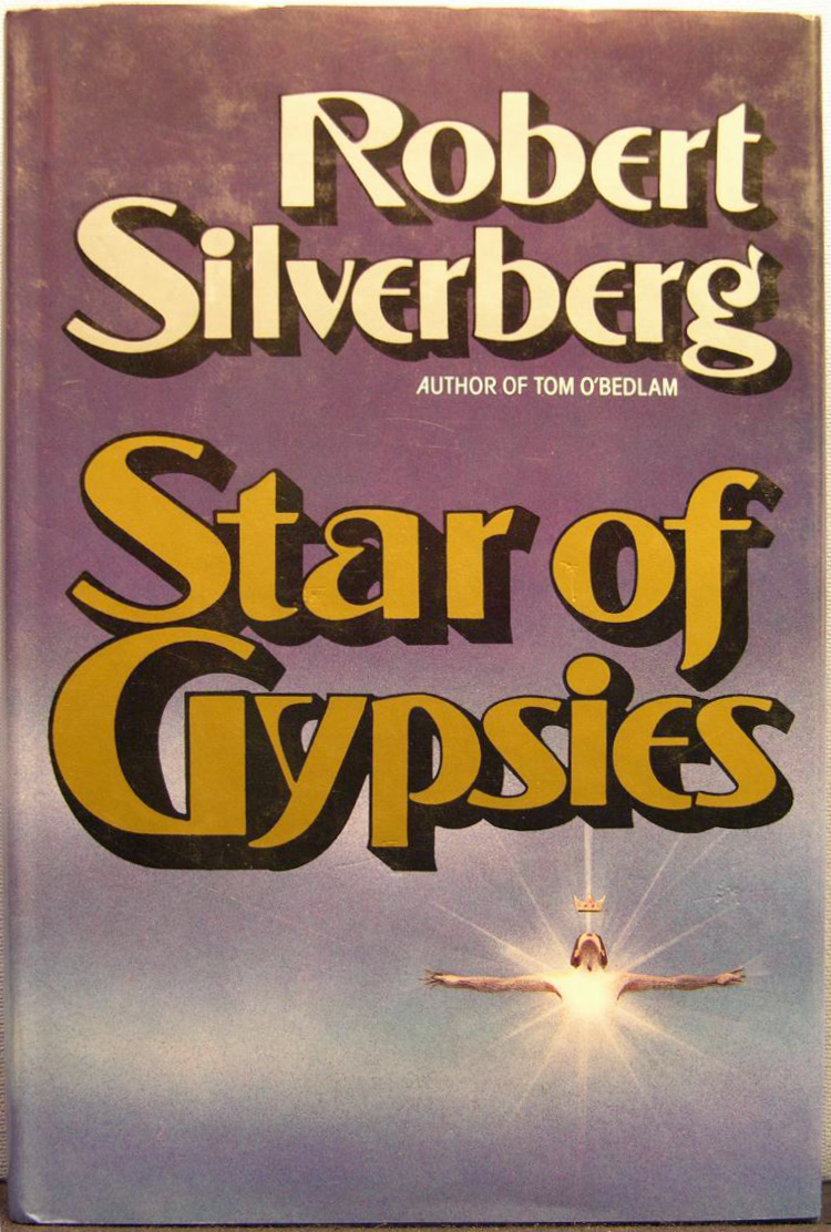 Book jacket for the first edition of Star of Gypsies (1986), a novel by science fiction author Robert Silverberg (b. 1935).