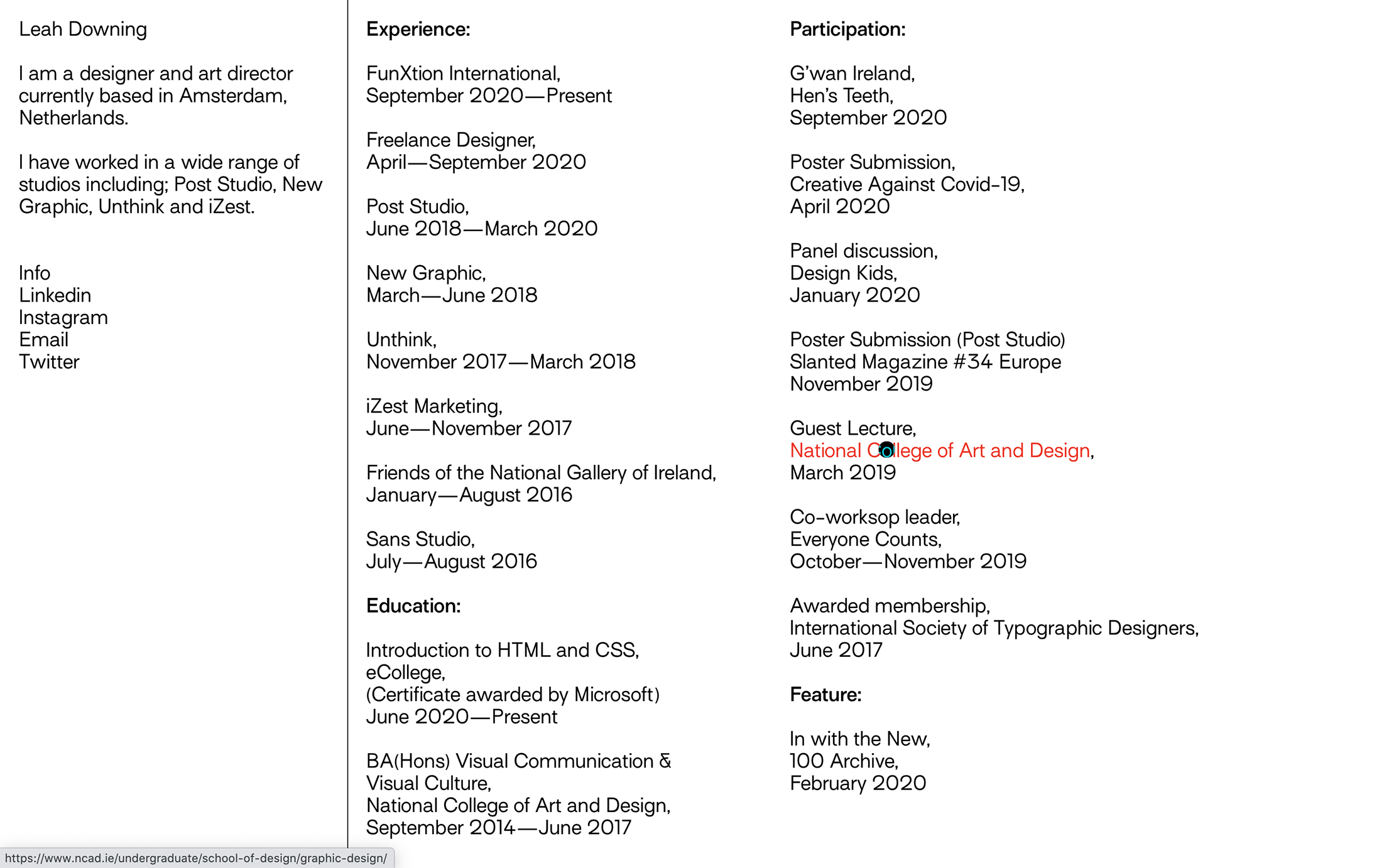 I am a designer and art director currently based in Amsterdam, Netherlands. I have worked in a wide range of studios including; Post Studio, New Graphic, Unthink and iZest.