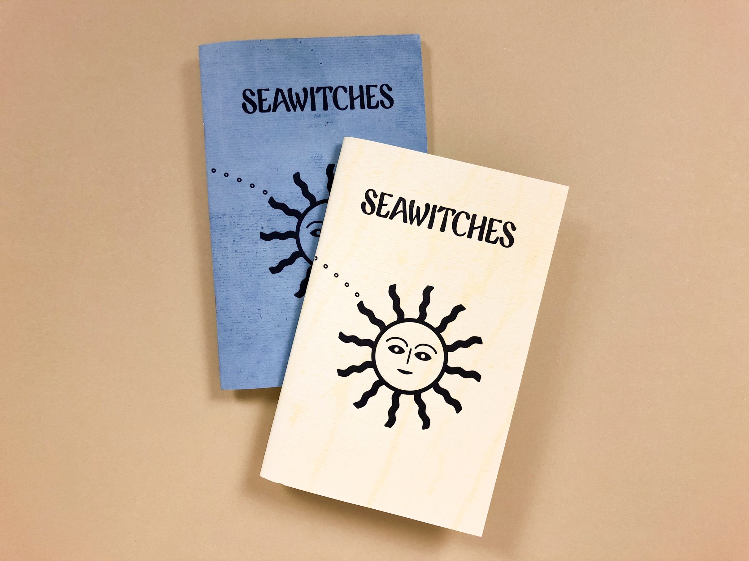 The Seawitches logo was drawn by hand by Leah Koransky and references California surf culture, vintage paperback sci-fi and mystery novels, and psychedelia.