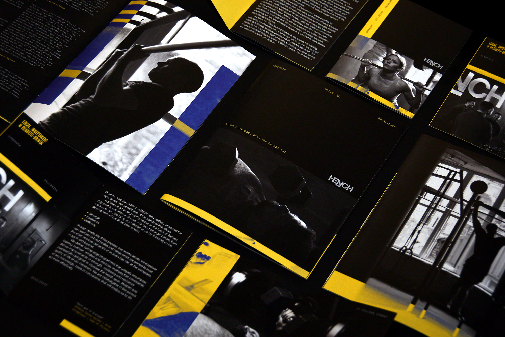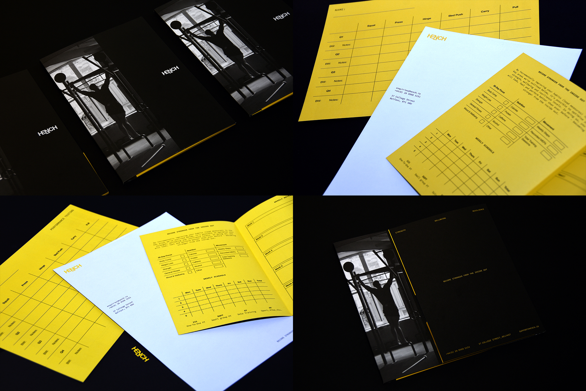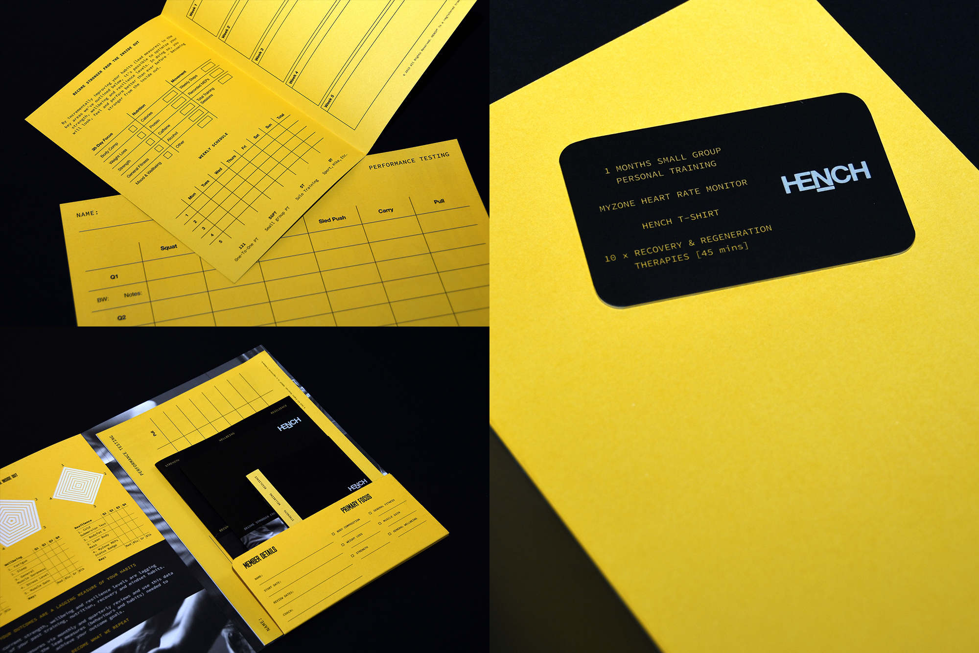 Brand refresh implemented across a variety of print and promotional material for Hench, a Belfast-based state of the art training and recovery facility.