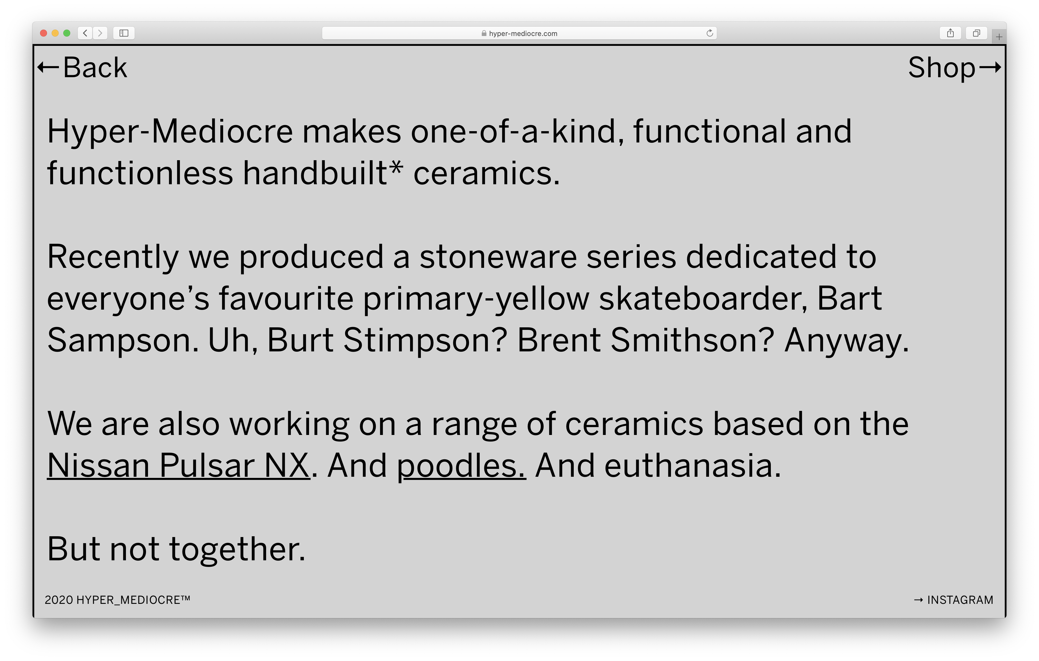 Nieuk (Polish for “ignorant”) by independent type foundry Laïc in use for the launch of contemporary ceramic studio Hyper-Mediocre’s new website and online store.