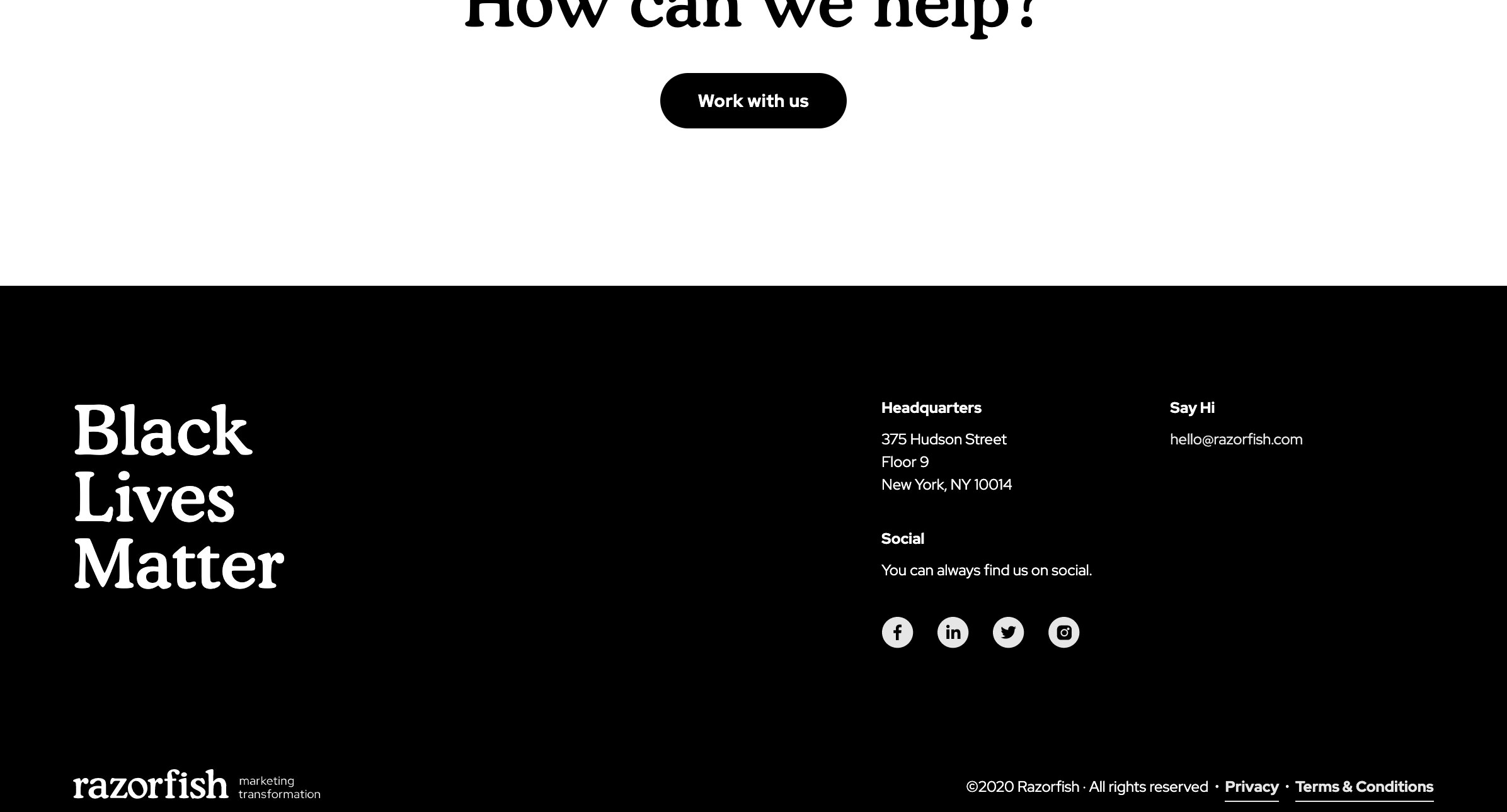 With over 1,400 employees and 15 locations across North America (as of December 2020), Razorfish is one of the world’s largest interactive agencies. The company has been acquired multiple times since its founding in 1994. In January 2020, the agency rebranded as Razorfish, returning to its original name after four years as Sapient.Razorfish.
