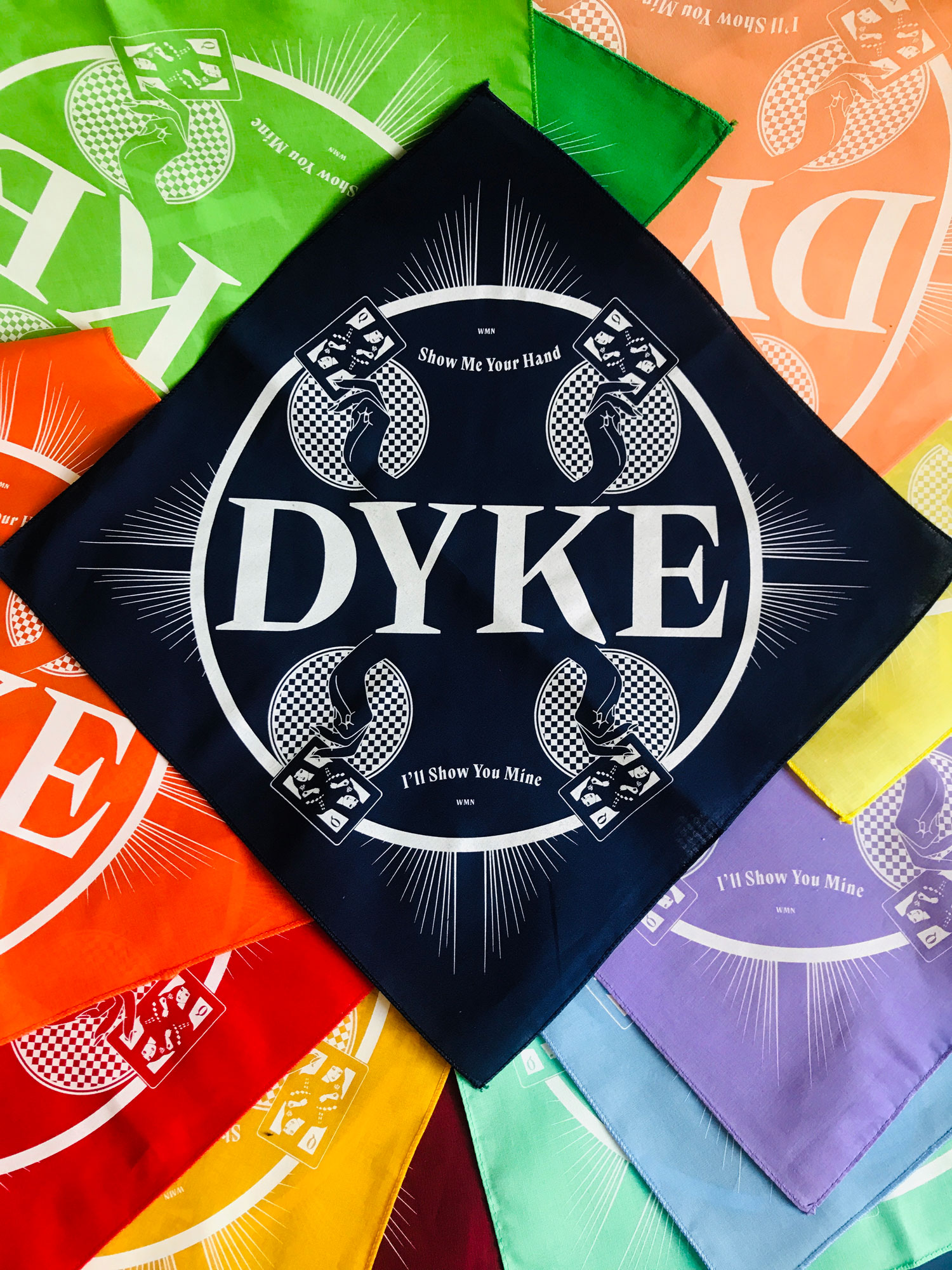 Lesbian poetry and art publication WMN made a range of handkerchiefs as a nod to the hanky code originated in part by legendary ’80s lesbian erotica magazine On Our Backs. Each color signifies a sexual preference or identifier and worn in a back pocket flags those to other dykes. Designer Sara Duell chose Franziska Weitgruber’s Nikolai because of its bold feel and unapologetic style which pairs well with the elegant illustration by Caitlin Clingman.