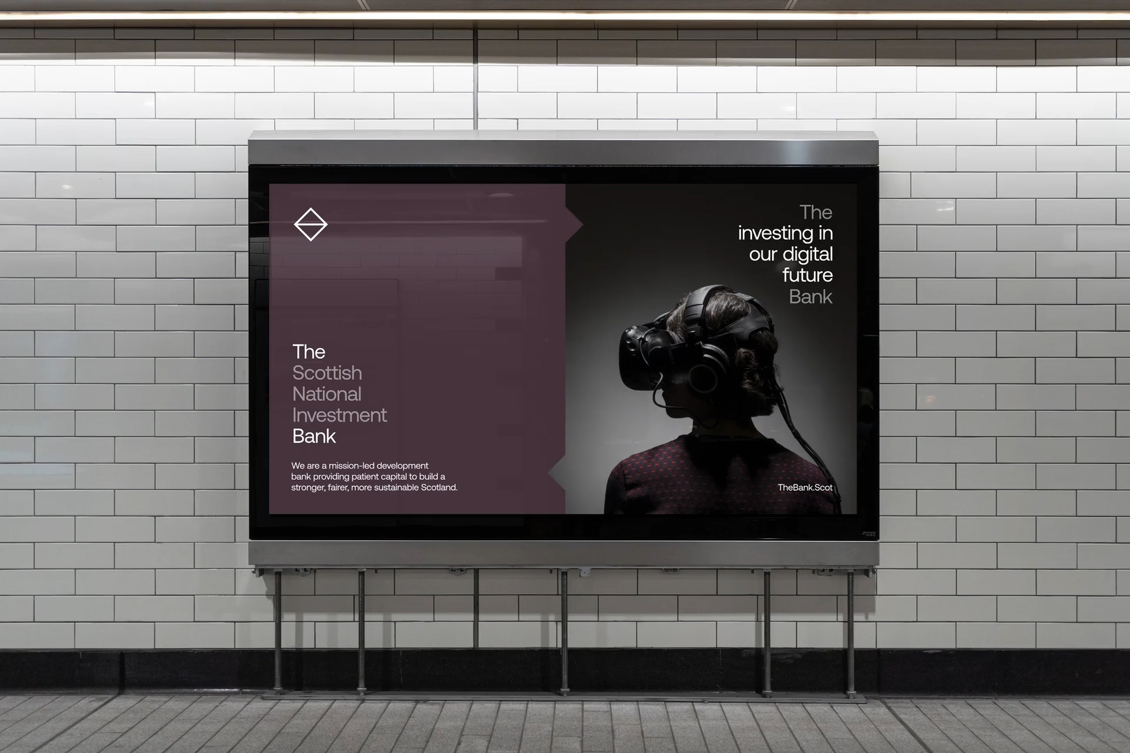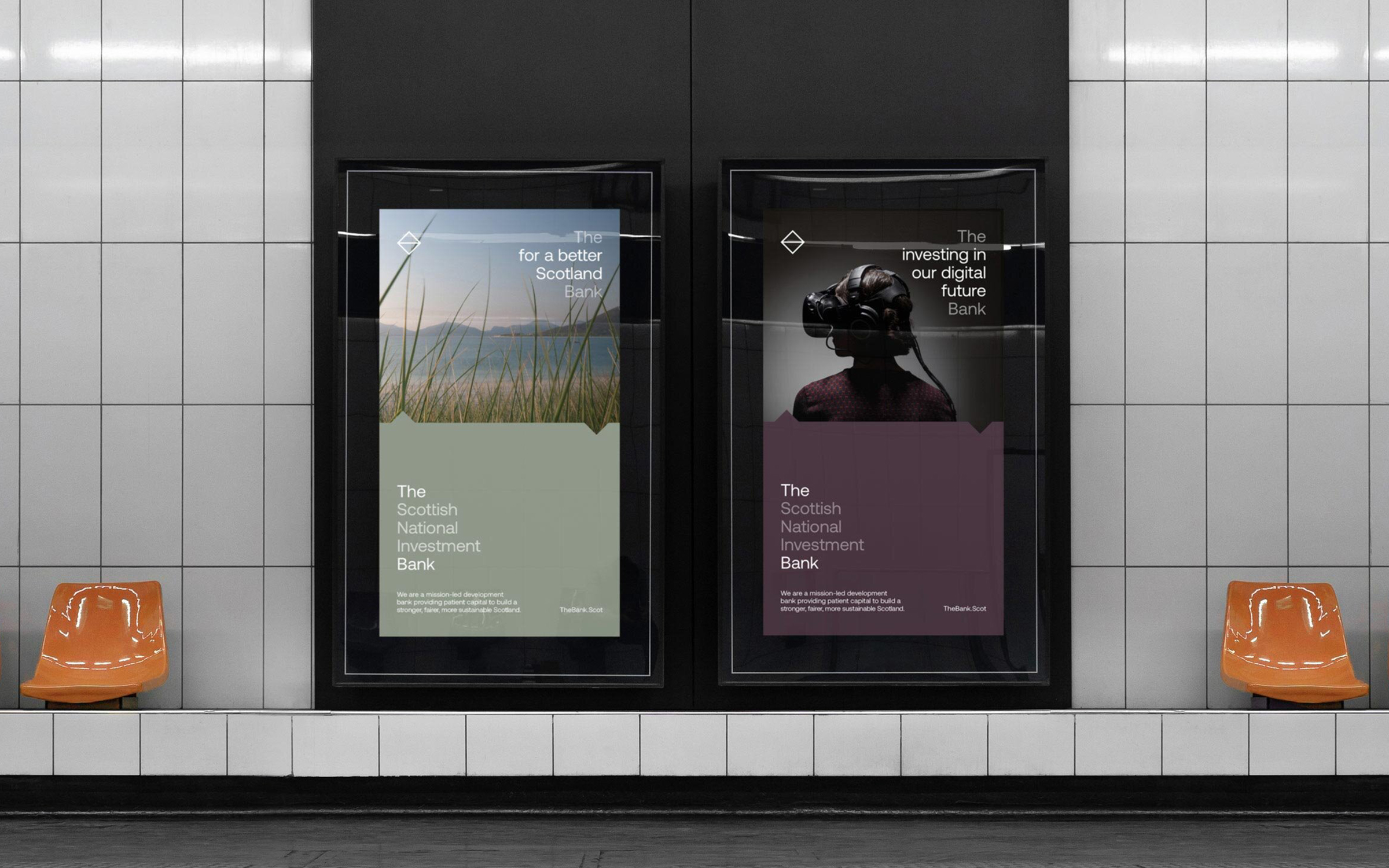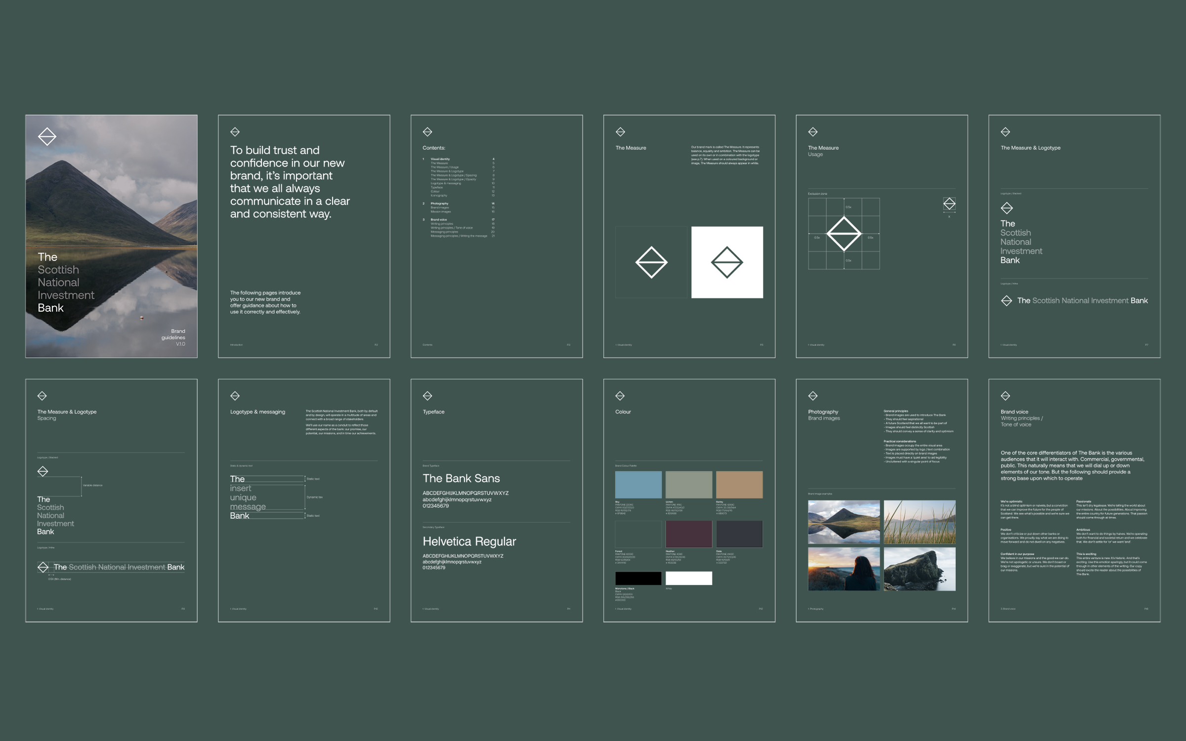 The logotype is supported by ‘The Measure’, an iconic graphic device inspired by The Bank’s primary missions of equality, sustainability and innovation, whilst also referencing the Scottish landscape. Colour, type, photography and a graphic framework combine to create distinct visual narrative for Scotland’s first development bank.