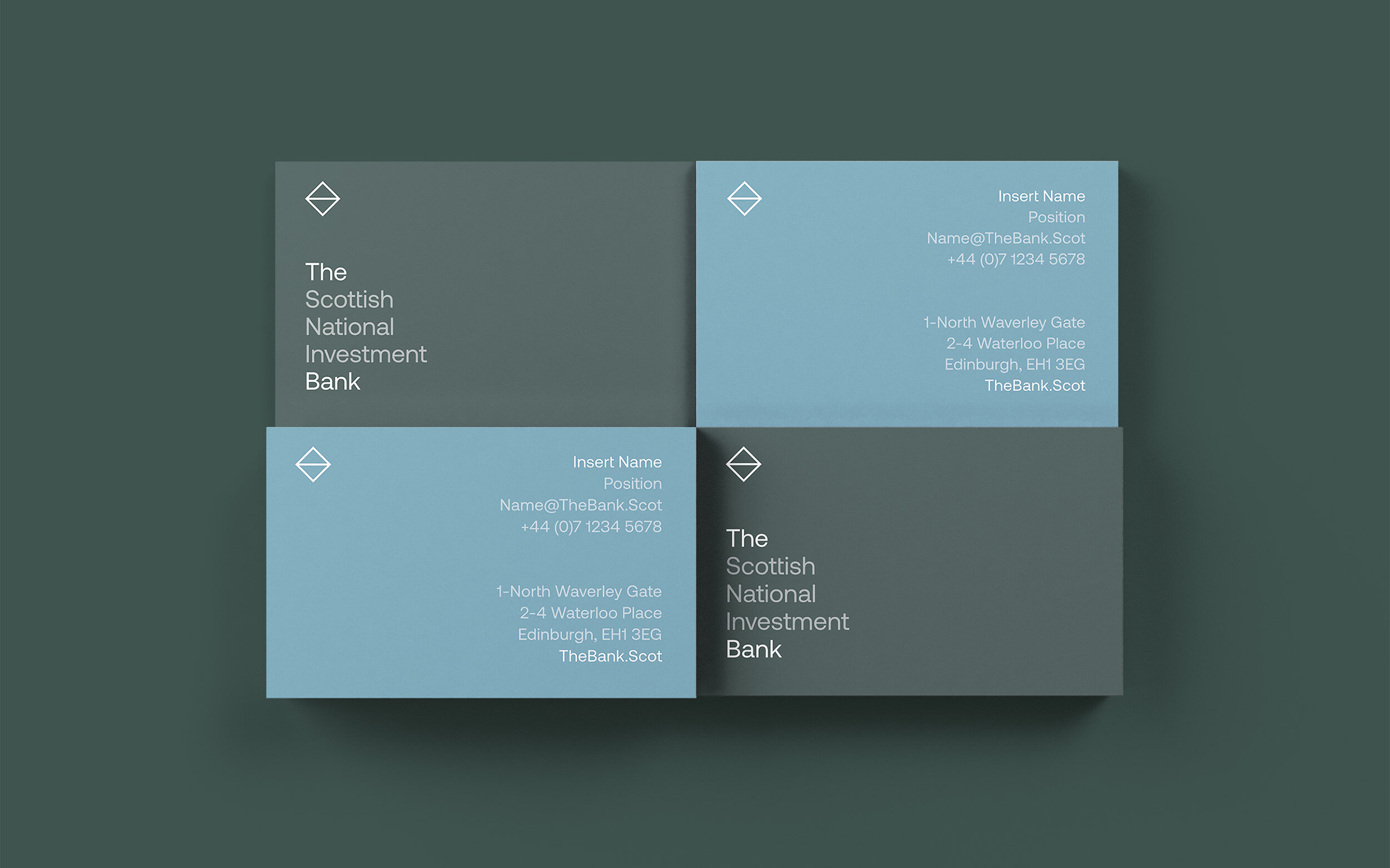 The name itself was a bit of a mouthful. In order to avoid people shortening it to SNIB, we placed 'The’ at the front, thereby creating a shorthand version of the name – ‘The Bank’. As an entirely mission-led institution, it was important that The Banks missions were at the heart of the brand. To do this we developed a dynamic and flexible identity system by highlighting the words ‘The’ and ‘Bank’, and placing evocative mission statements within the logotype.