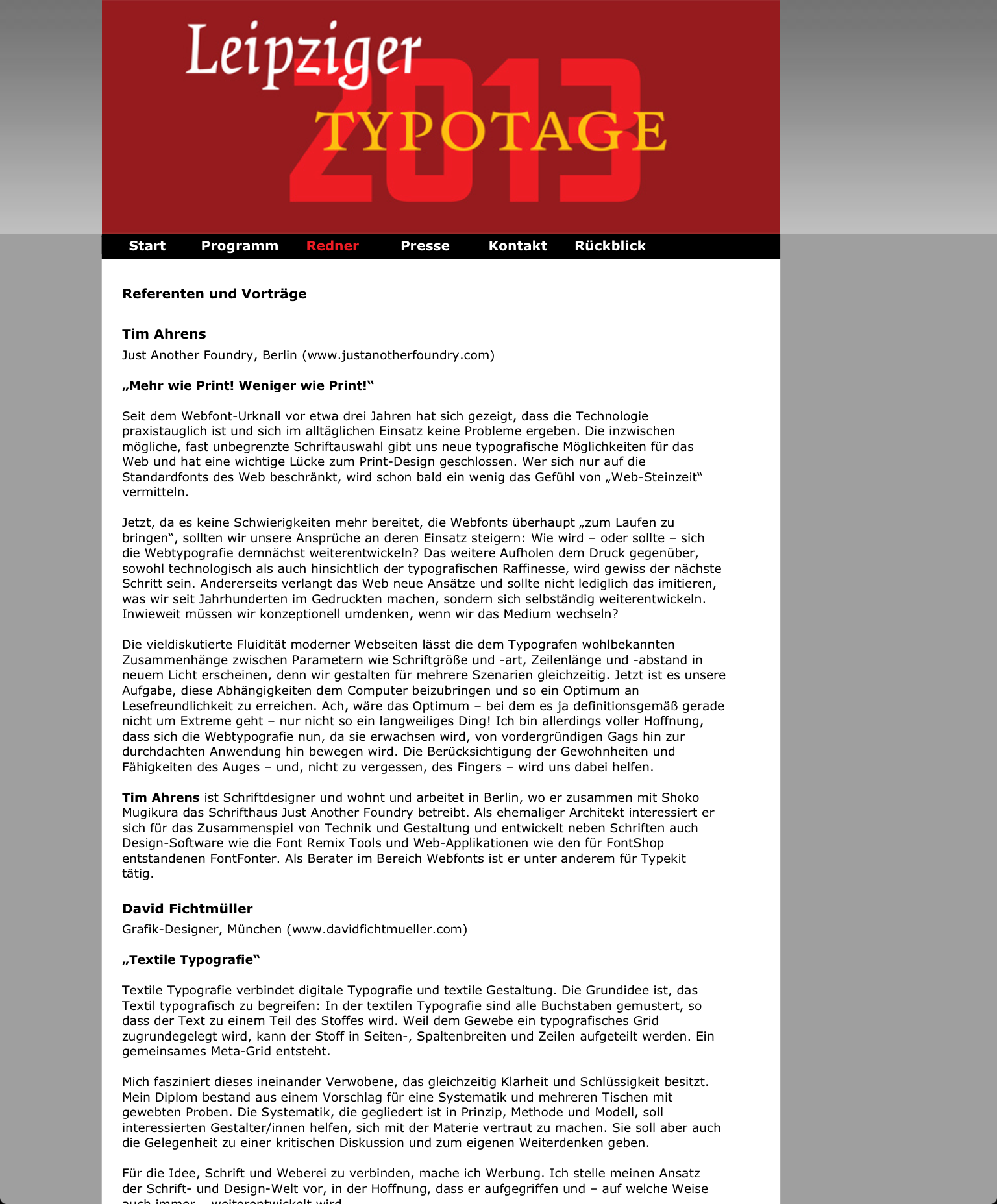 Posted as part of a little survey about websites for conferences on typography and graphic design – how do these specialist events present themselves typographically, in 2013?