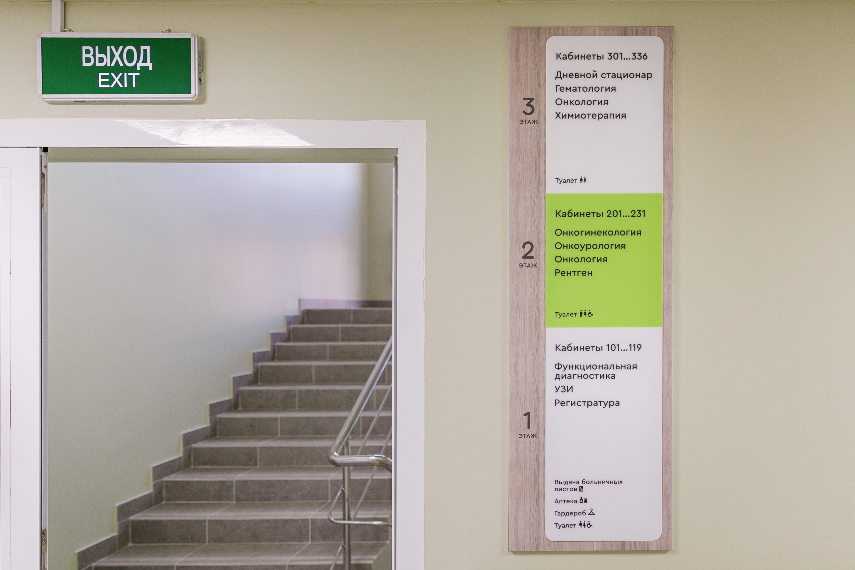 For this and other similar centres, Zoloto Group has designed and implemented a navigation concept. Cera Round with its Cyrillics are the typeface of choice.