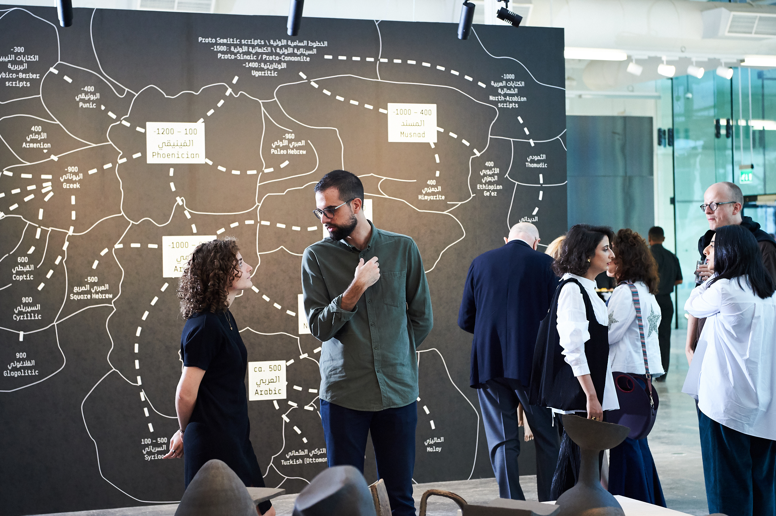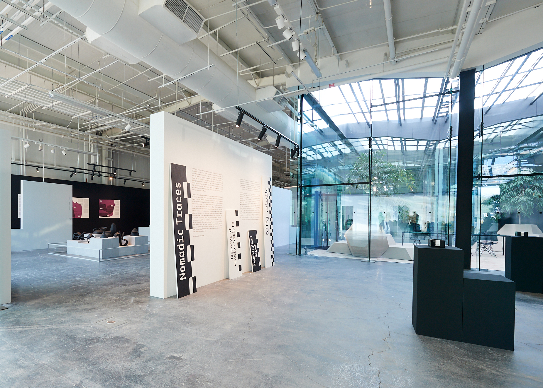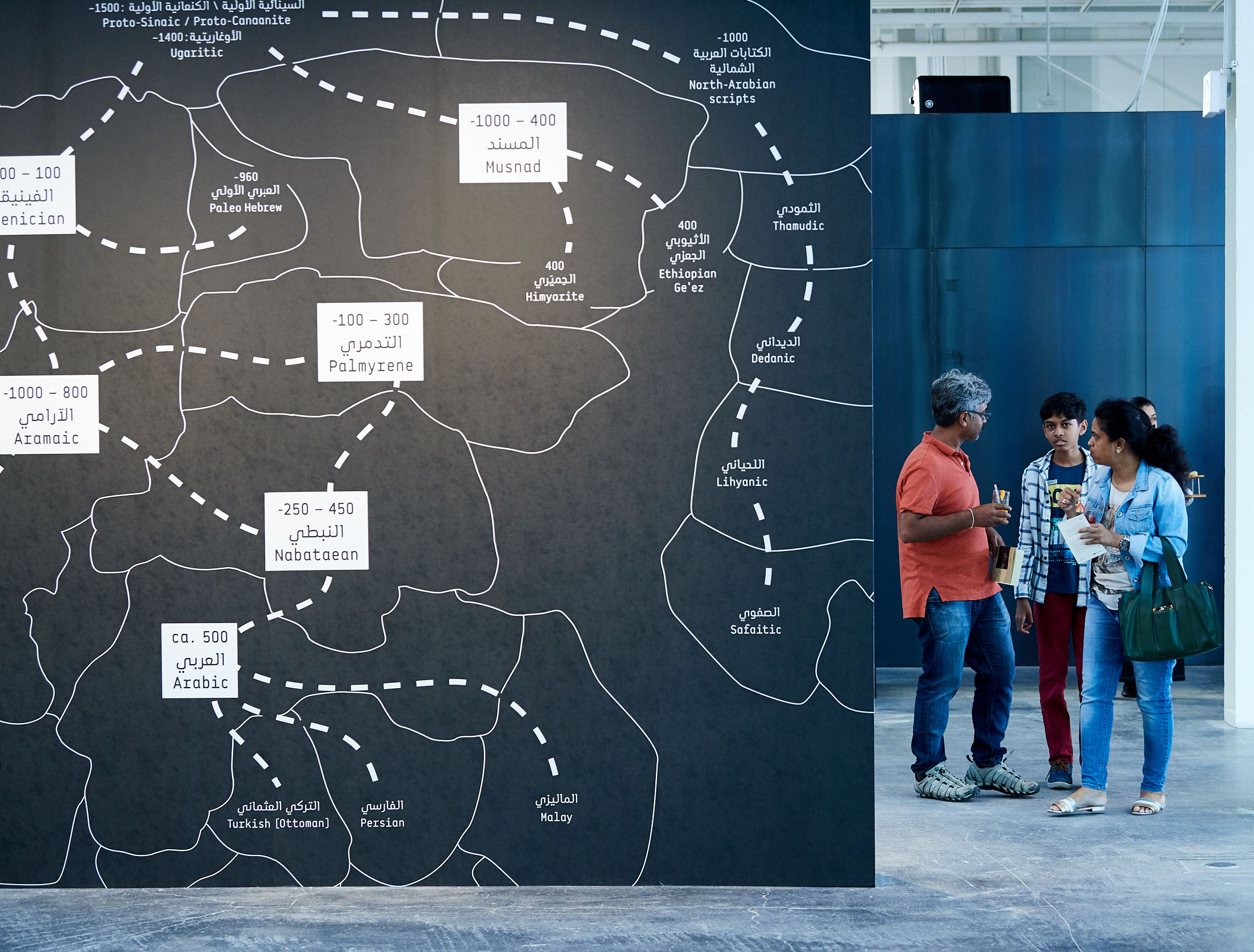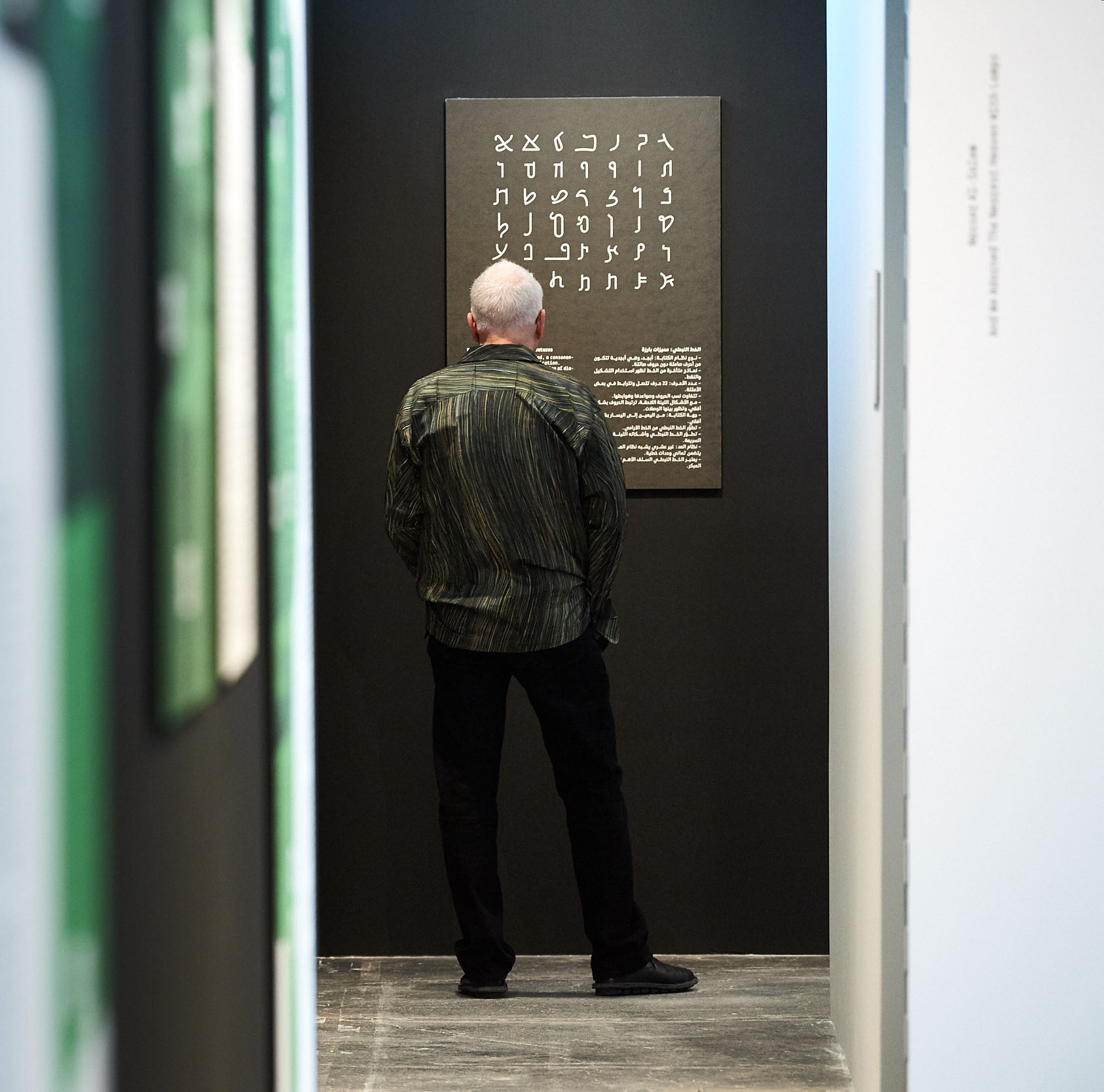 Nomadic Traces: Journeys of Arabian Scripts explores the role that scripts have played in defining and preserving the cultural identity of past and present civilizations, and on the migrational and transformative nature of writing, and its ability to freely cross borders and cultures. The exhibition focuses on the development of some of the key Abjads (consonantal alphabets) of the Middle East. It poetically links the past with the present, revealing the wealth of the region through its many scripts, including Phoenician, Aramaic, Musnad, Palmyrene, Nabatean, and early Arabic (Jazm).