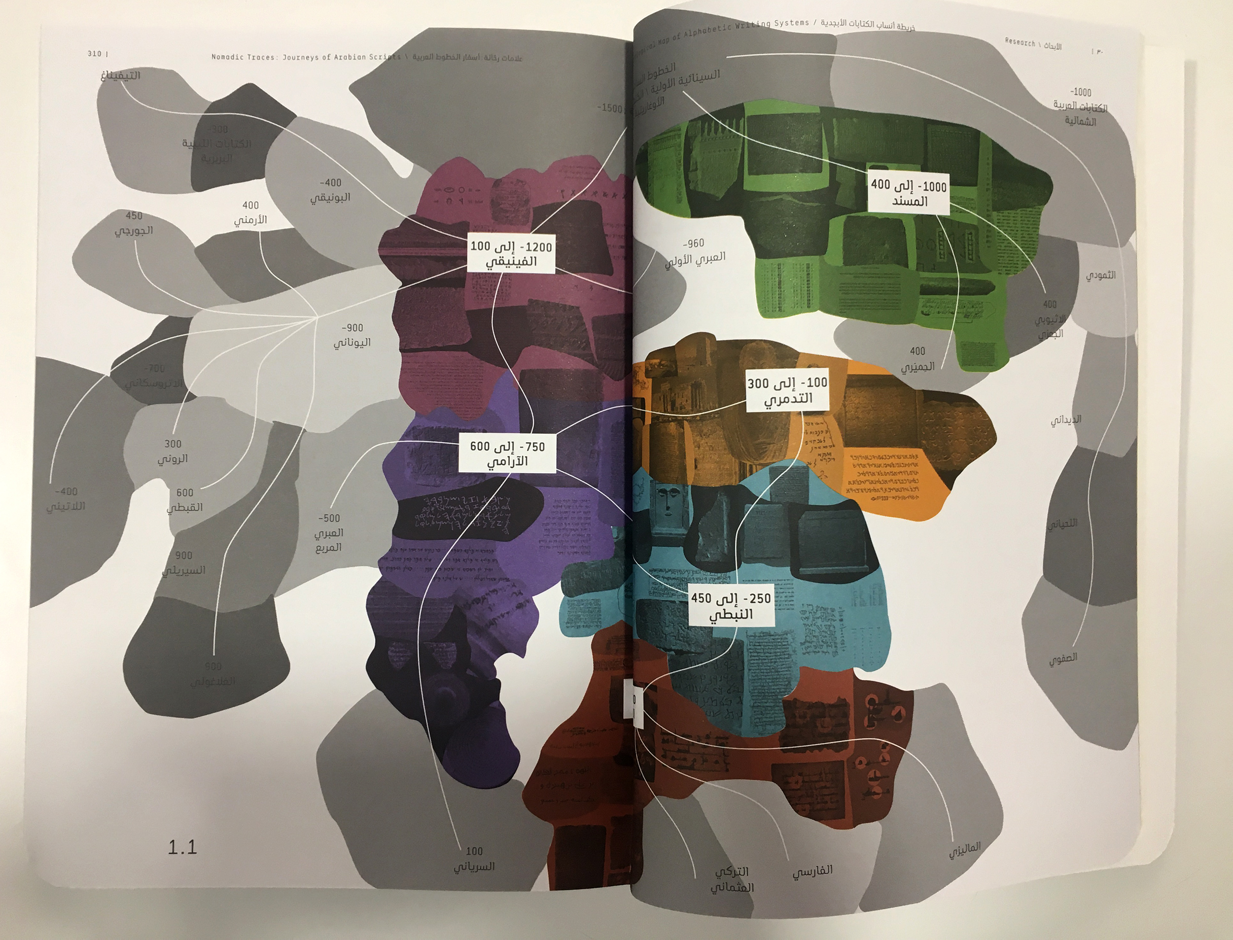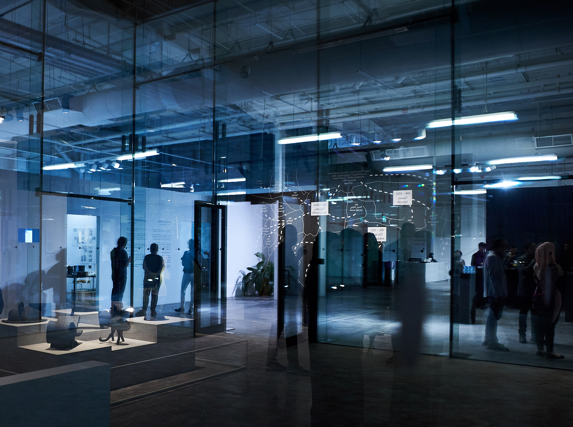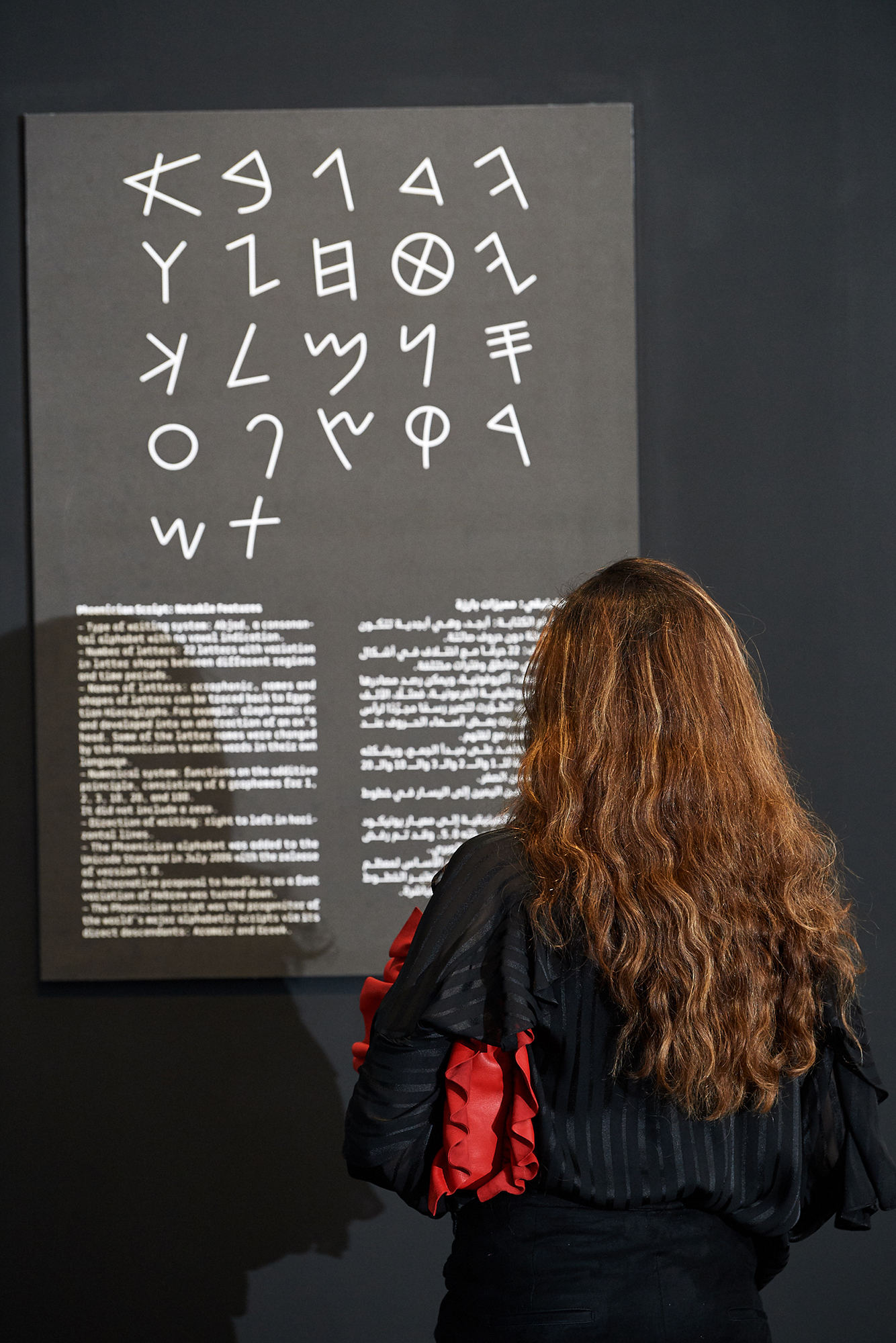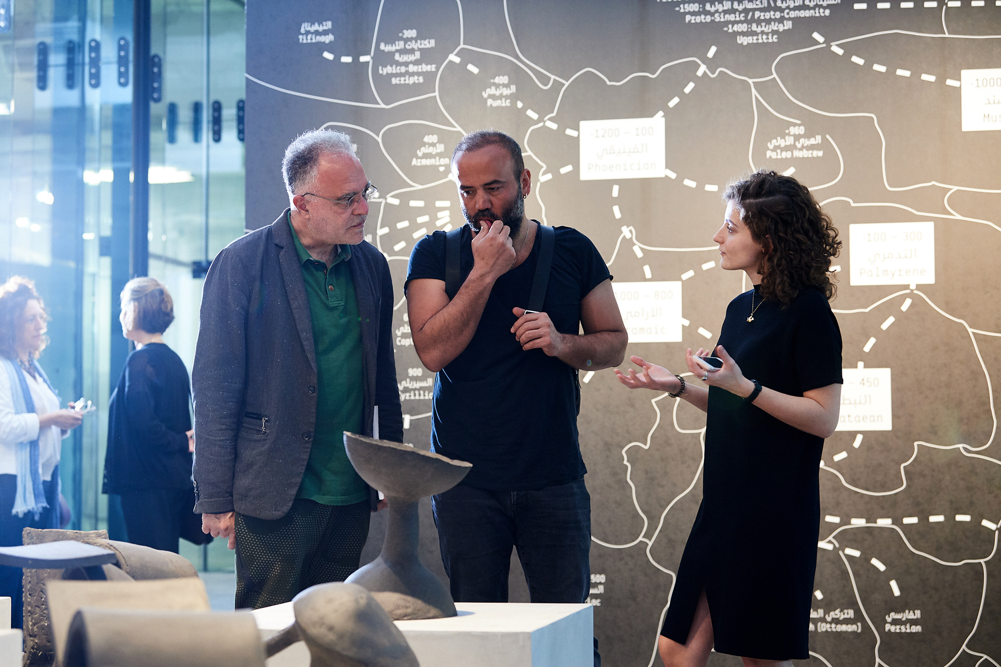 Nomadic Traces: Journeys of Arabian Scripts explores the role that scripts have played in defining and preserving the cultural identity of past and present civilizations, and on the migrational and transformative nature of writing, and its ability to freely cross borders and cultures. The exhibition focuses on the development of some of the key Abjads (consonantal alphabets) of the Middle East. It poetically links the past with the present, revealing the wealth of the region through its many scripts, including Phoenician, Aramaic, Musnad, Palmyrene, Nabatean, and early Arabic (Jazm).