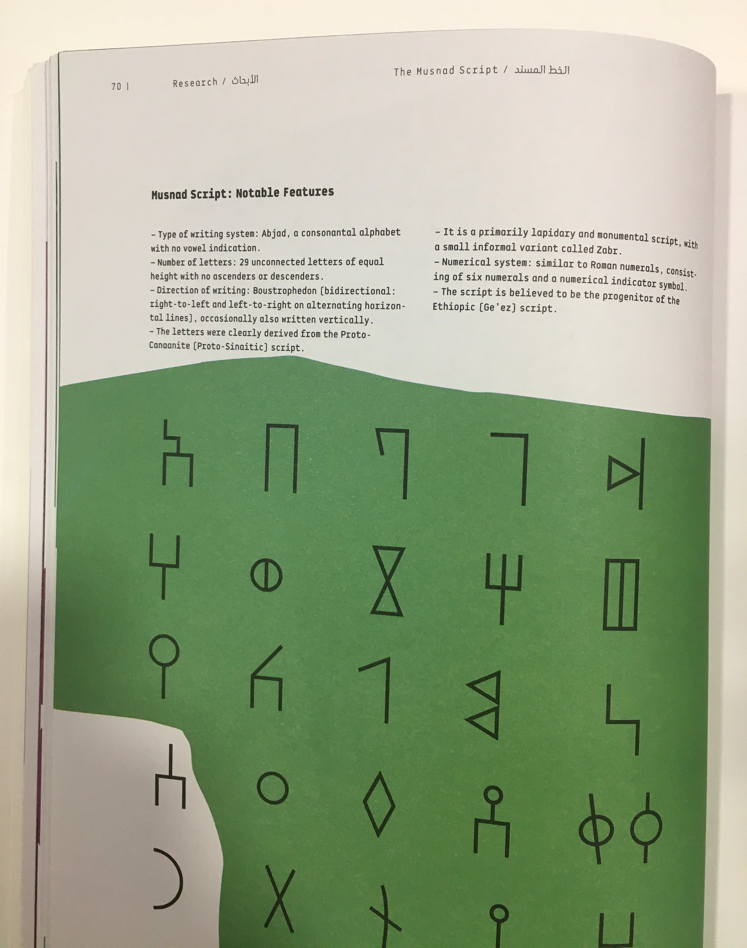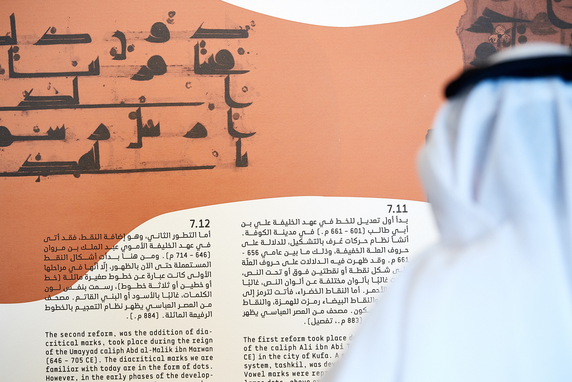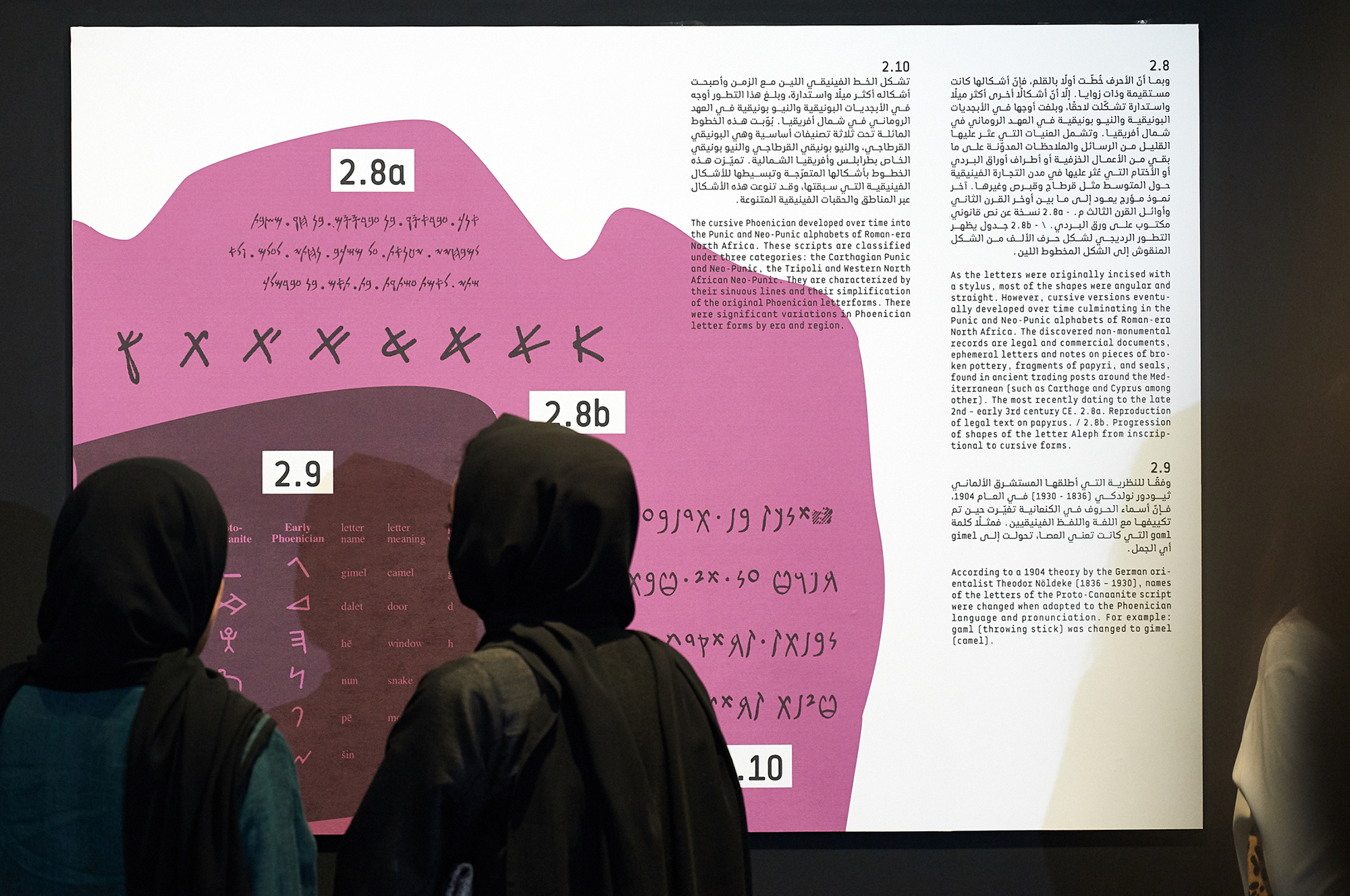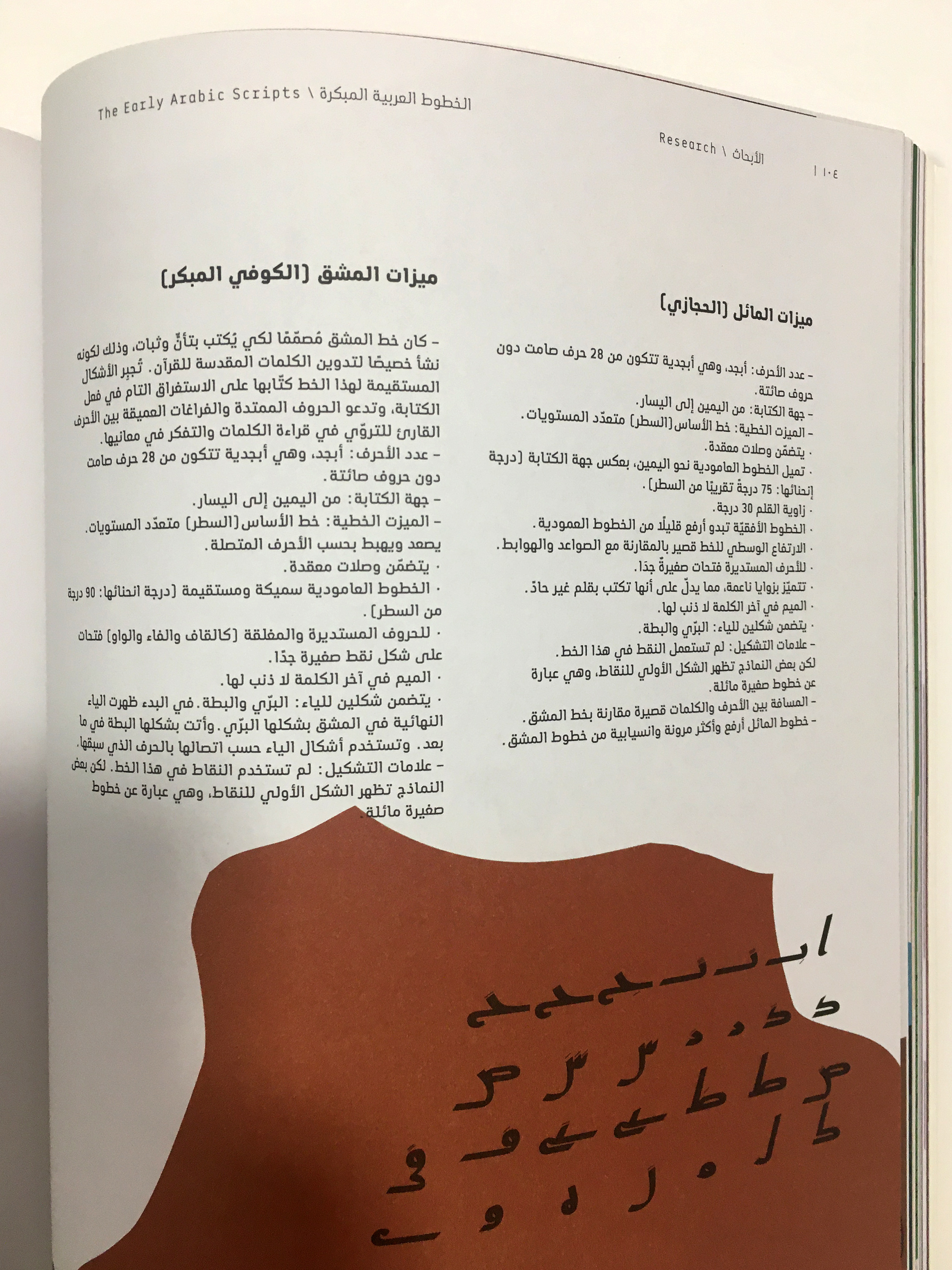 Nomadic Traces: Journeys of Arabian Scripts explores the role that scripts have played in defining and preserving the cultural identity of past and present civilizations, and on the migrational and transformative nature of writing, and its ability to freely cross borders and cultures. The exhibition focuses on the development of some of the key Abjads (consonantal alphabets) of the Middle East. It poetically links the past with the present, revealing the wealth of the region through its many scripts, including Phoenician, Aramaic, Musnad, Palmyrene, Nabatean, and early Arabic (Jazm).