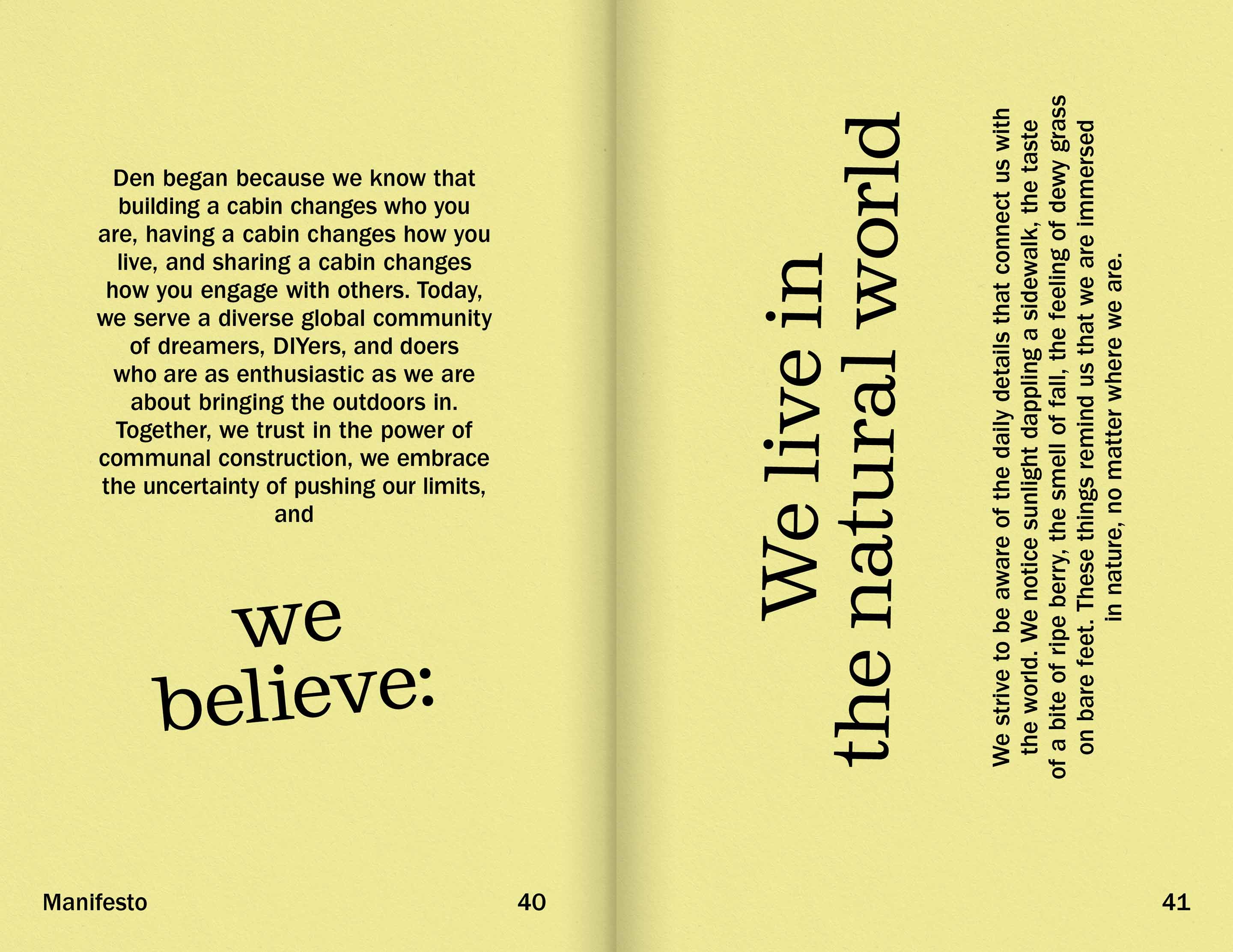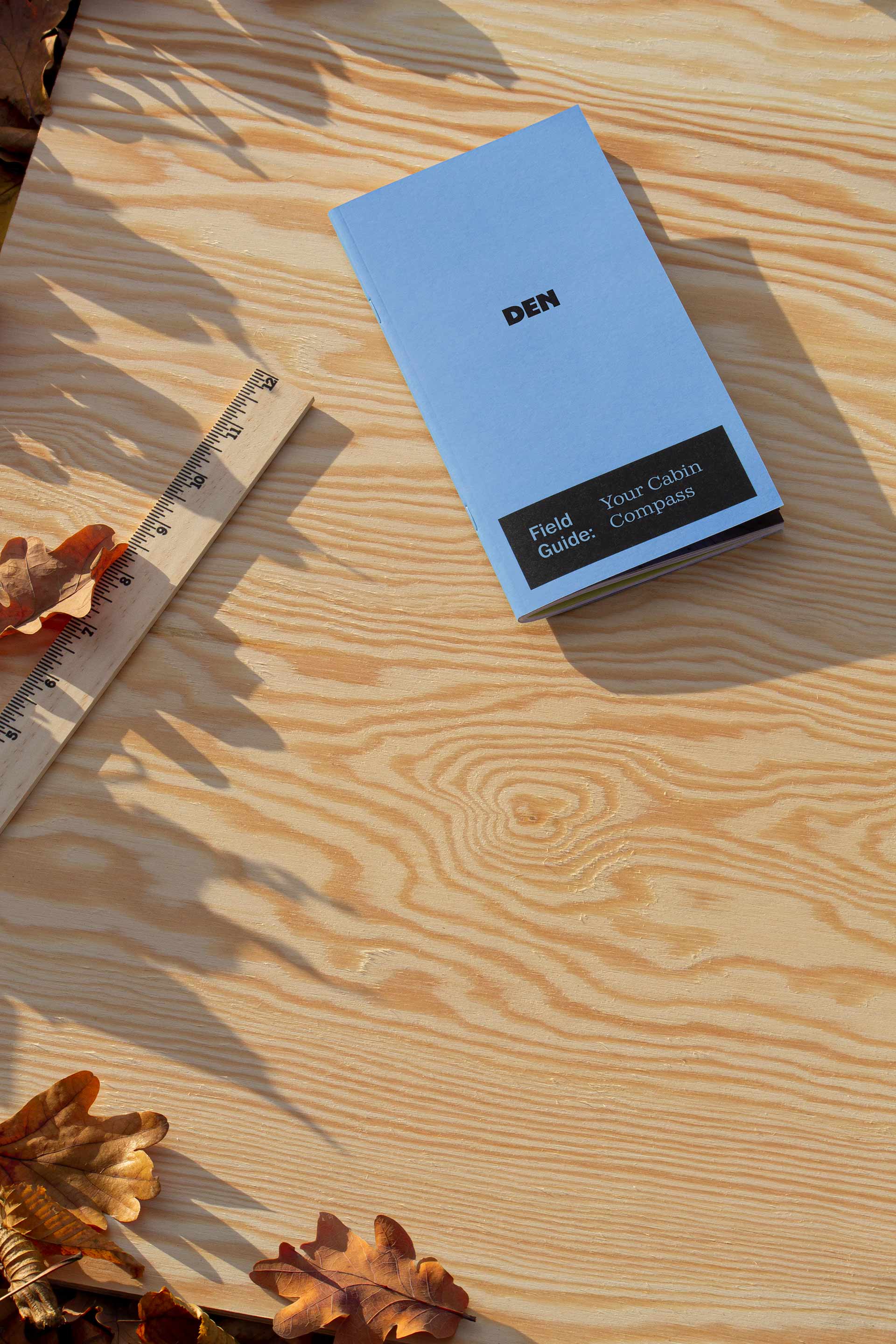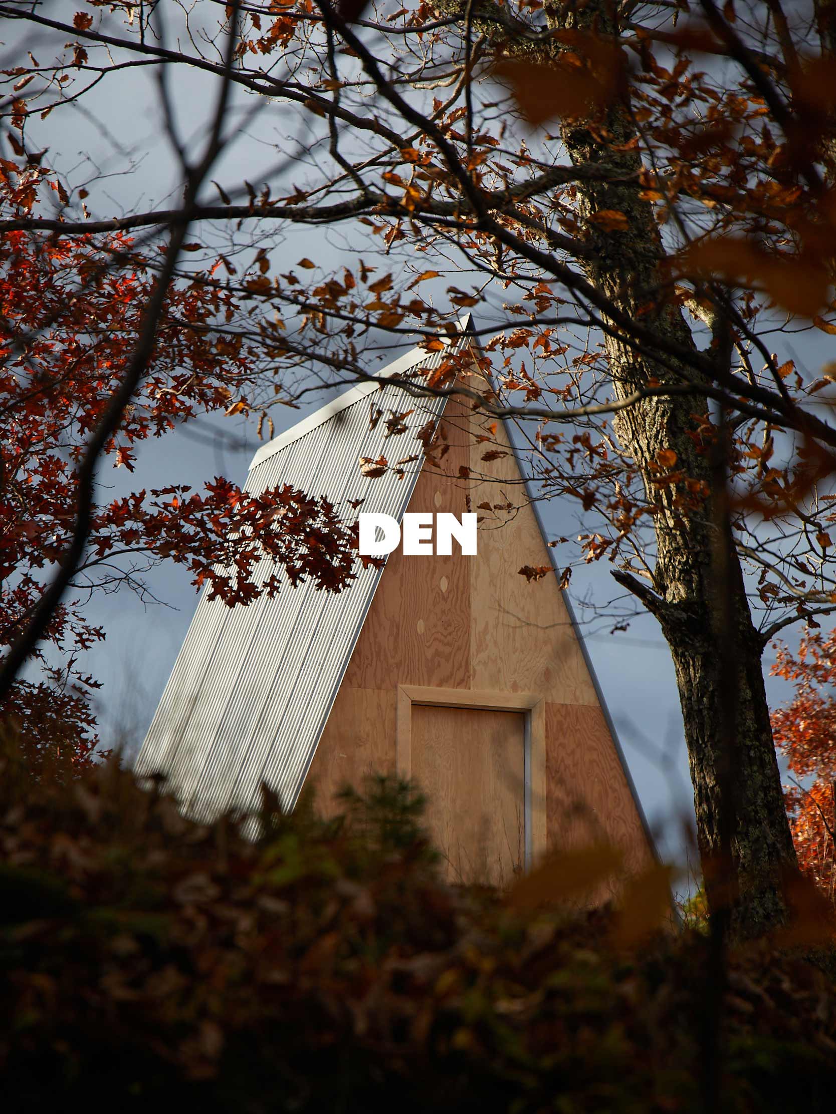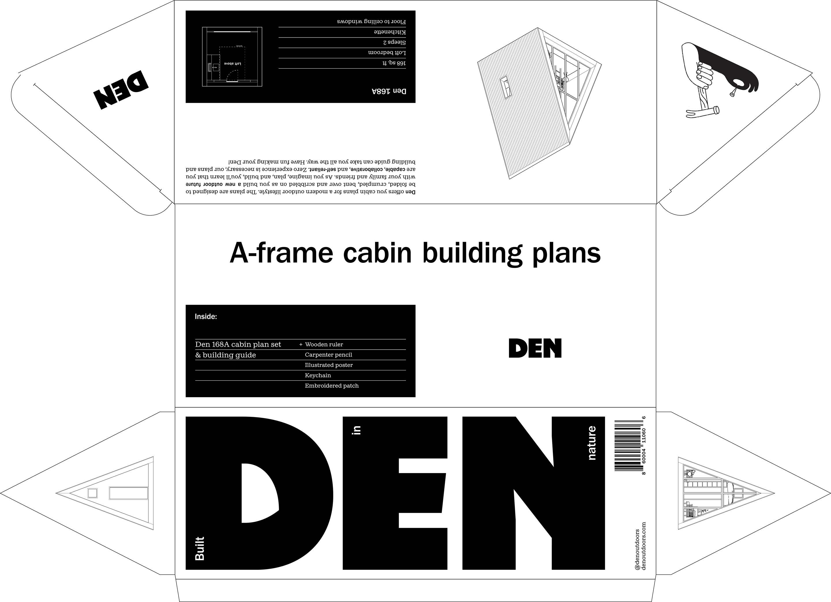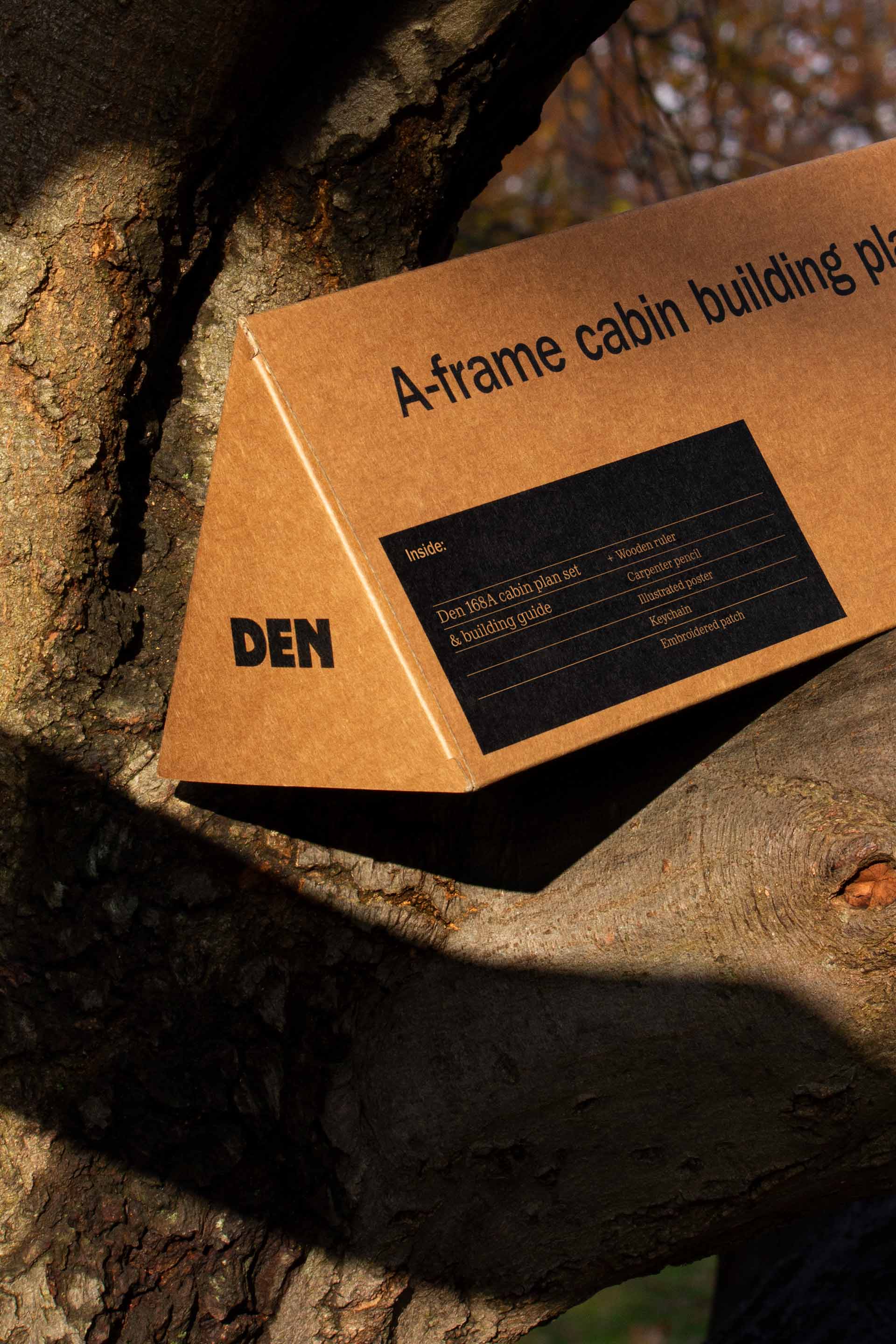 Identity work for Den, a brand born from a DIY spirit, offering architectural plans and ready-to-assemble cabin kits.