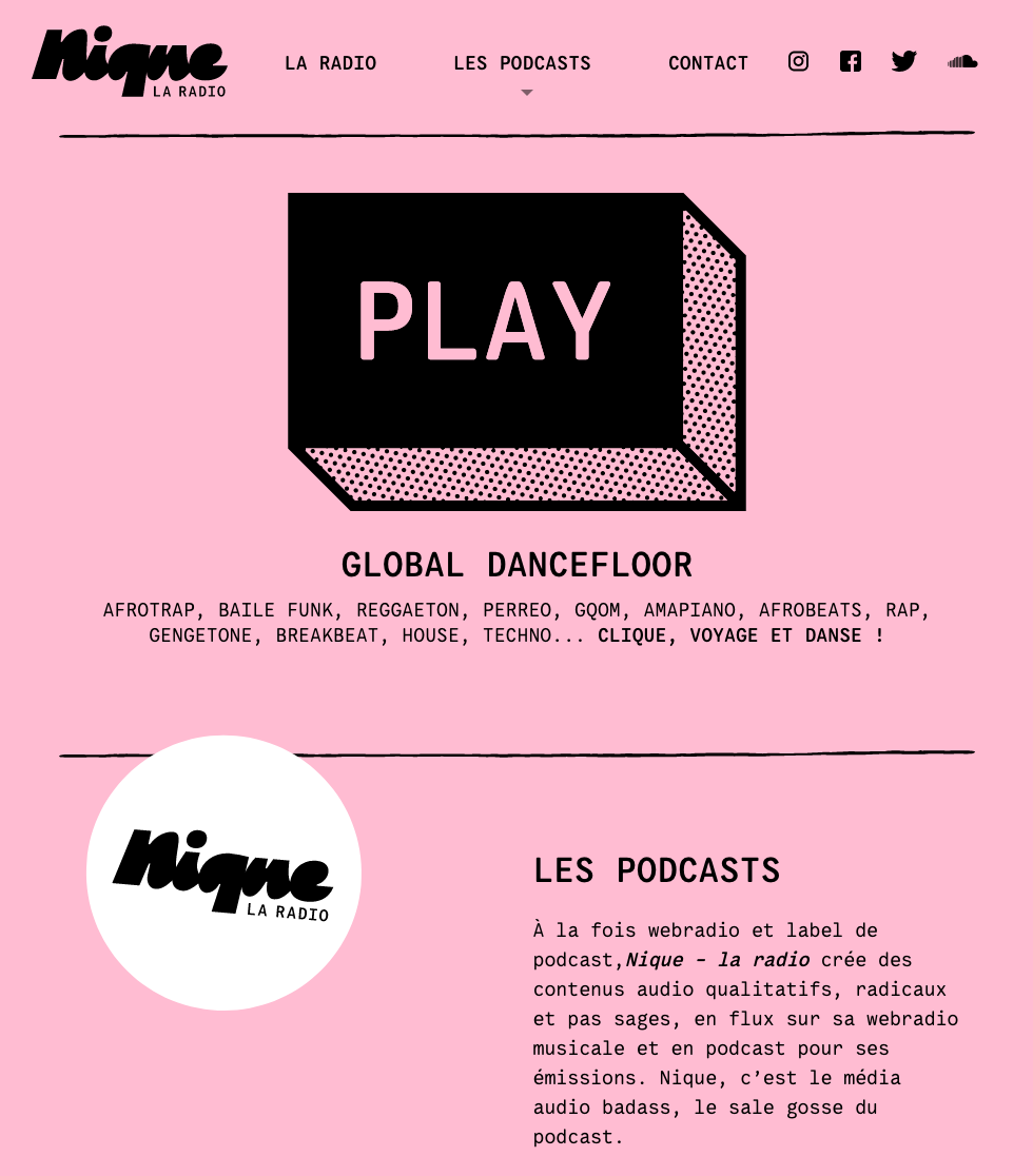 Launched in summer 2020, Nique – la radio (“Fuck – the radio”) is both a webradio station and a podcast label. From nique.radio (translated):