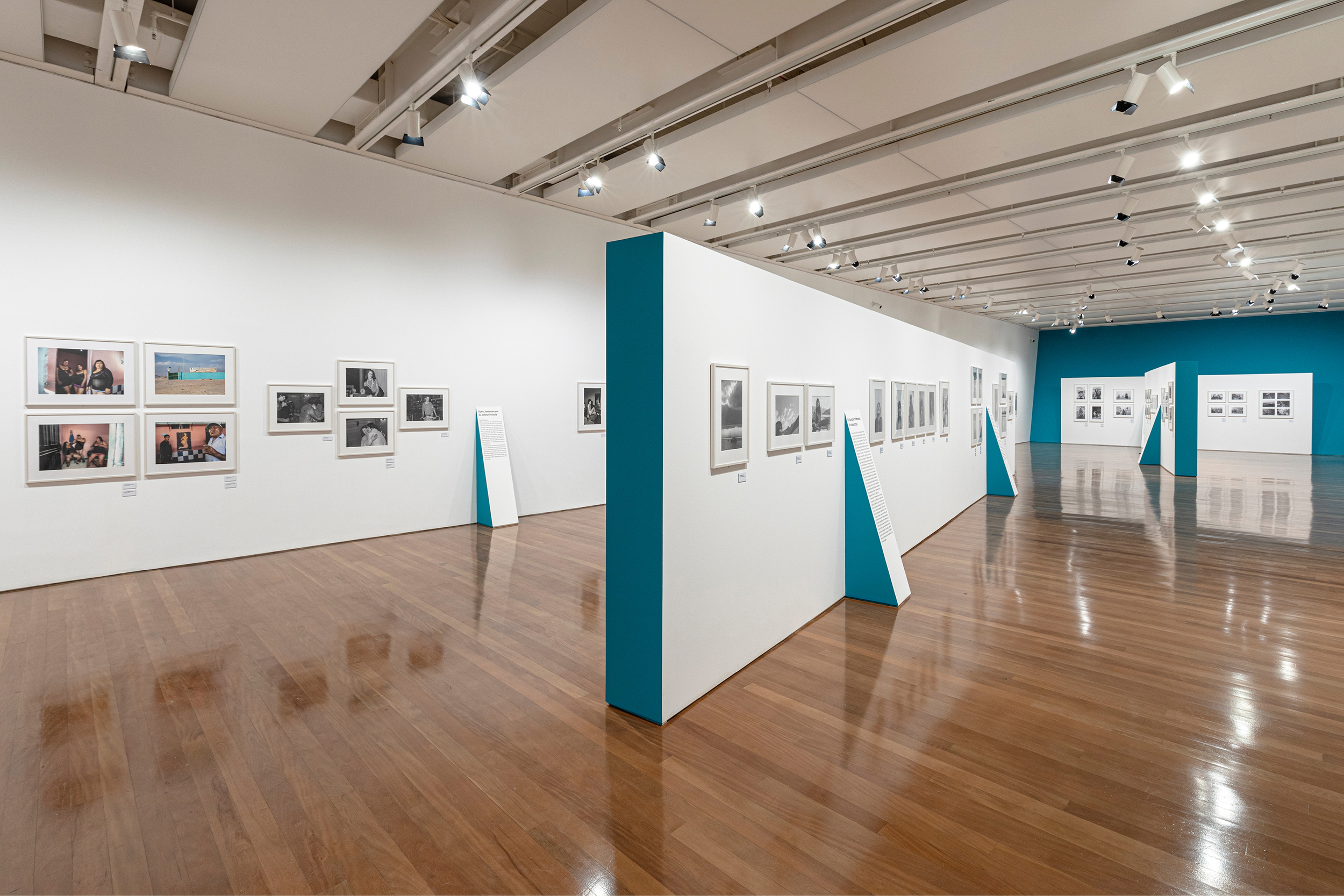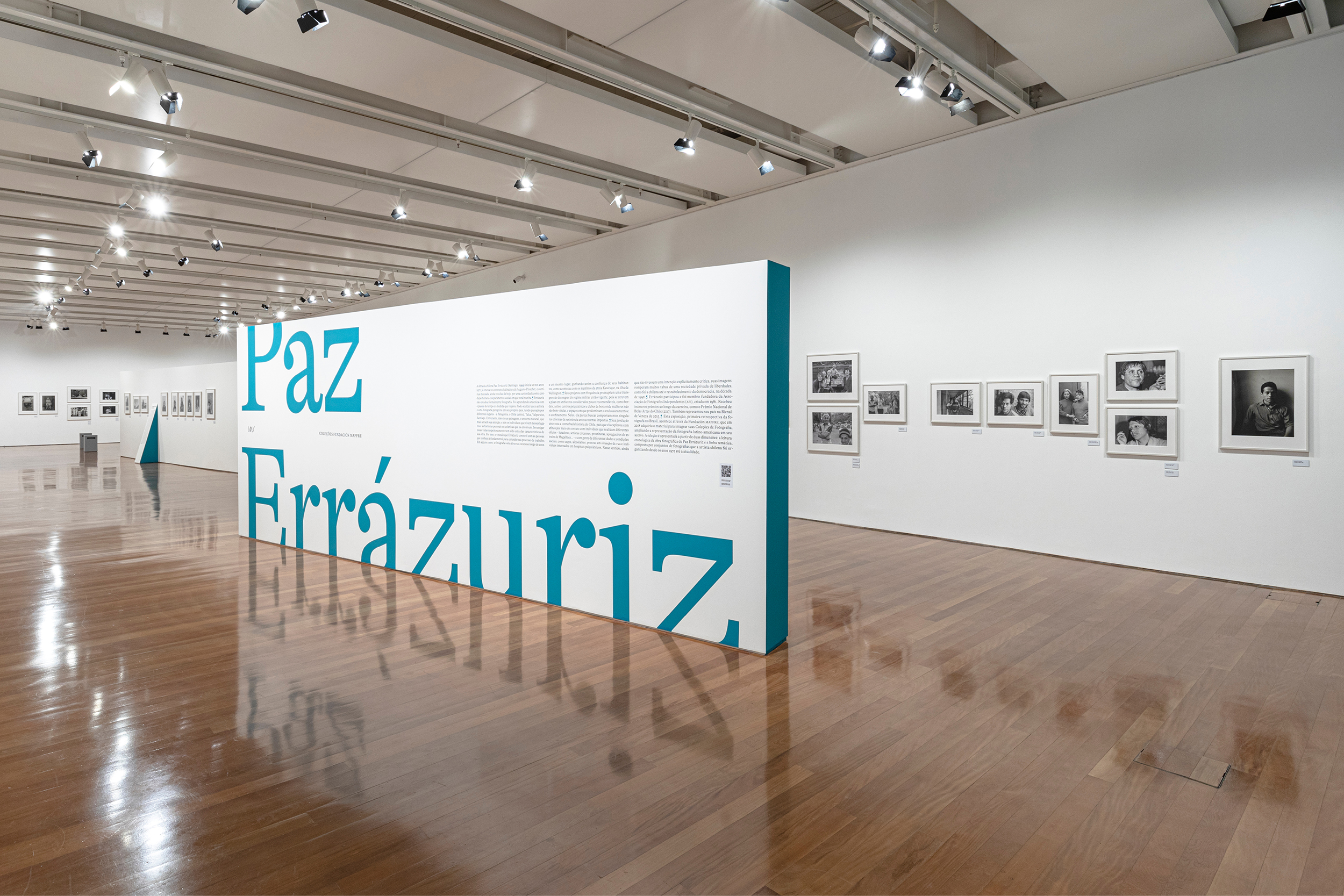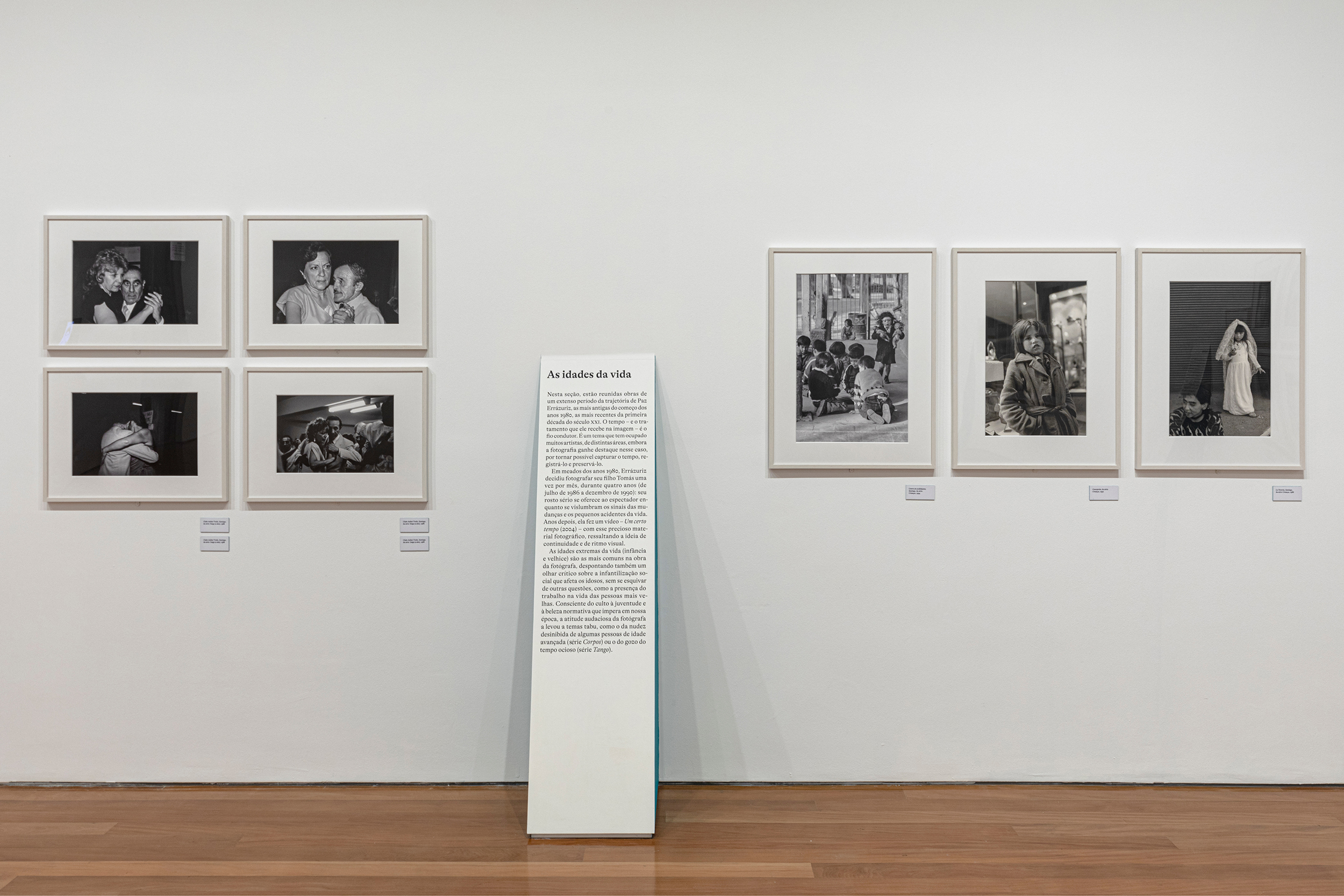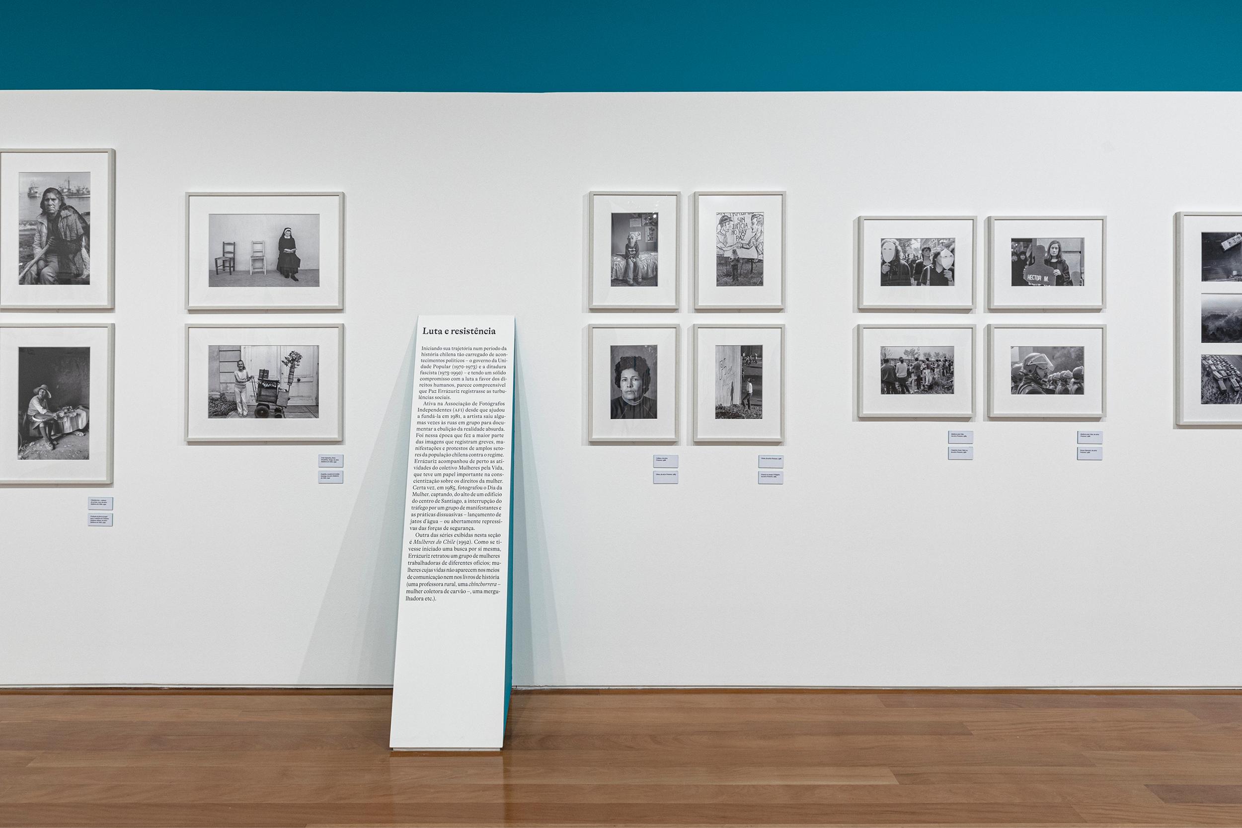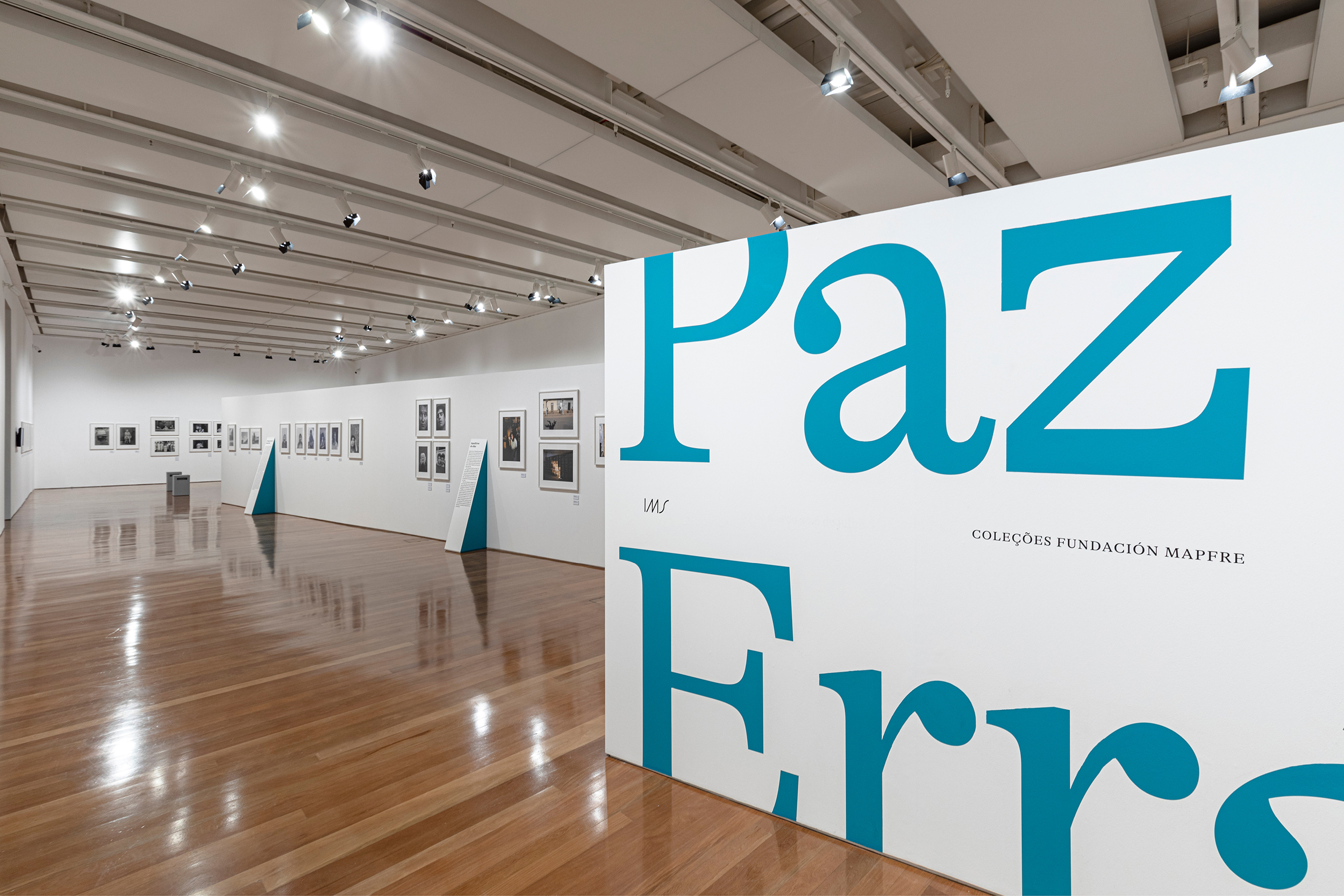The idea behind the exhibition and the communication design was to let the pictures free on the white walls and guide the visitors by the totems, with the green sides, that point out each series. All the exhibition text is on the totems too.