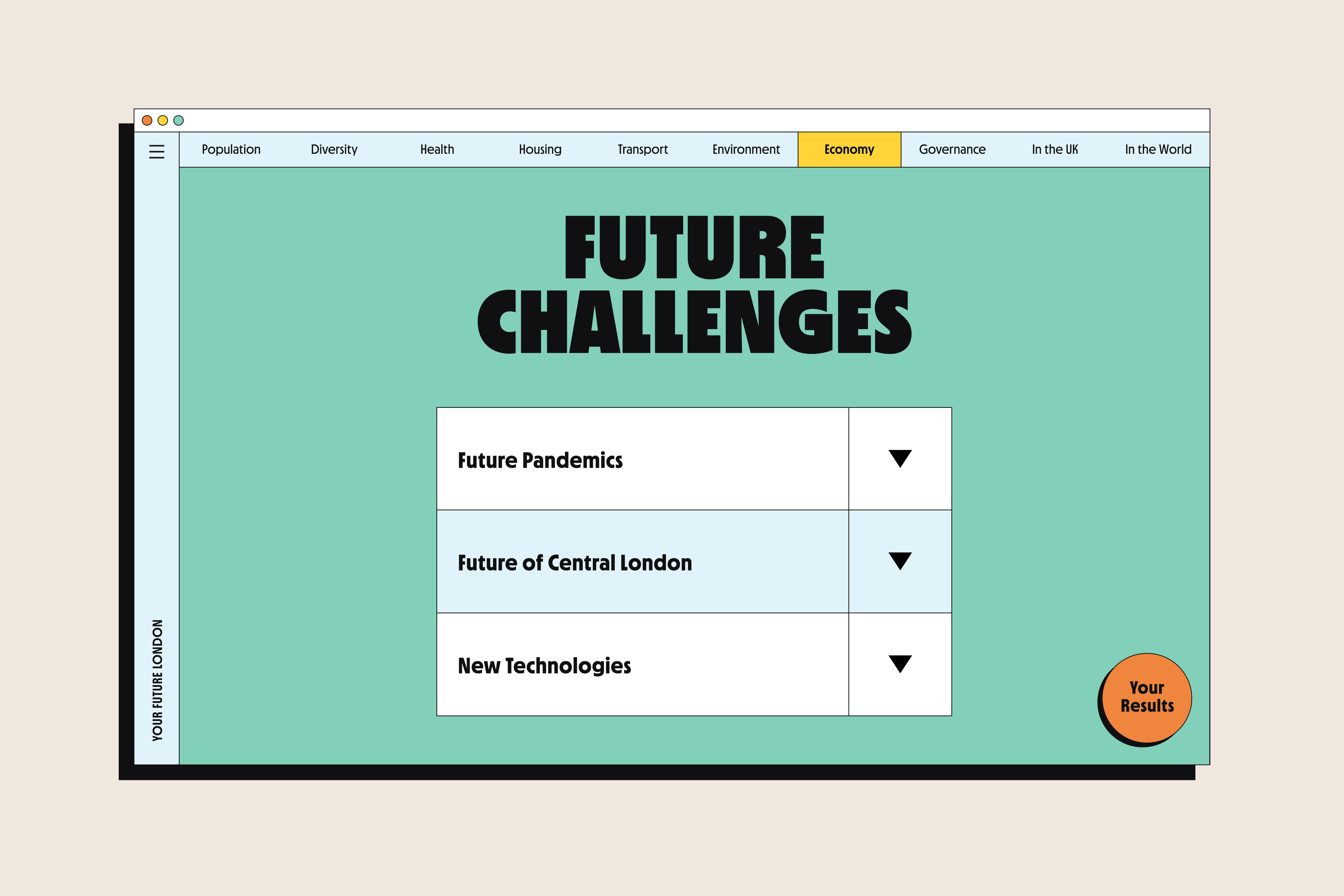 Your Future London is an online platform, created by the think tank Centre for London as part of the London Futures Review project. It invites Londoners to have their say in the direction London should take in the future.