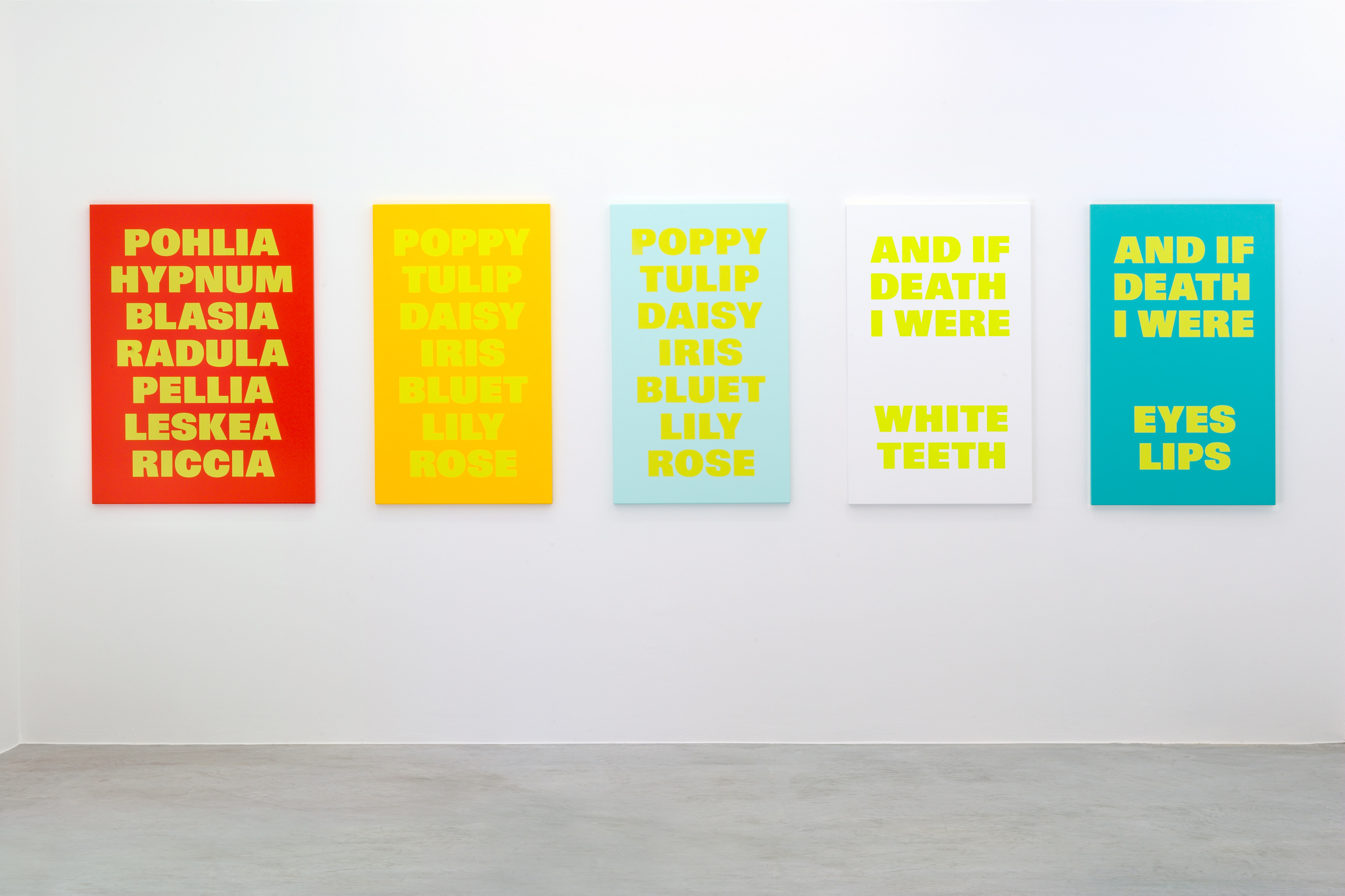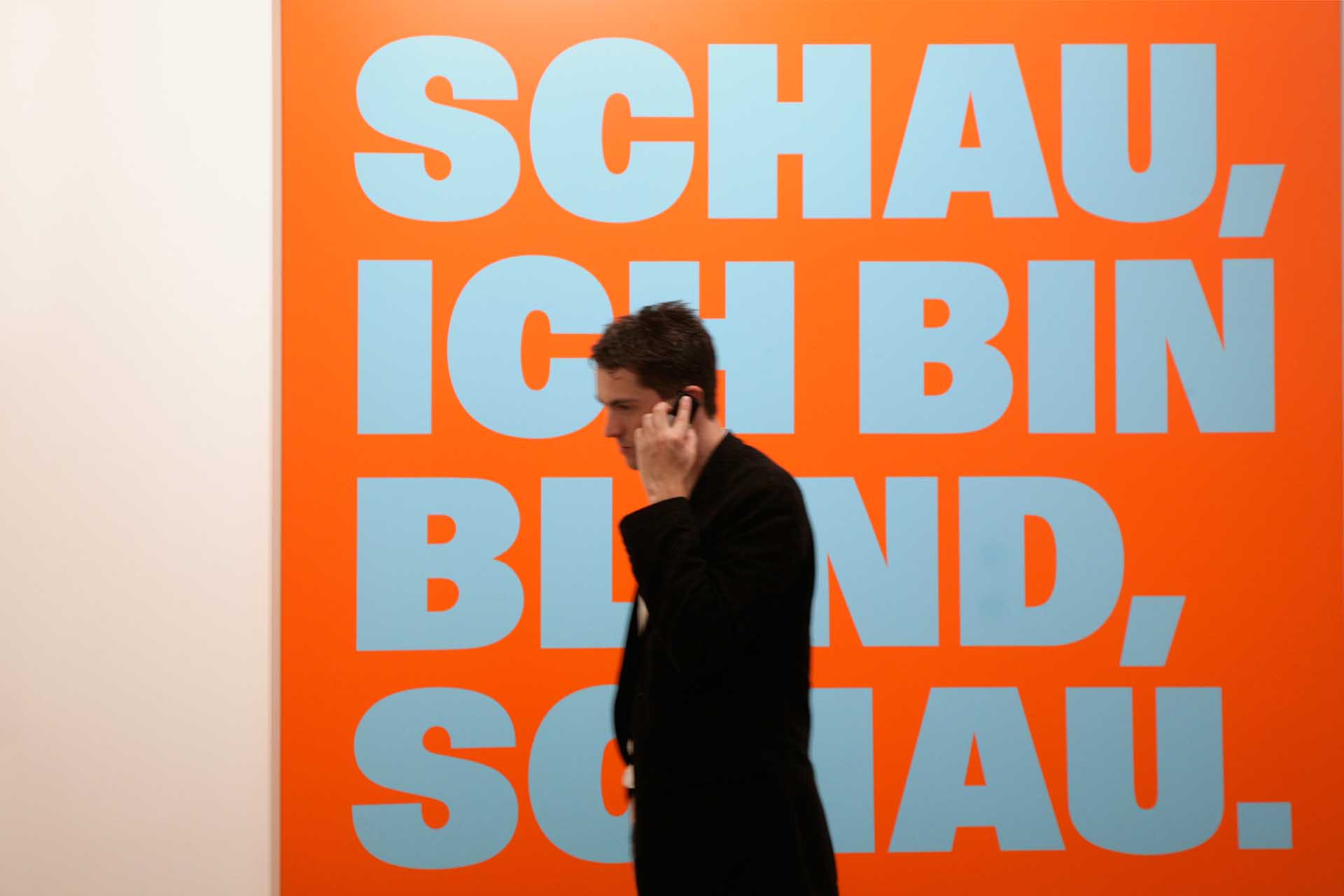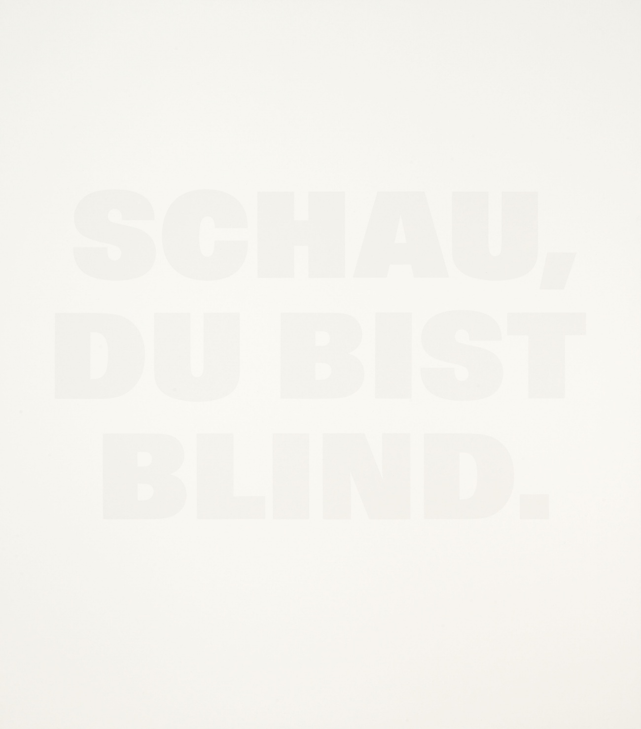 Swiss painter Rémy Zaugg (1943–2005) is well-known for the text images he made from the second half of the 1980s until his death, assisted by his wife, Michèle Zaugg-Röthlisberger. The screen-printed words or phrases are composed in Adrian Frutiger’s Univers 85.