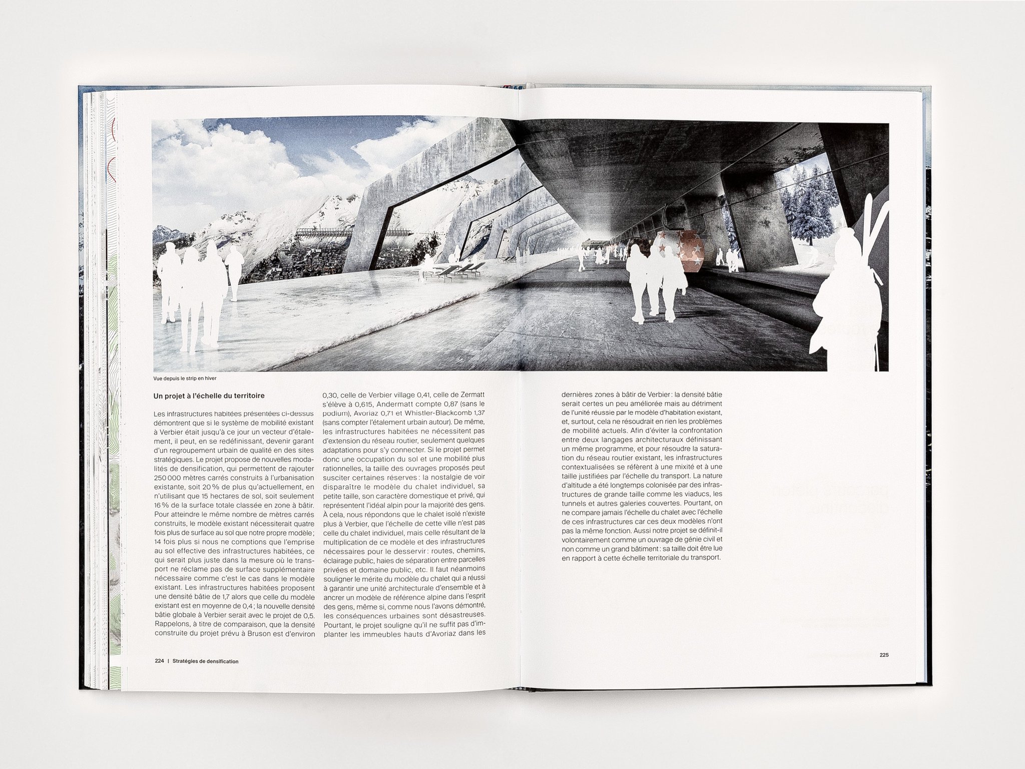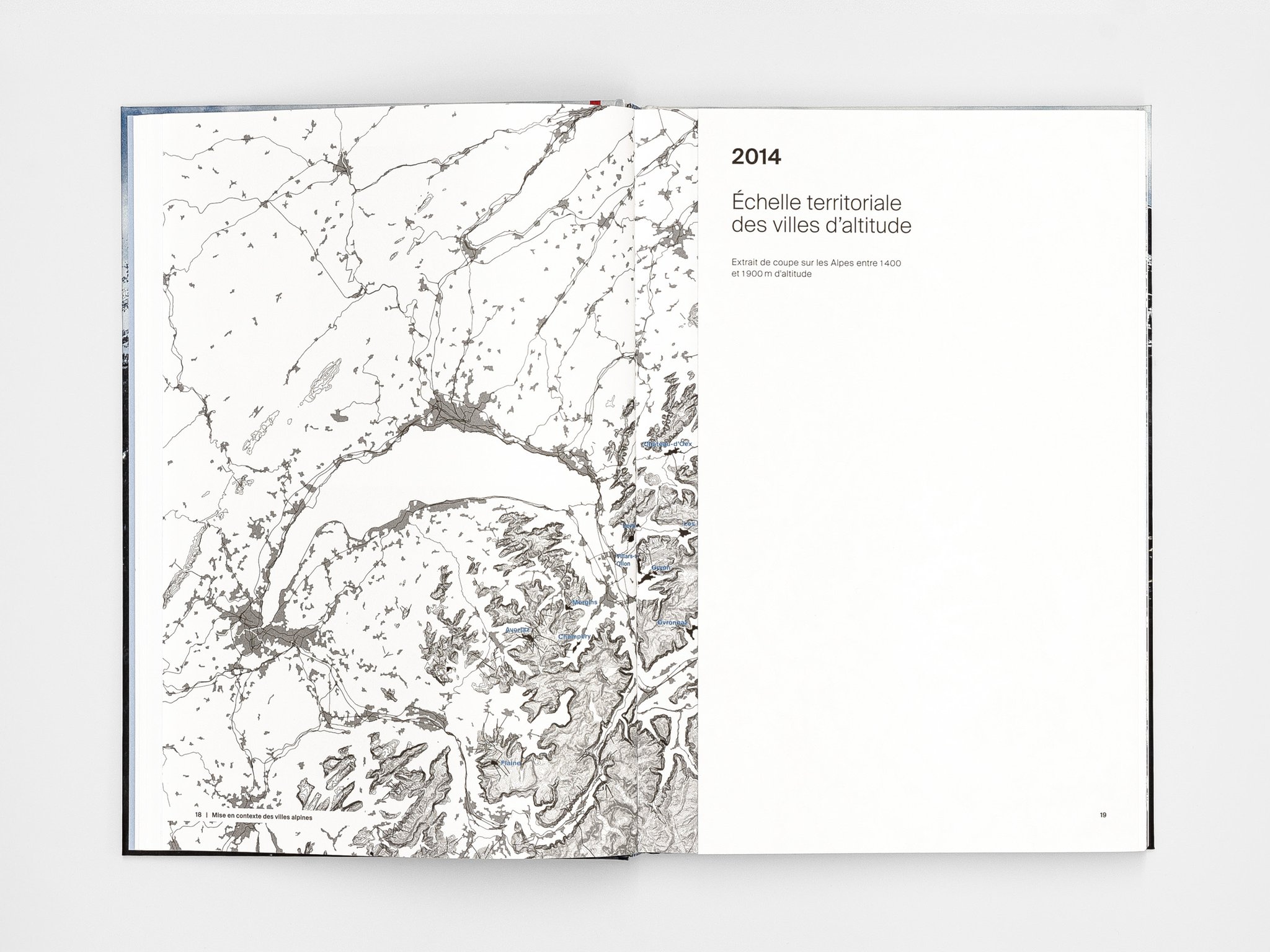 Published by Birkhäuser in 3 languages: French, English and German – this contribution shows the French-language edition, Urbaniser les Alpes. The book has been shortlisted at the Die Schönsten deutschen Bücher 2019 prize.