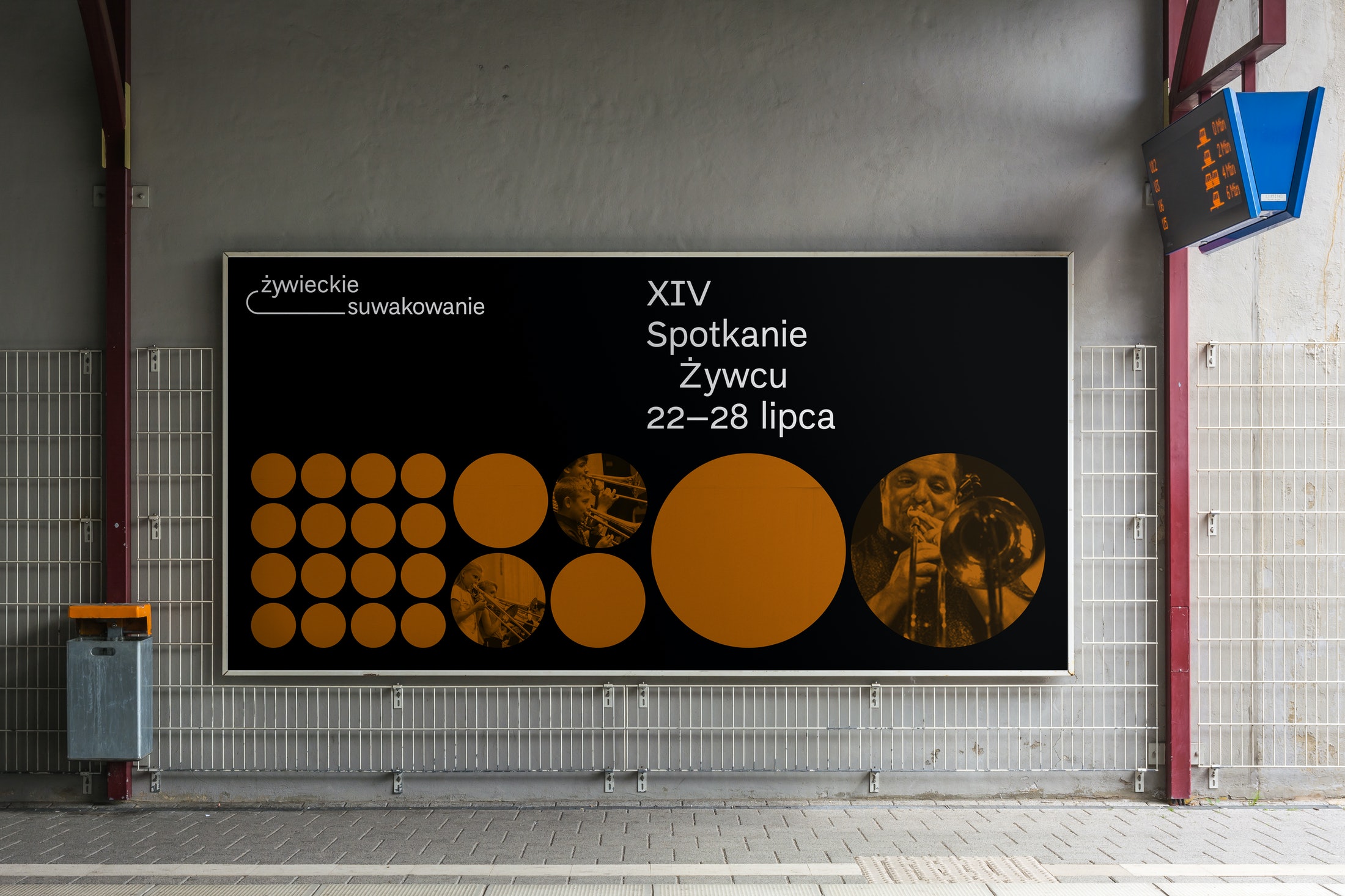 The type-based identity by Order draws from the movement, shape, and colours of the brass instruments, giving organisers a playful yet simple graphic palette to work with. The bell of a trombone was the starting point for the graphic system. Type is set in Di grotesk throughout.