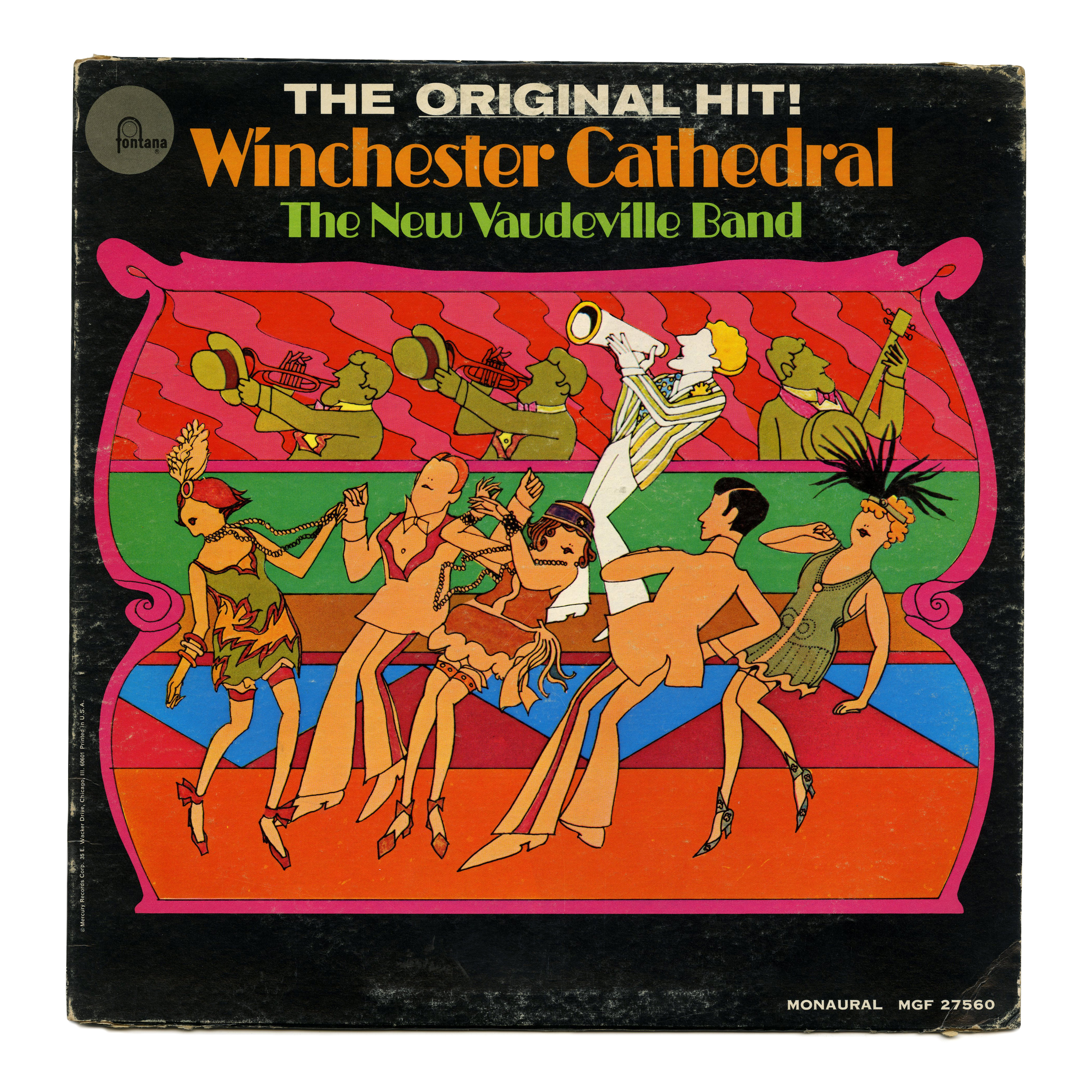 The New Vaudeville Band was a group created by songwriter Geoff Stephens [1934–2020] in 1966 to record his novelty composition “Winchester Cathedral”, a song inspired by the dance bands of the 1920s and a Rudy Vallee megaphone-style vocal. To his surprise, the song became a transatlantic hit that autumn, reaching the Top 10 in the United Kingdom and rising to #1 in the United States. Initially a studio group composed of session players, Stephens quickly assembled a permanent group to continue recording and to play live shows. The New Vaudeville Band placed several singles in the US and UK top 40 through 1967 before dissolving.