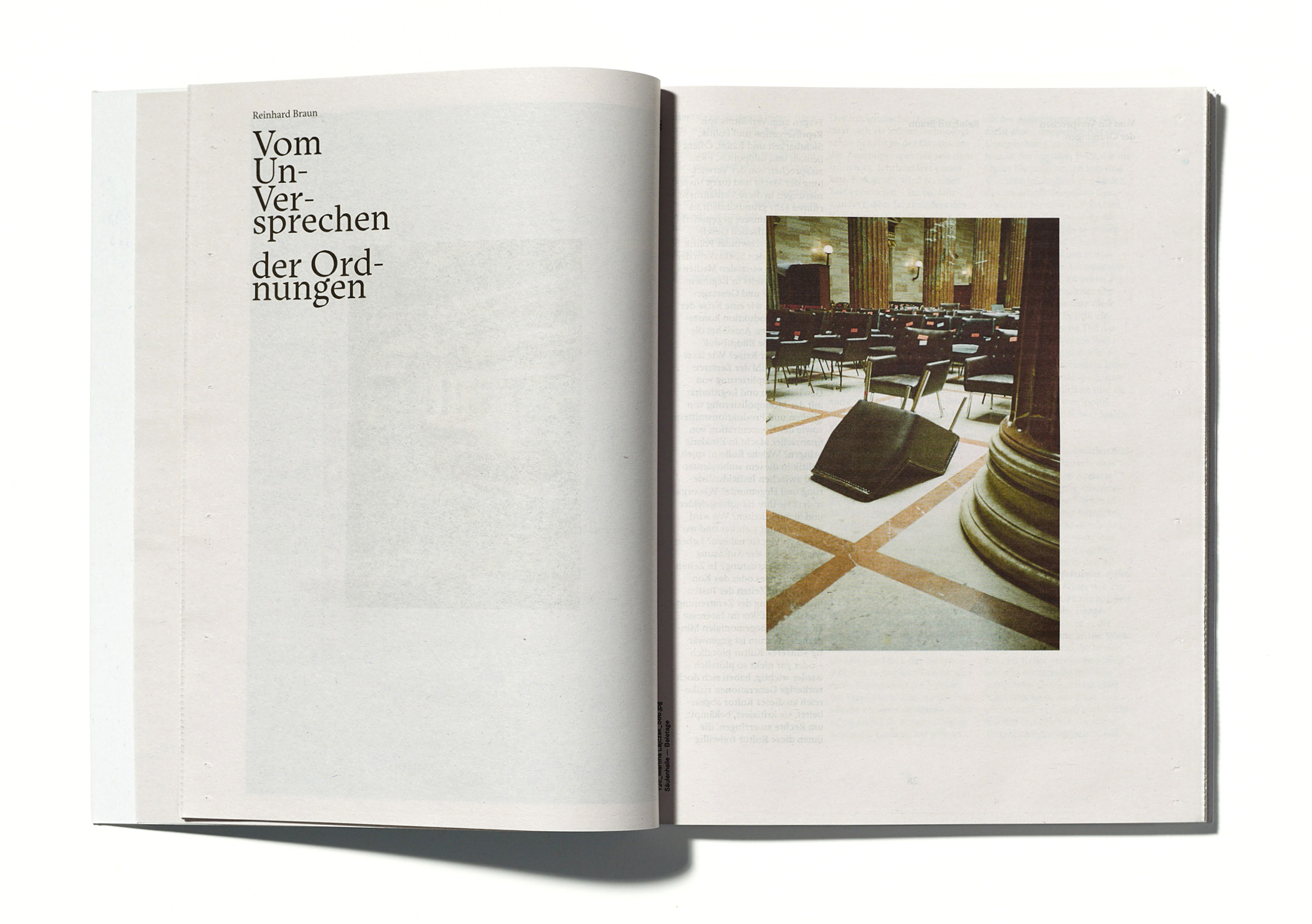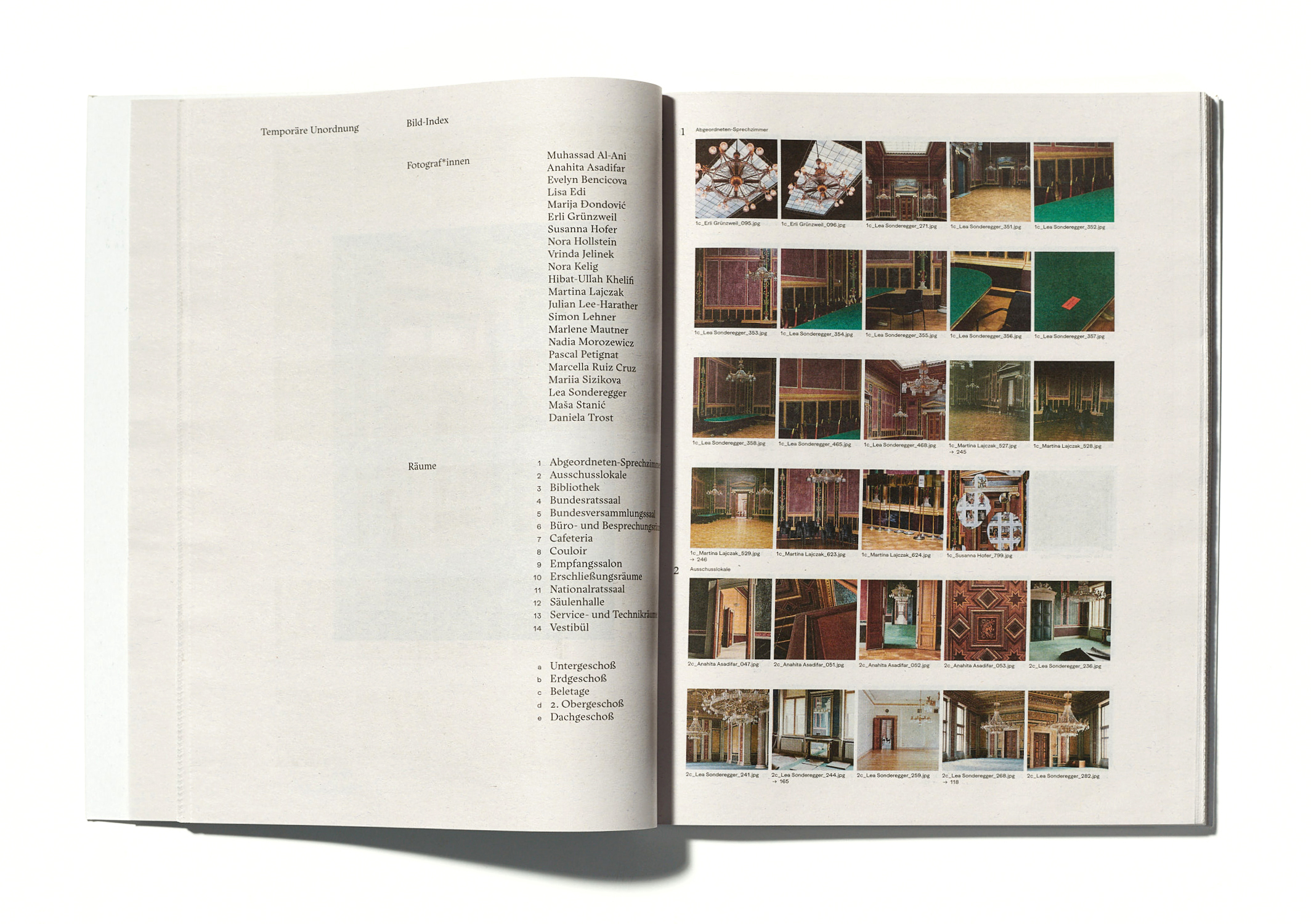 The result is a photographic investigation about interaction of architecture, art and politics. 782 images from the Austrian parliament building in vacancy, printed in web-fed offset on newsprint.