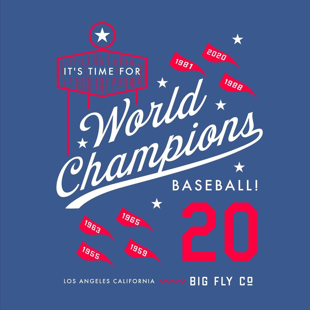 Bordonaro Script in use for a T-shirt celebrating the Los Angeles Dodgers and their victory in the 2020 World Series. Bryce Reyes’s design was inspired by Vin Scully and and honors all of the franchise’s championship banners. The shirt was made available from Big Fly Gear in October 2020. Bordonaro Script is paired with Futura and two unidentified “collegiate” fonts.