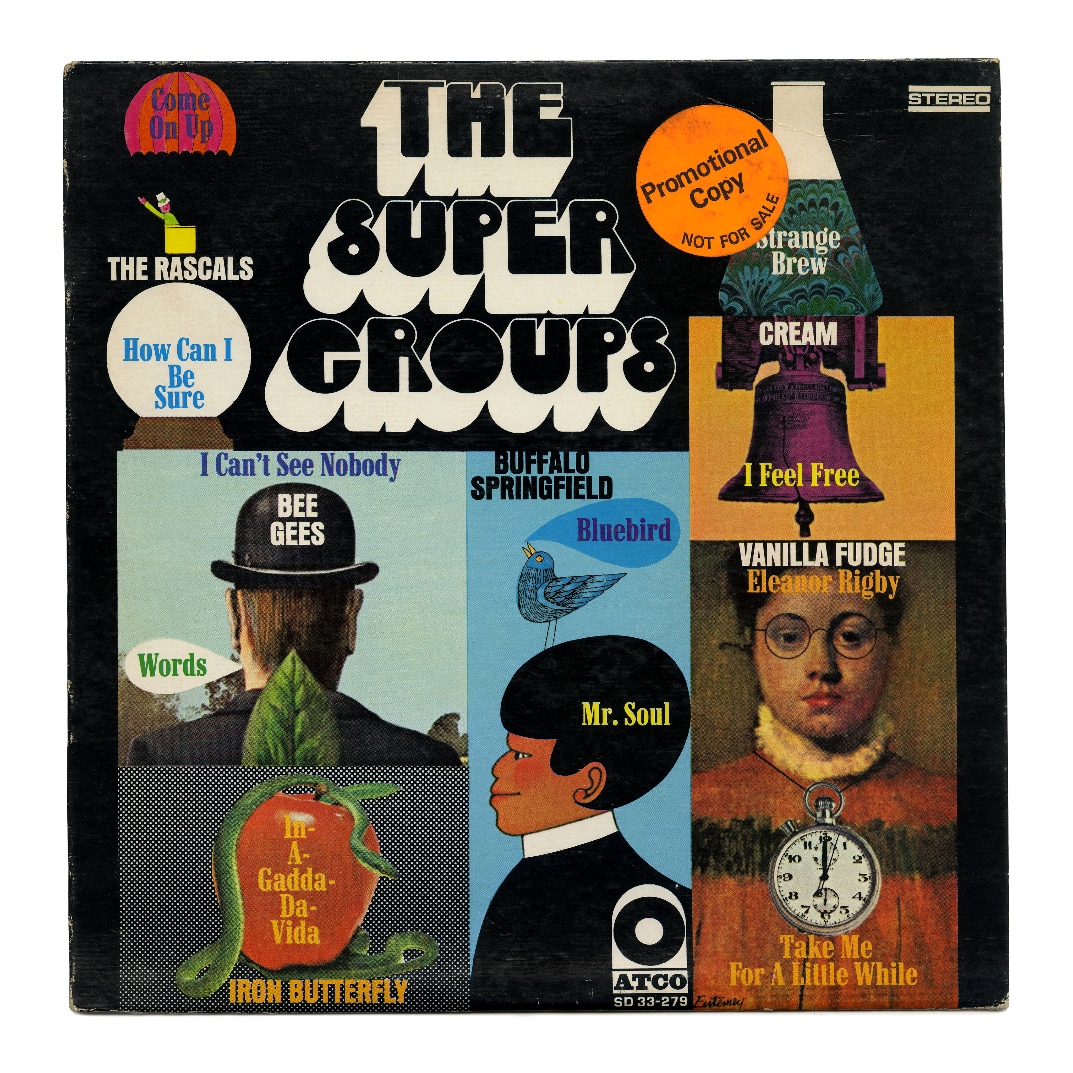 Mierop Ginger Snap C (Photo-Lettering, 1969) in early use for the cover of a sampler of rock music by ATCO Records, featuring songs by the (no longer Young) Rascals, Bee Gees, Cream, Buffalo Springfield, Vanilla Fudge, and Iron Butterfly.